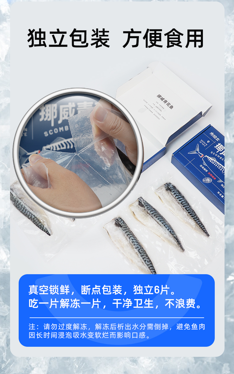 市舶士 挪威进口北极物产青花鱼 冷冻海鲜水产鲭鱼纯净深海900g/盒