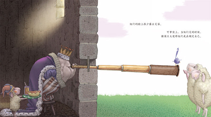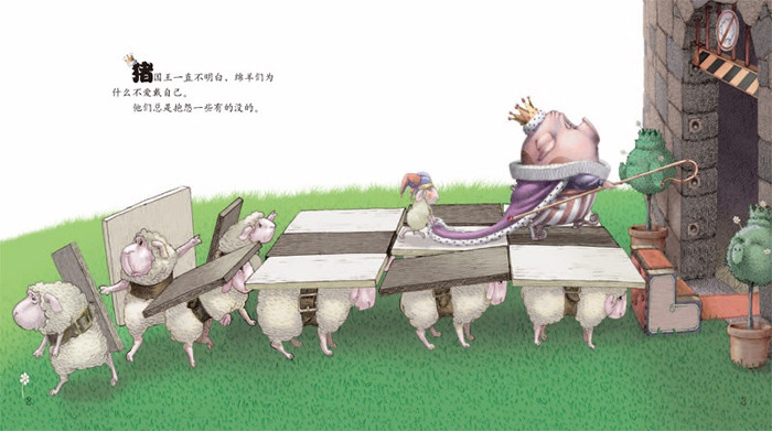 《猪国王的新装》:猪国王一直想不明白,为什么他的绵羊们总是在抱怨。不论他怎样大声喊叫,绵羊们也从不认真听。他想尽办法吸引大家的注意,但所有人都无动于衷。国王虽然拥有至高无上的权力,能命令所有人在任何时间做任何事,但就是无法让大家喜爱他。“怎样才能让绵羊们喜爱我呢?”猪国王突然想出了一个主意……