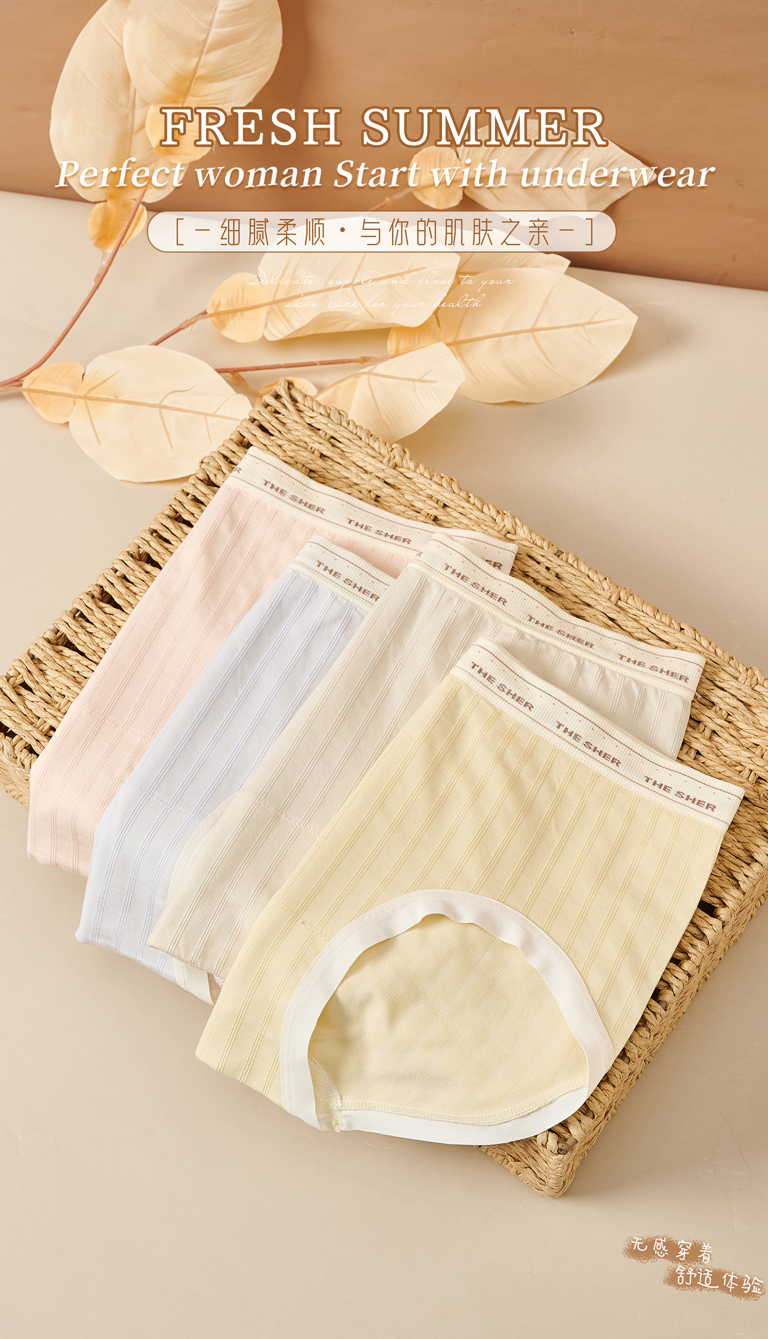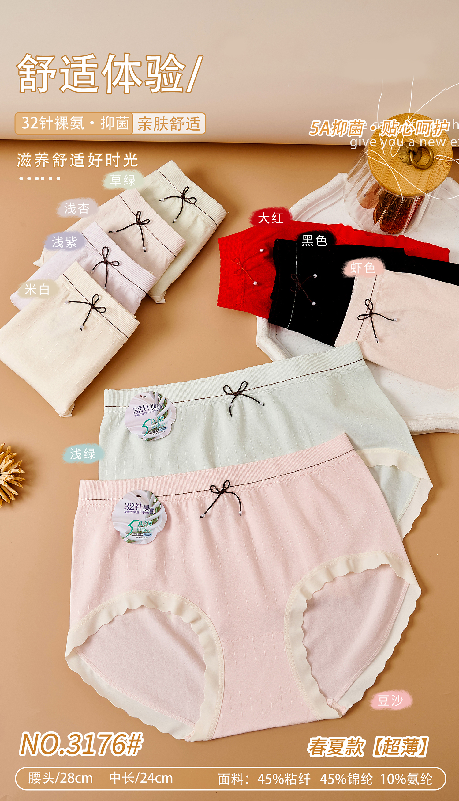 女士彩纱撞色竖纹提花无缝裸氨超薄内裤3264/3263/6302/3176