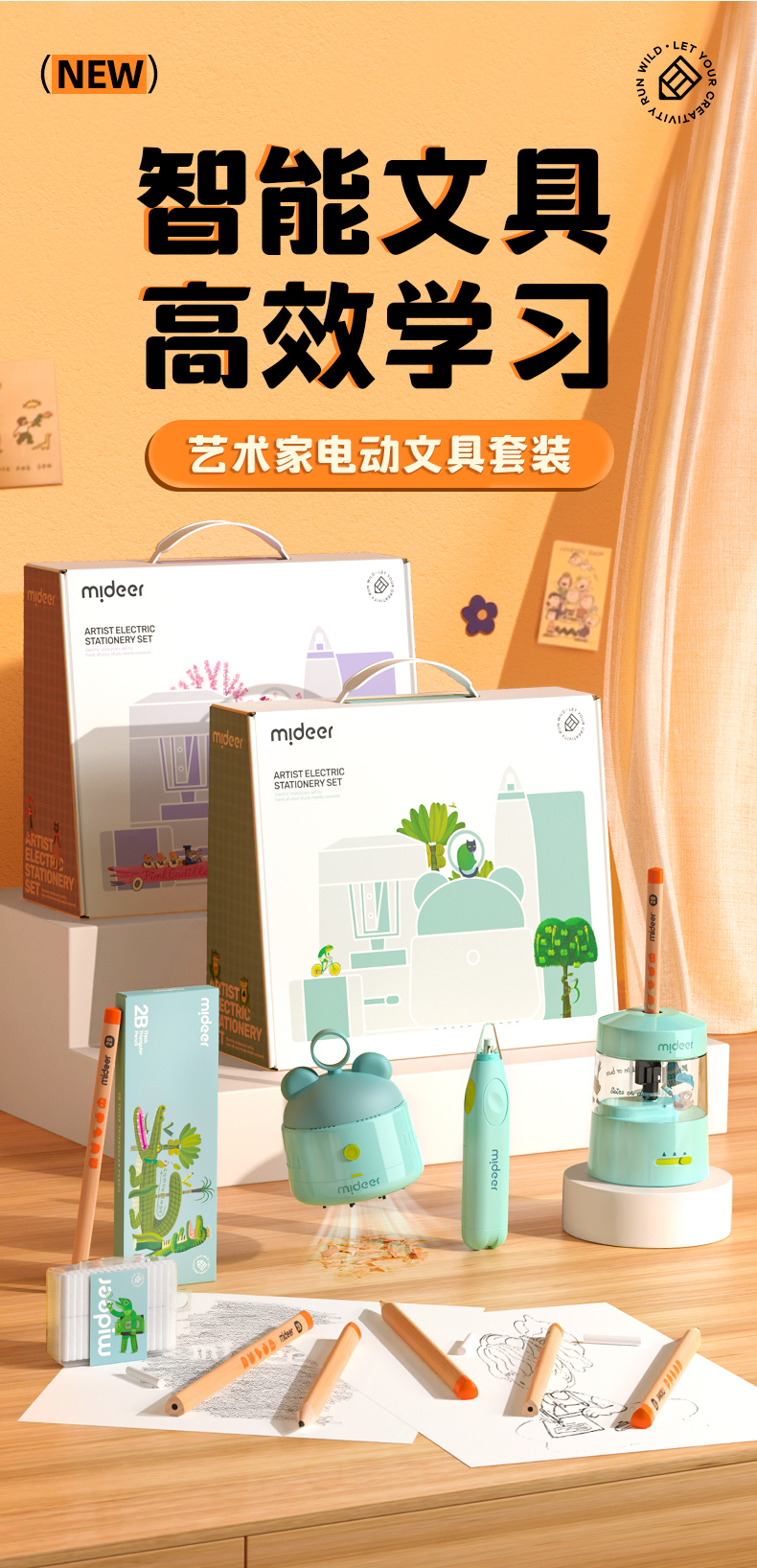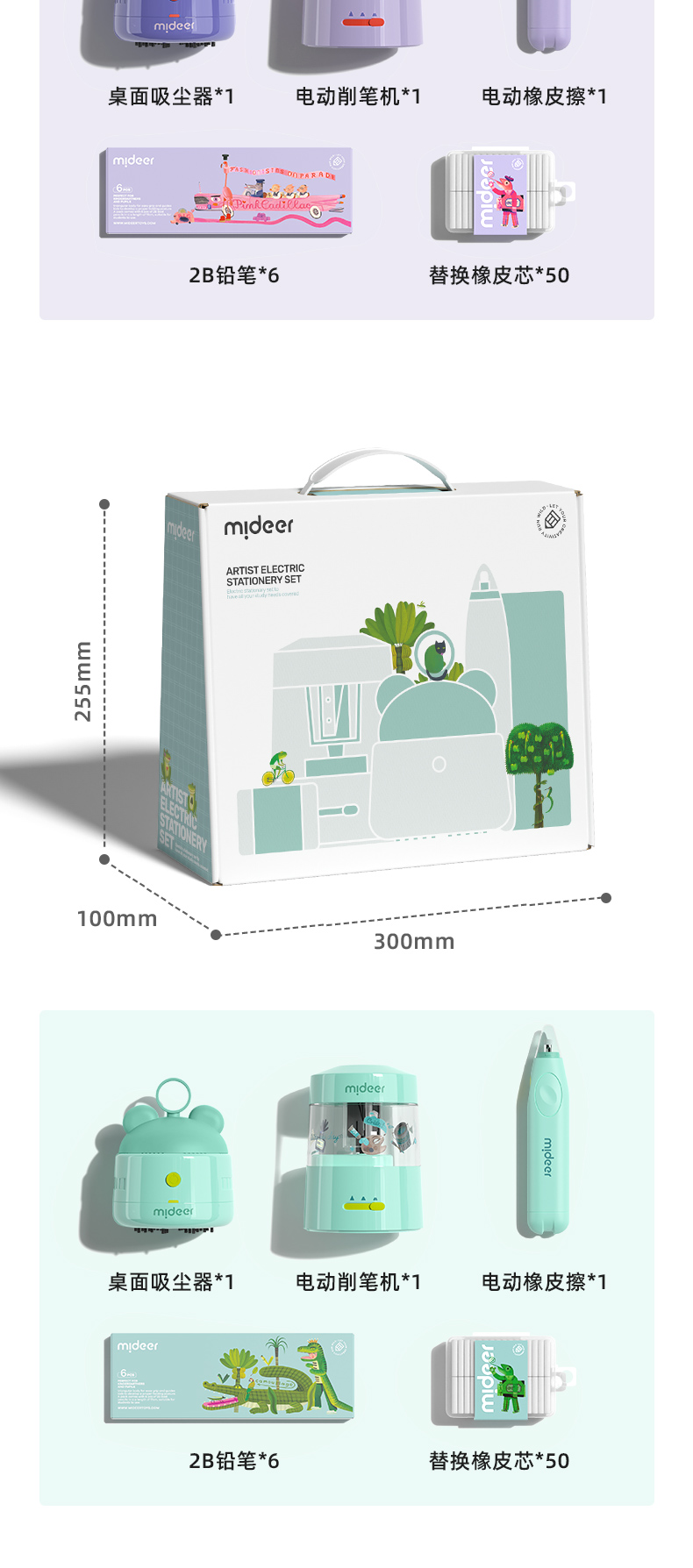 mideer弥鹿电动文具套装六一61礼物自动削笔器礼盒卷笔刀小学生削笔刀一年级男孩女孩儿童节学习用品大礼包