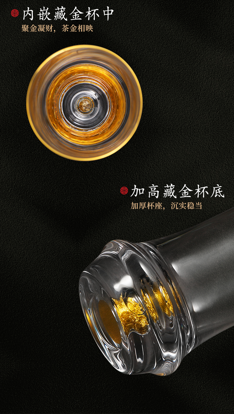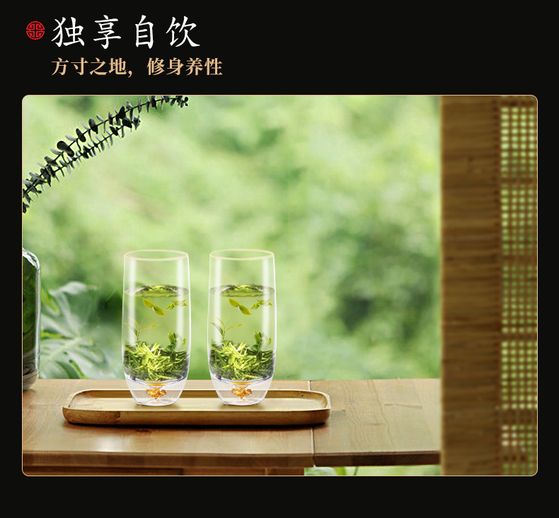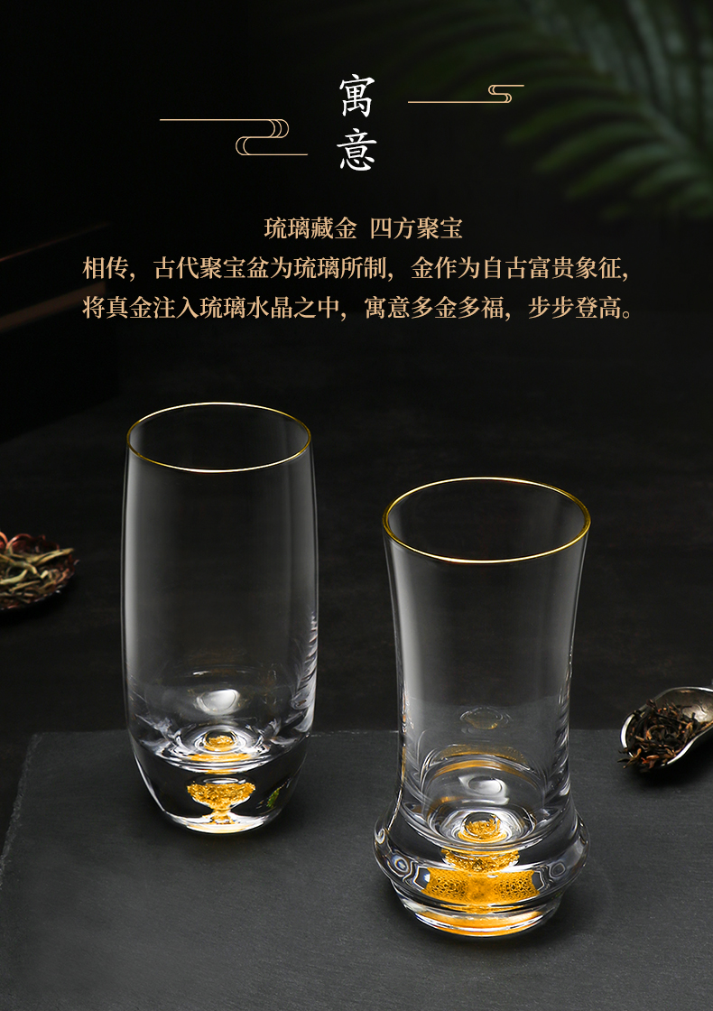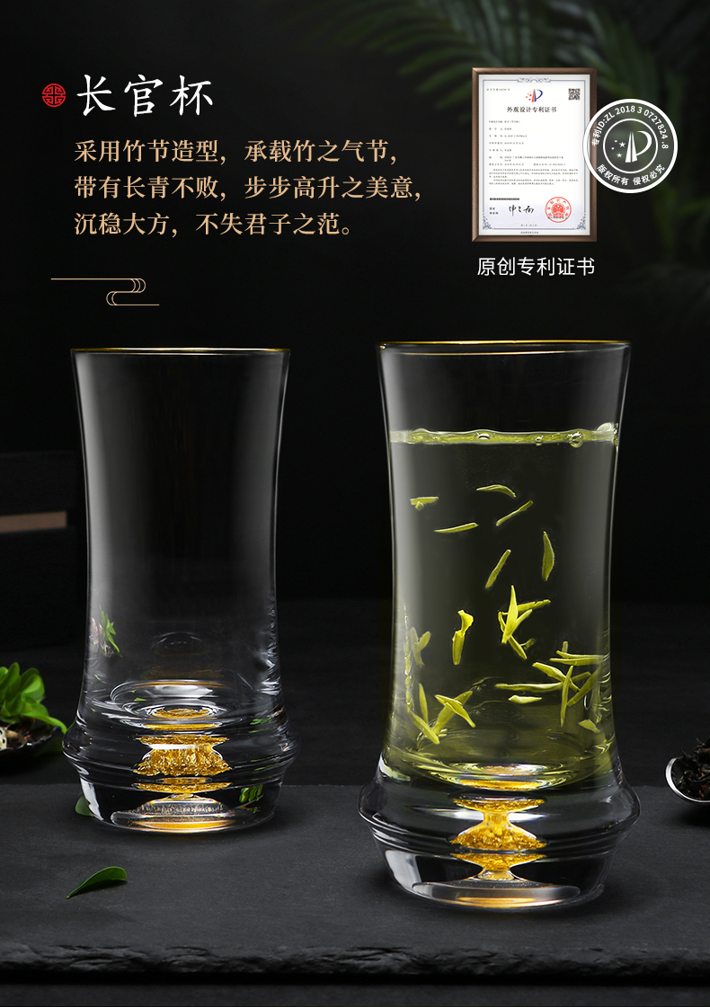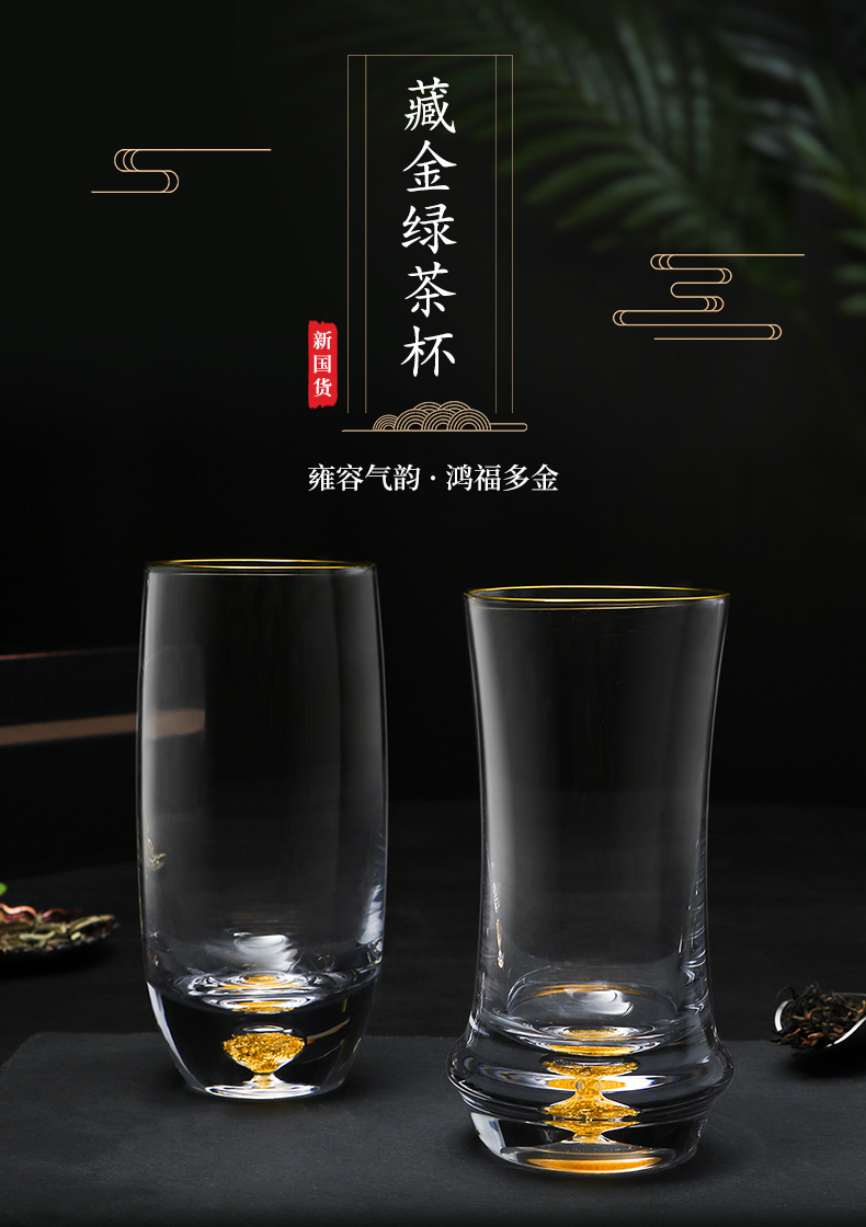 凯洛诗CALOPS金箔绿茶杯水晶玻璃耐热藏金泡茶杯家用套装礼盒水杯