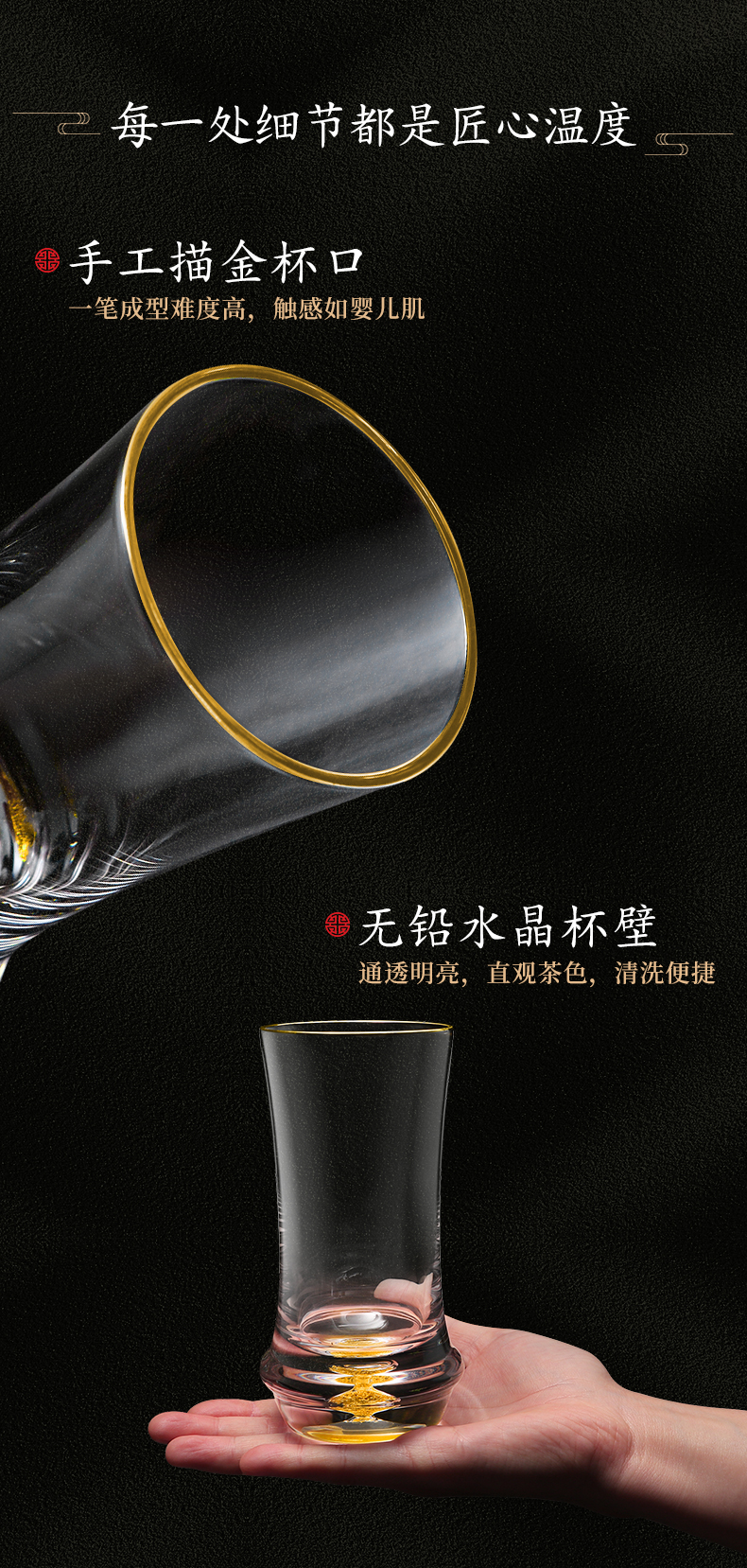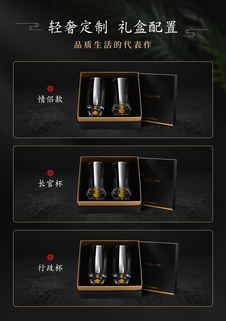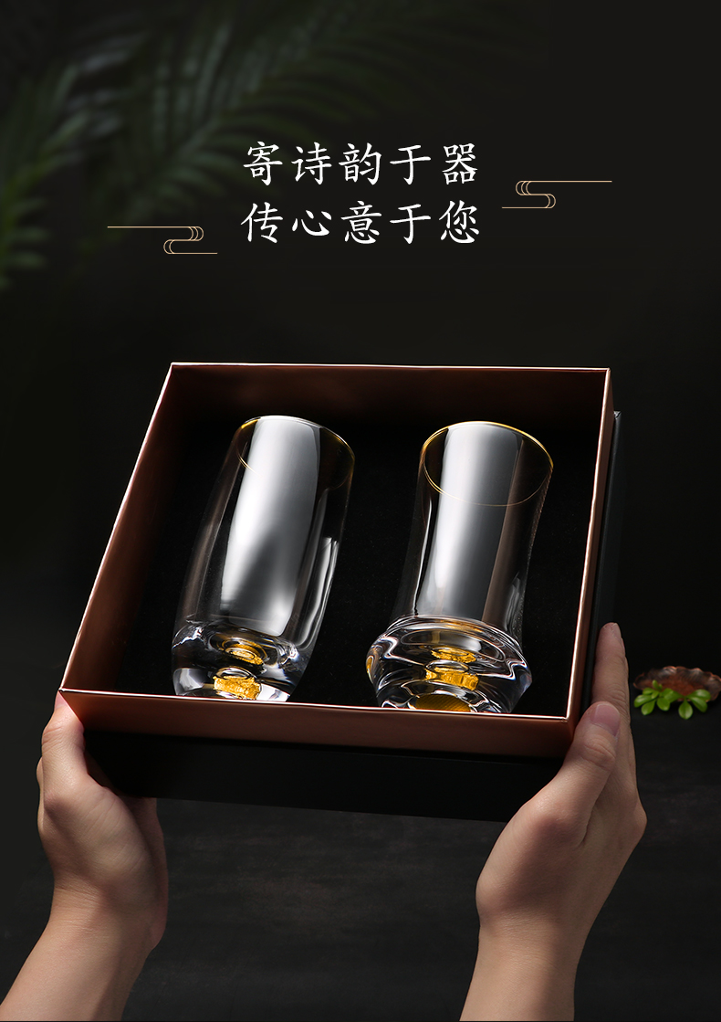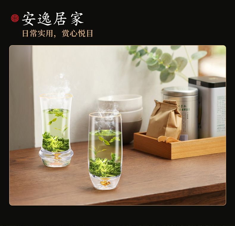 凯洛诗CALOPS金箔绿茶杯水晶玻璃耐热藏金泡茶杯家用套装礼盒水杯