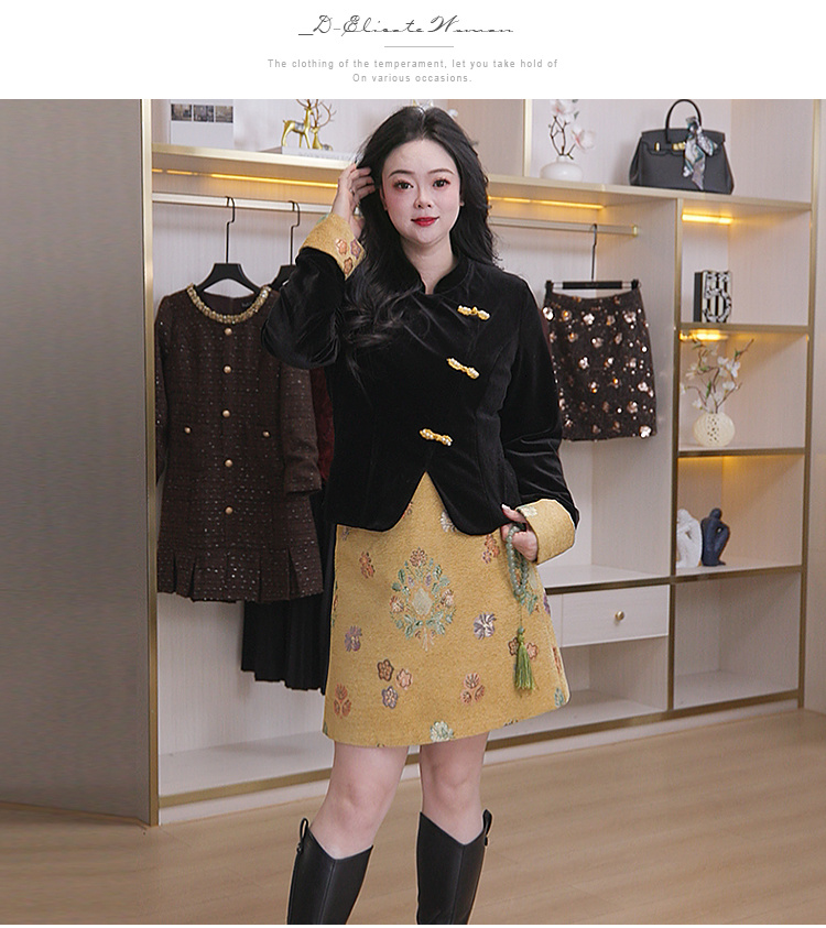 奢姿大码女装2025冬季胖妹妹时尚黄花套装气质复古显瘦休闲穿搭9954970766