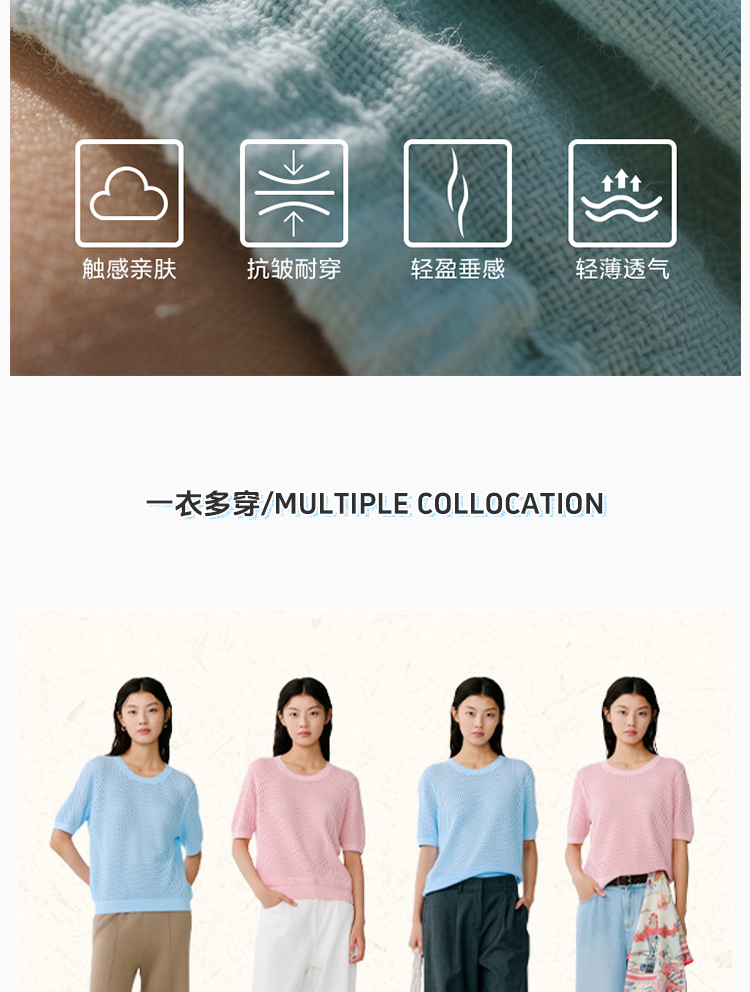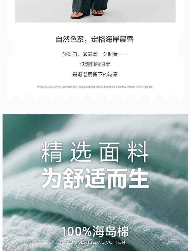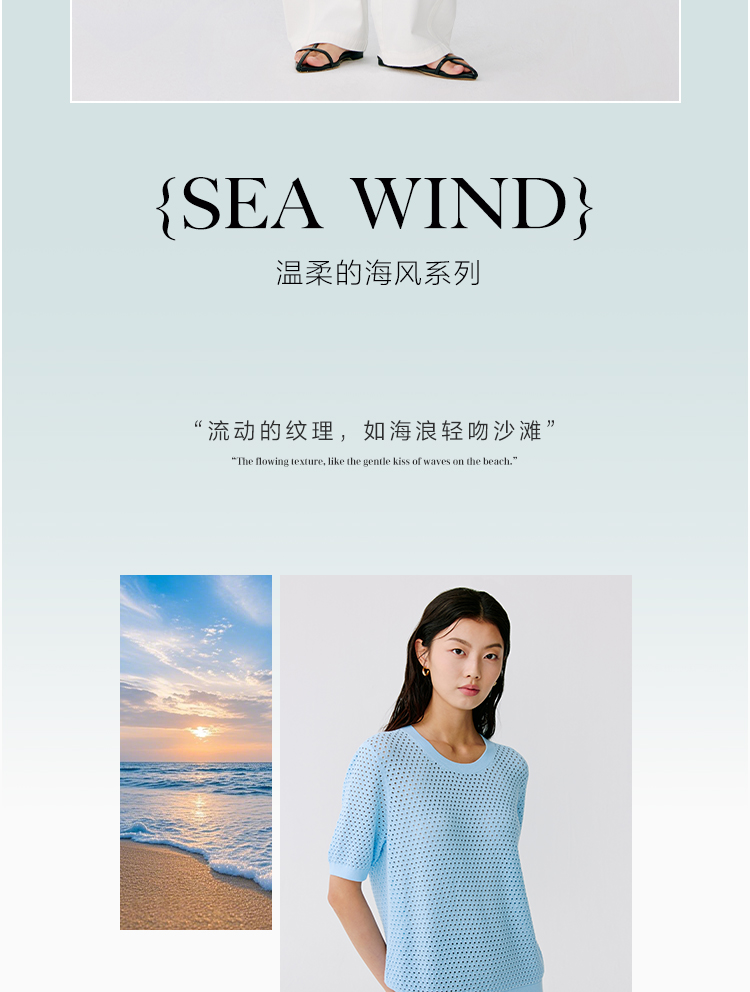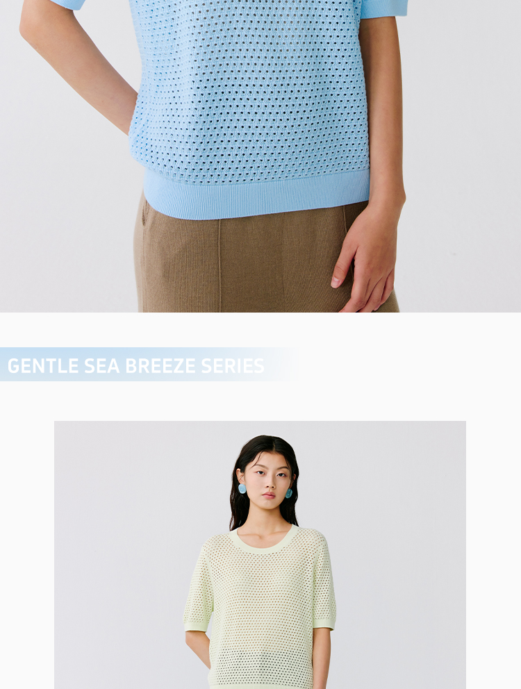 东黎 • 温柔的海风 珊瑚岛 海岛棉女士U领短袖 5190