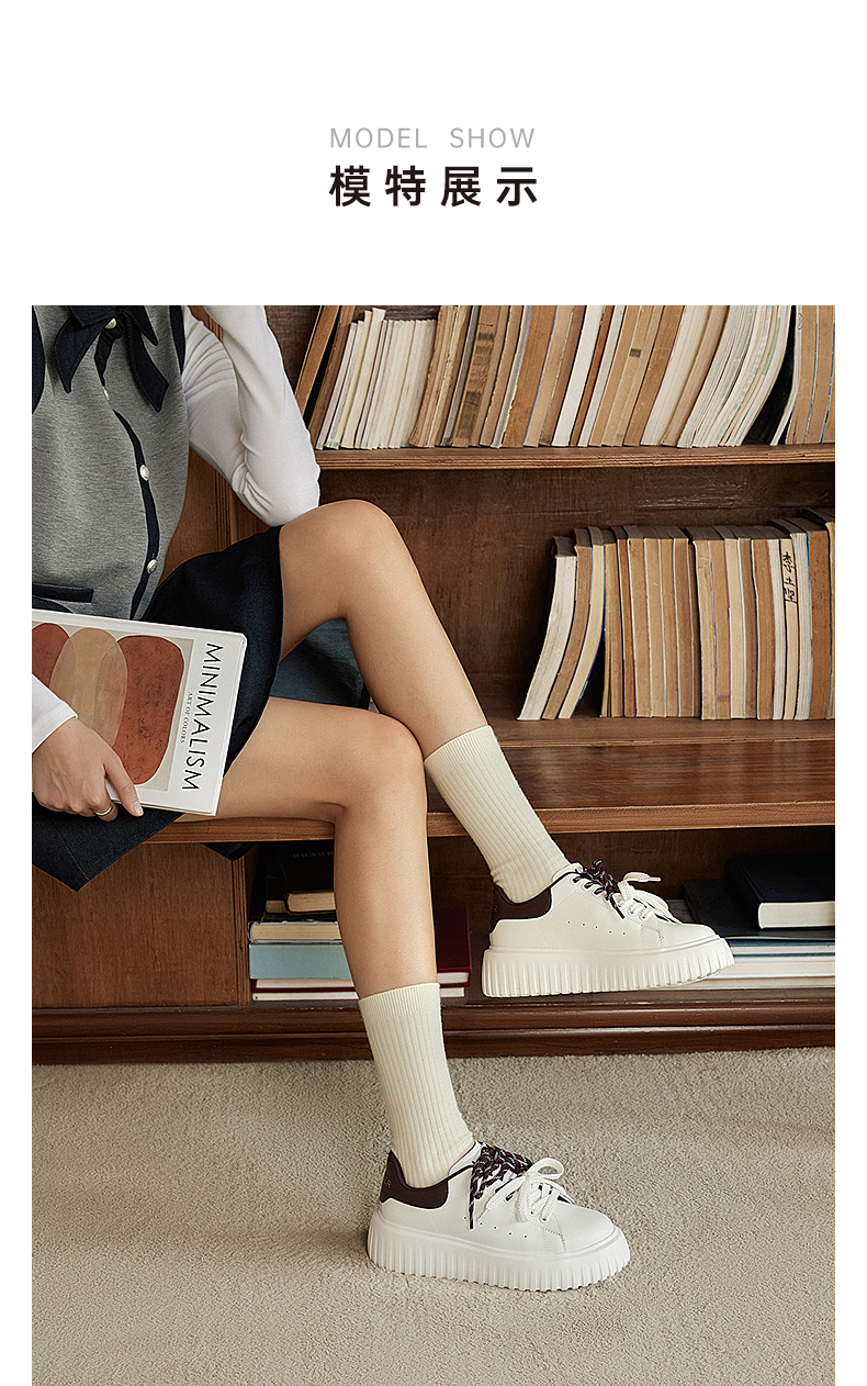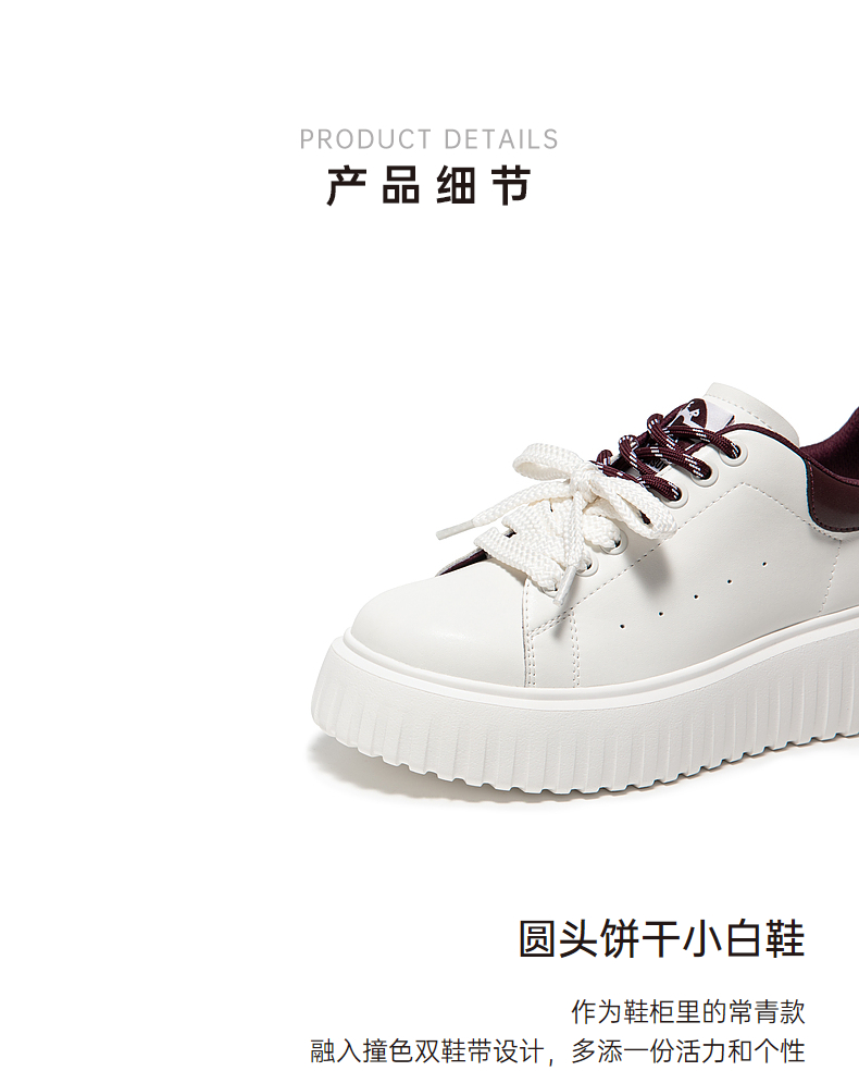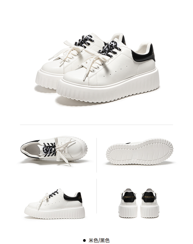 千百度厚底休闲板鞋女2026春季新款增高小白鞋时尚透气运动休闲鞋A26156171