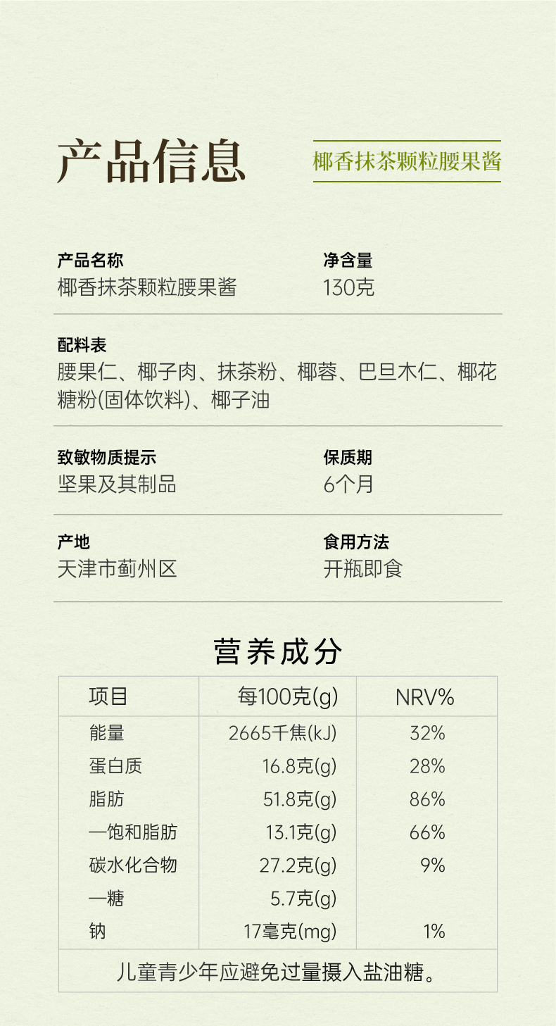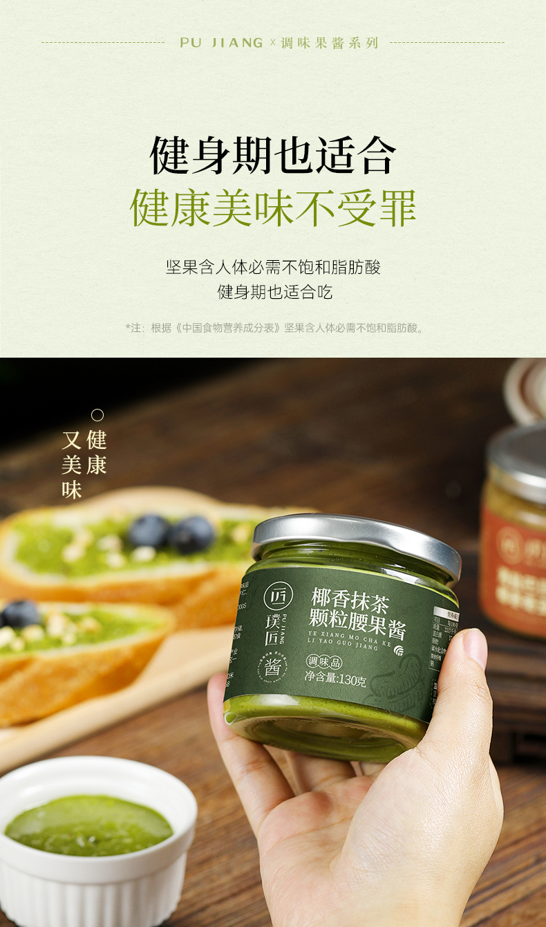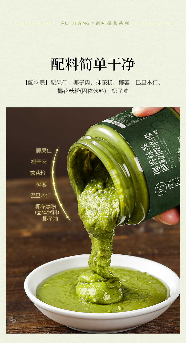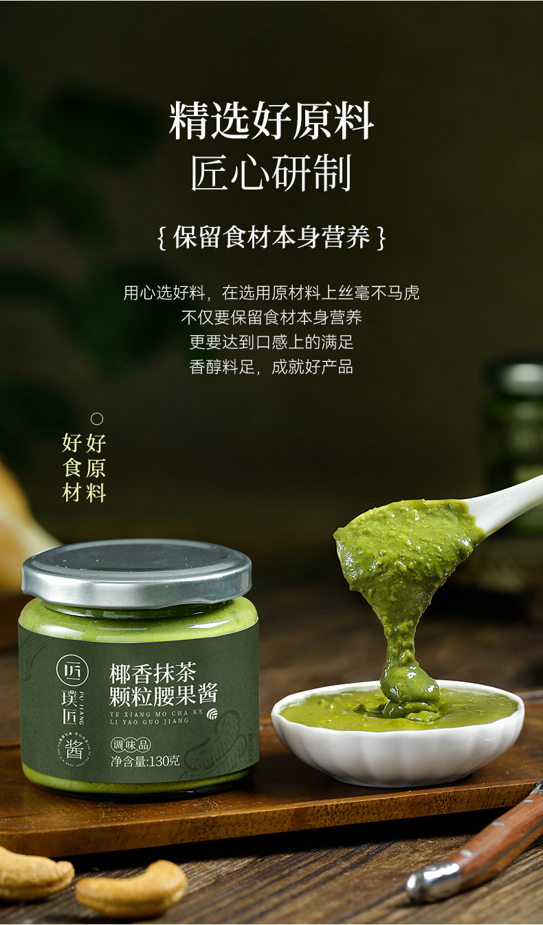 璞匠椰香抹茶颗粒腰果酱拌面配面包酱早餐酱沙拉颗粒感即食