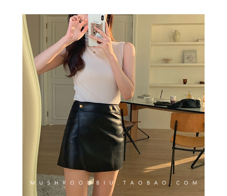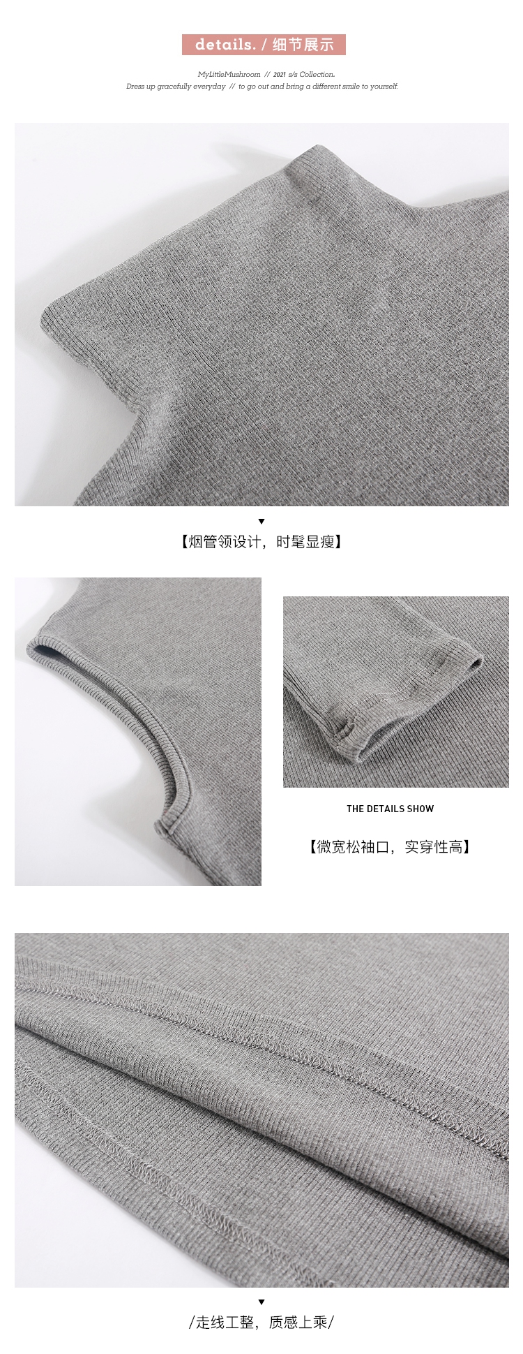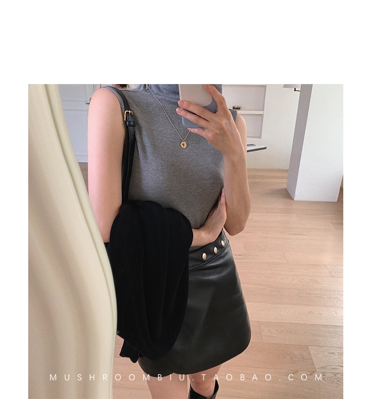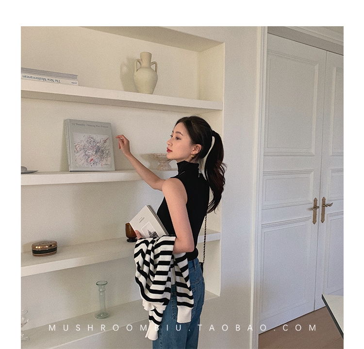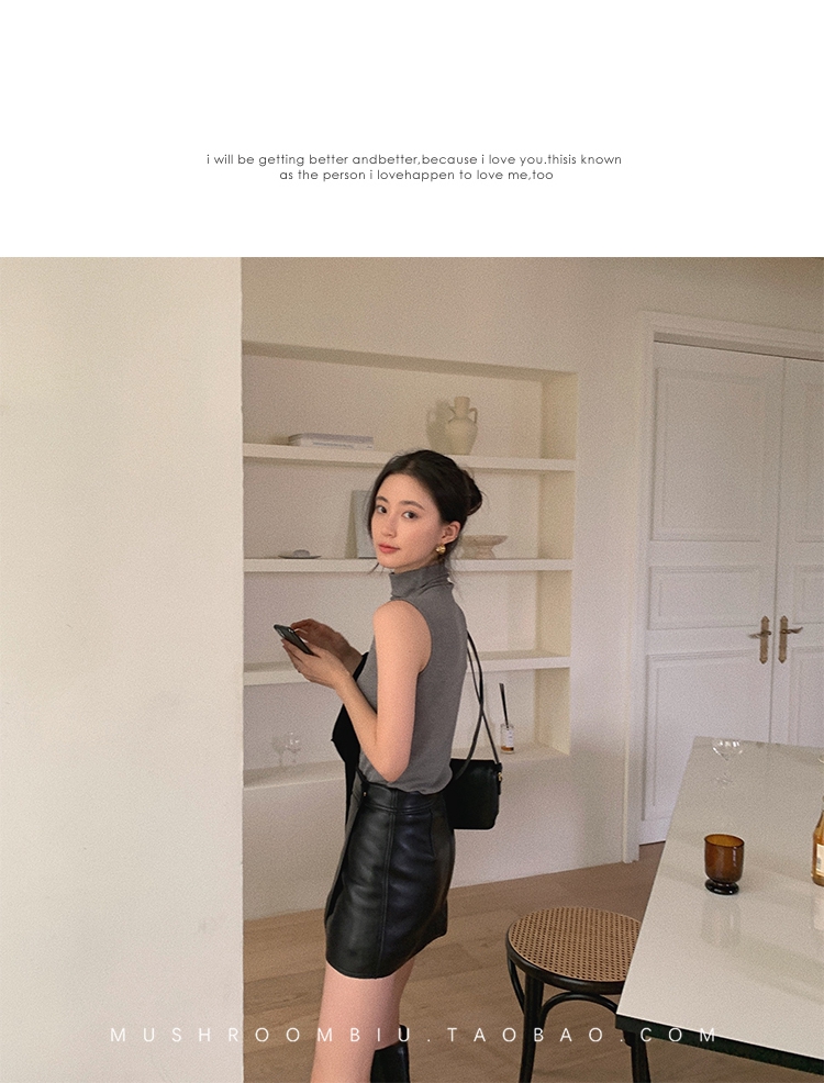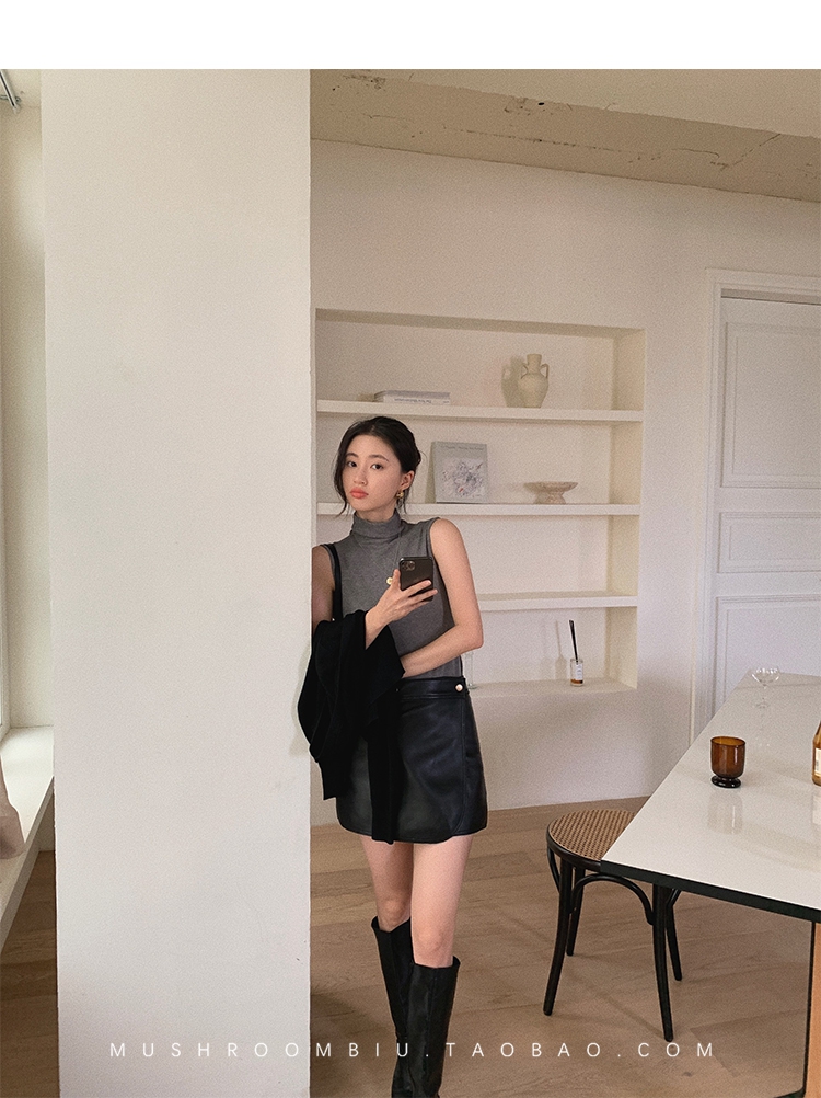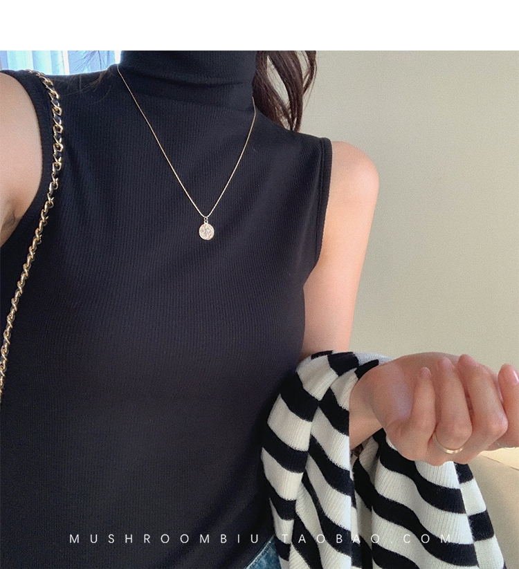 金蘑菇菇【 无袖 XS码 】高领薄款女百搭修身打底无袖t恤