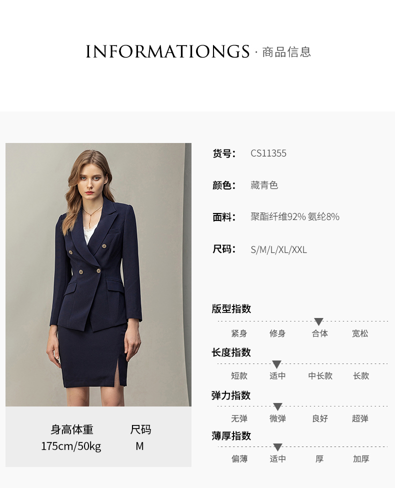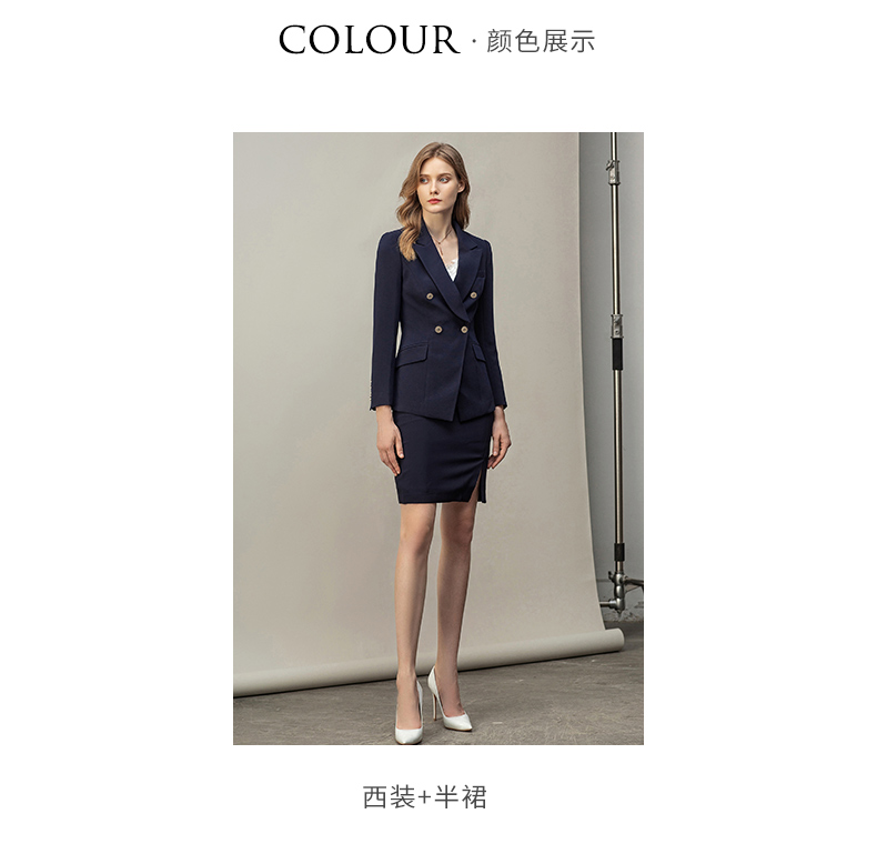 IWY/西装套装女藏青色名媛套裙ol职业装时尚气质商务白领正装工服CS11355
