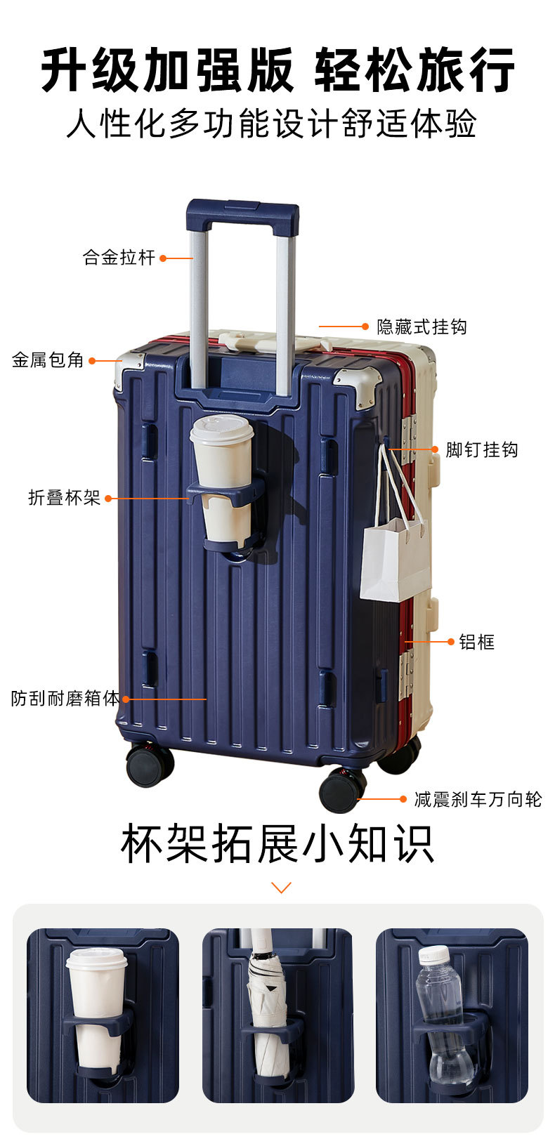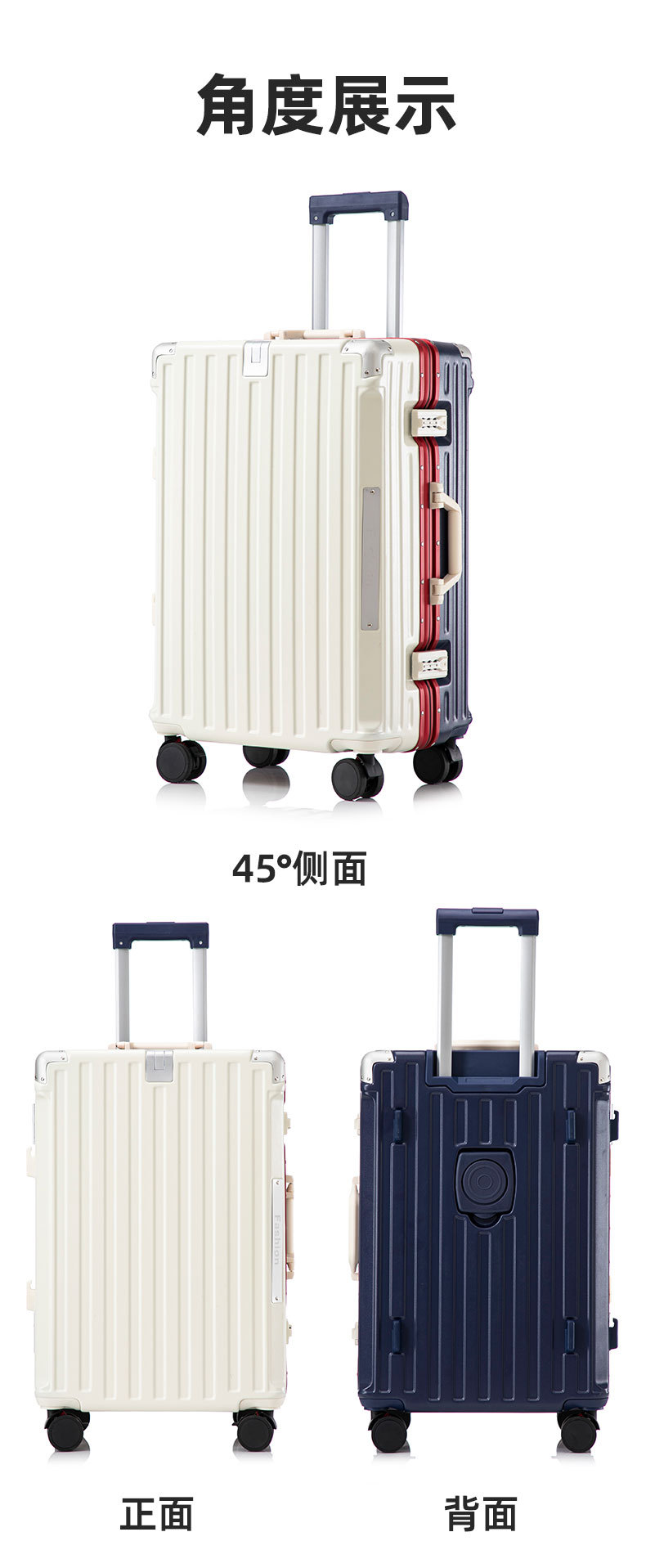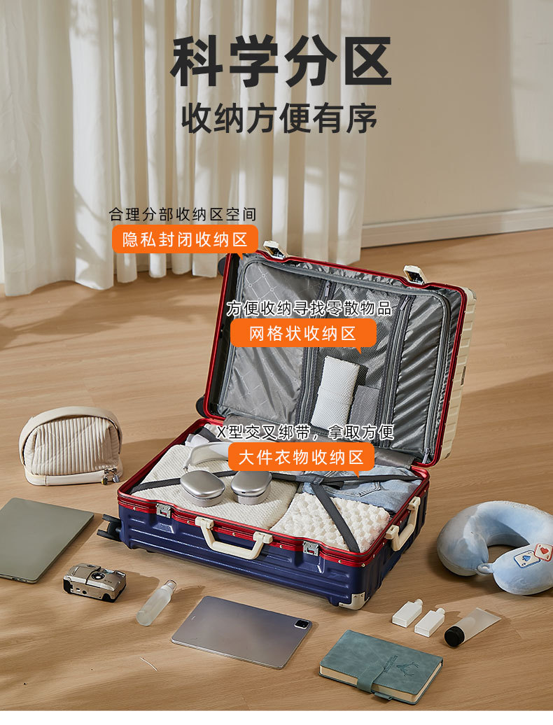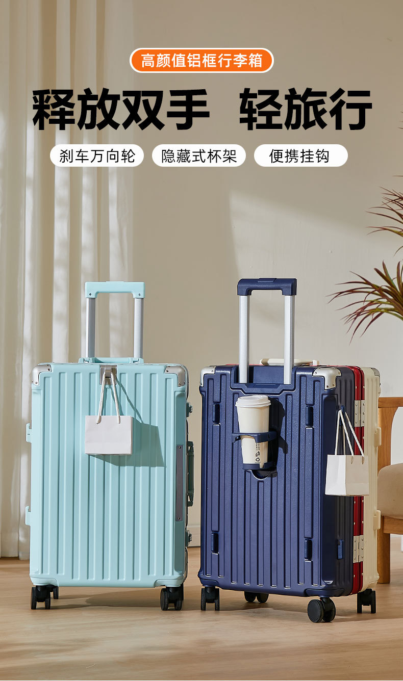 【行李箱大容量铝框拉杆箱】航空登机箱 加厚皮箱旅行箱 密码箱结实耐用