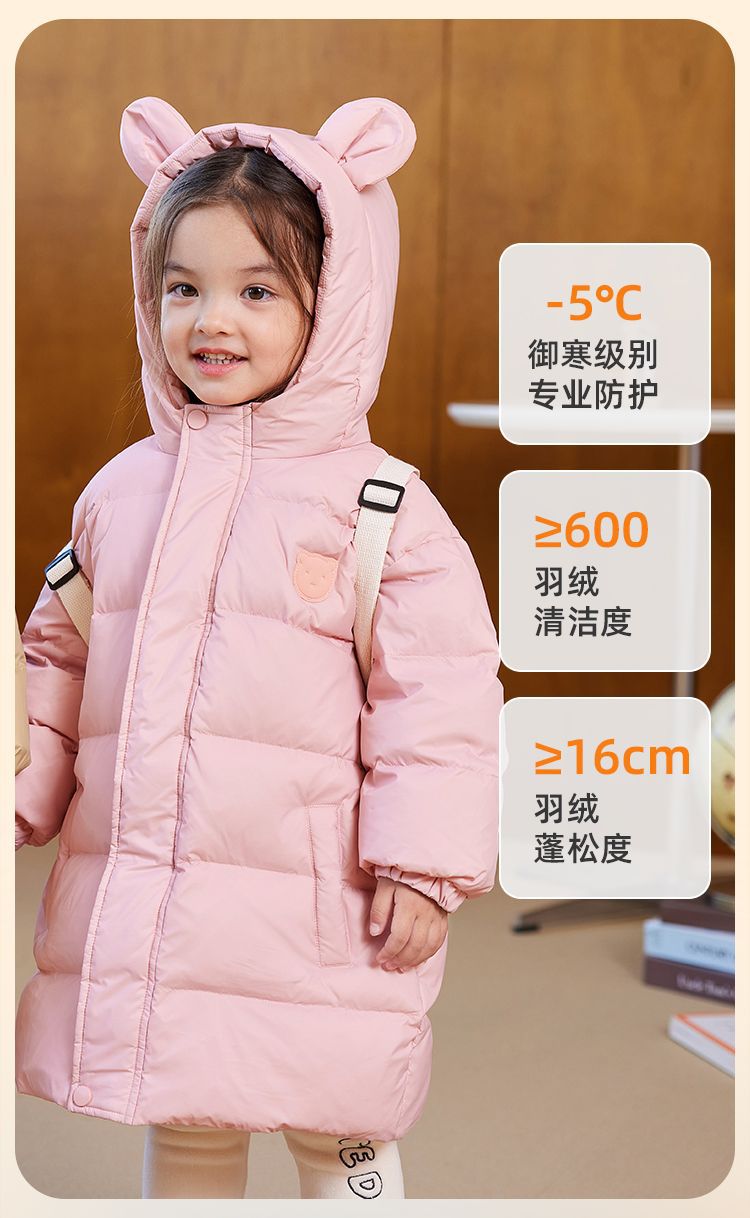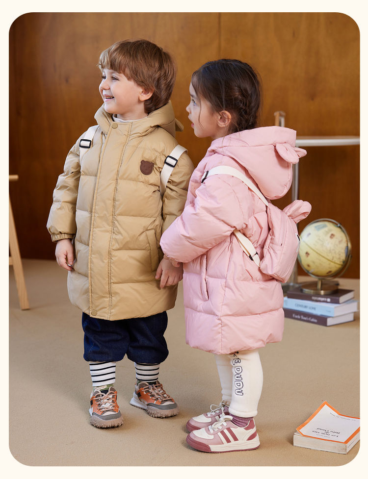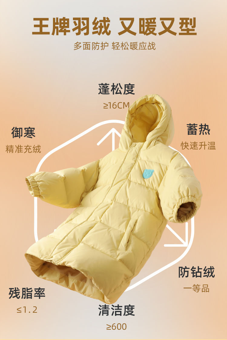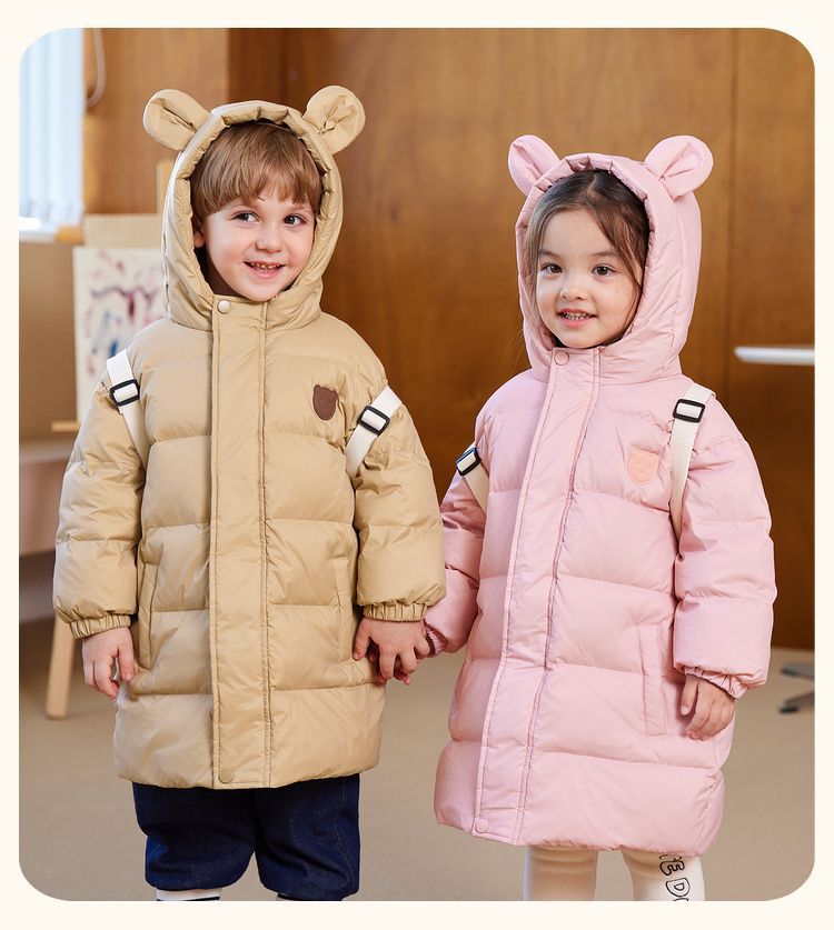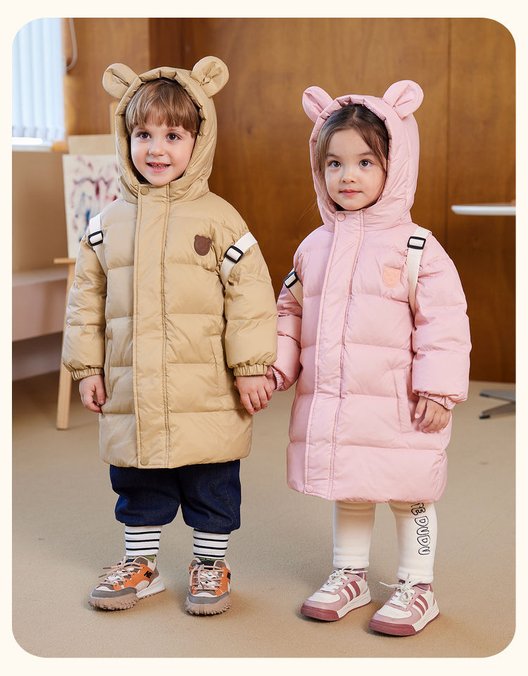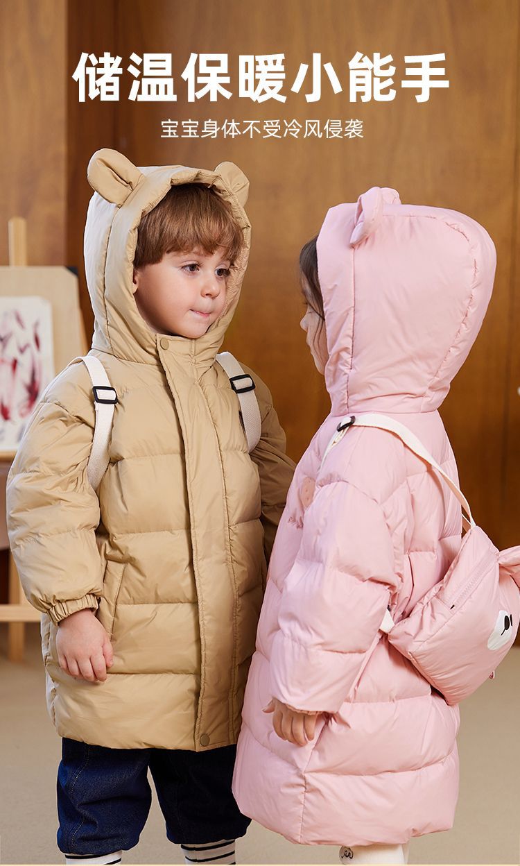 嘟嘟家儿童羽绒服中长款宝宝保暖冬装外套男童白鸭绒上衣冬季新款