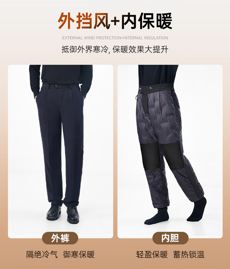 【实付满399送保温杯】【 三代护膝羽绒通勤裤(可拆卸内胆)】 男女款石墨烯保暖长裤高弹抗皱通勤西裤休闲直筒加绒裤