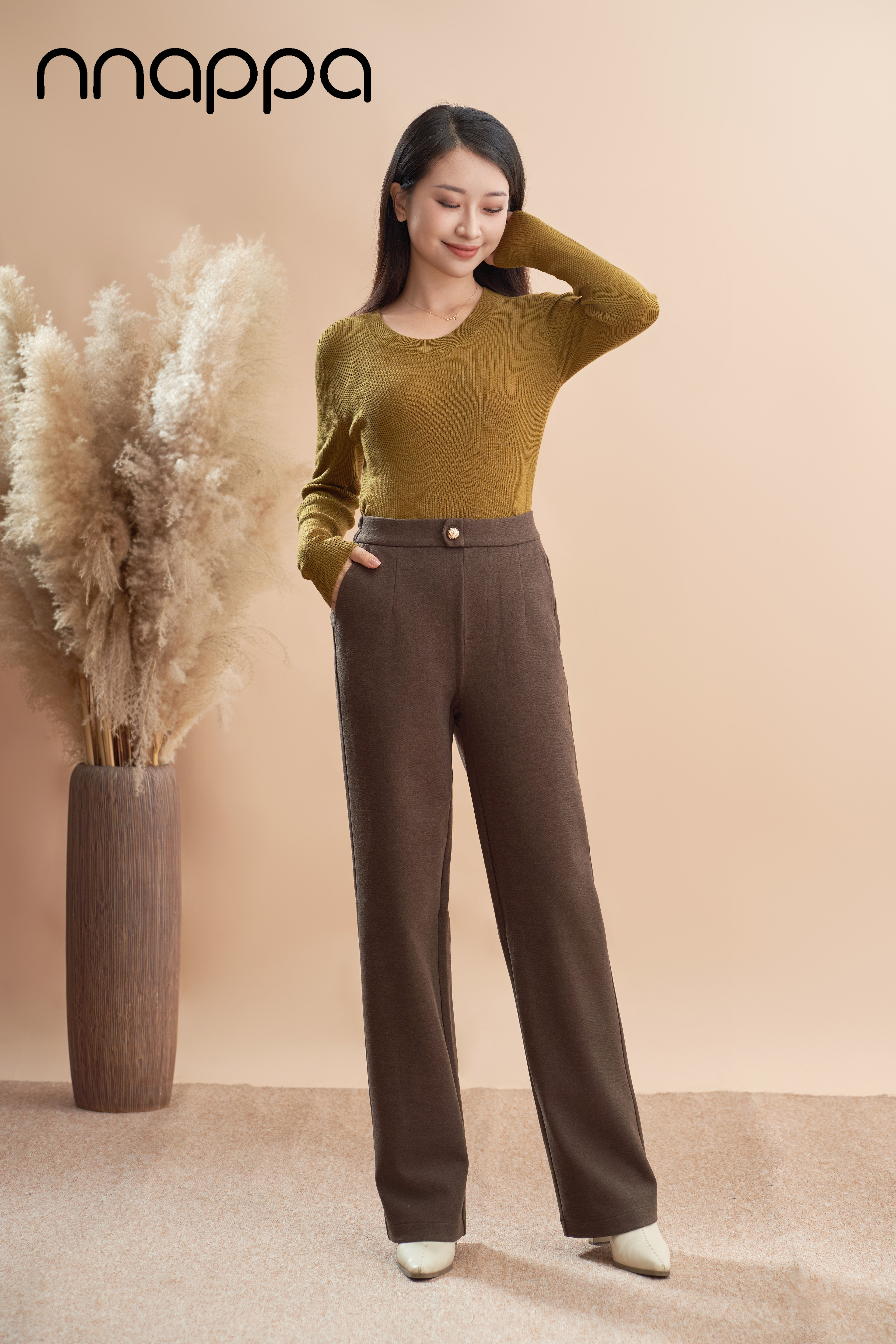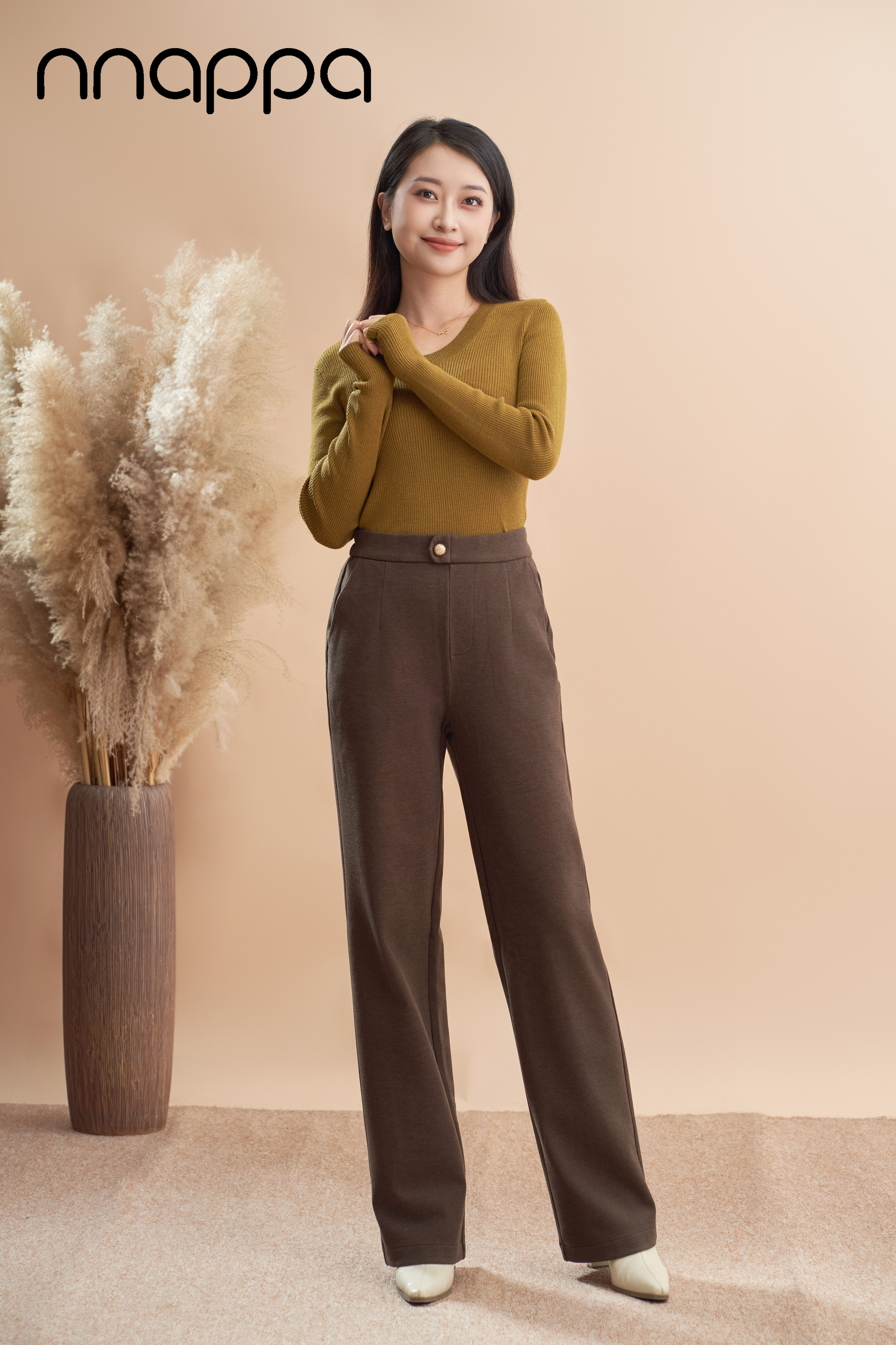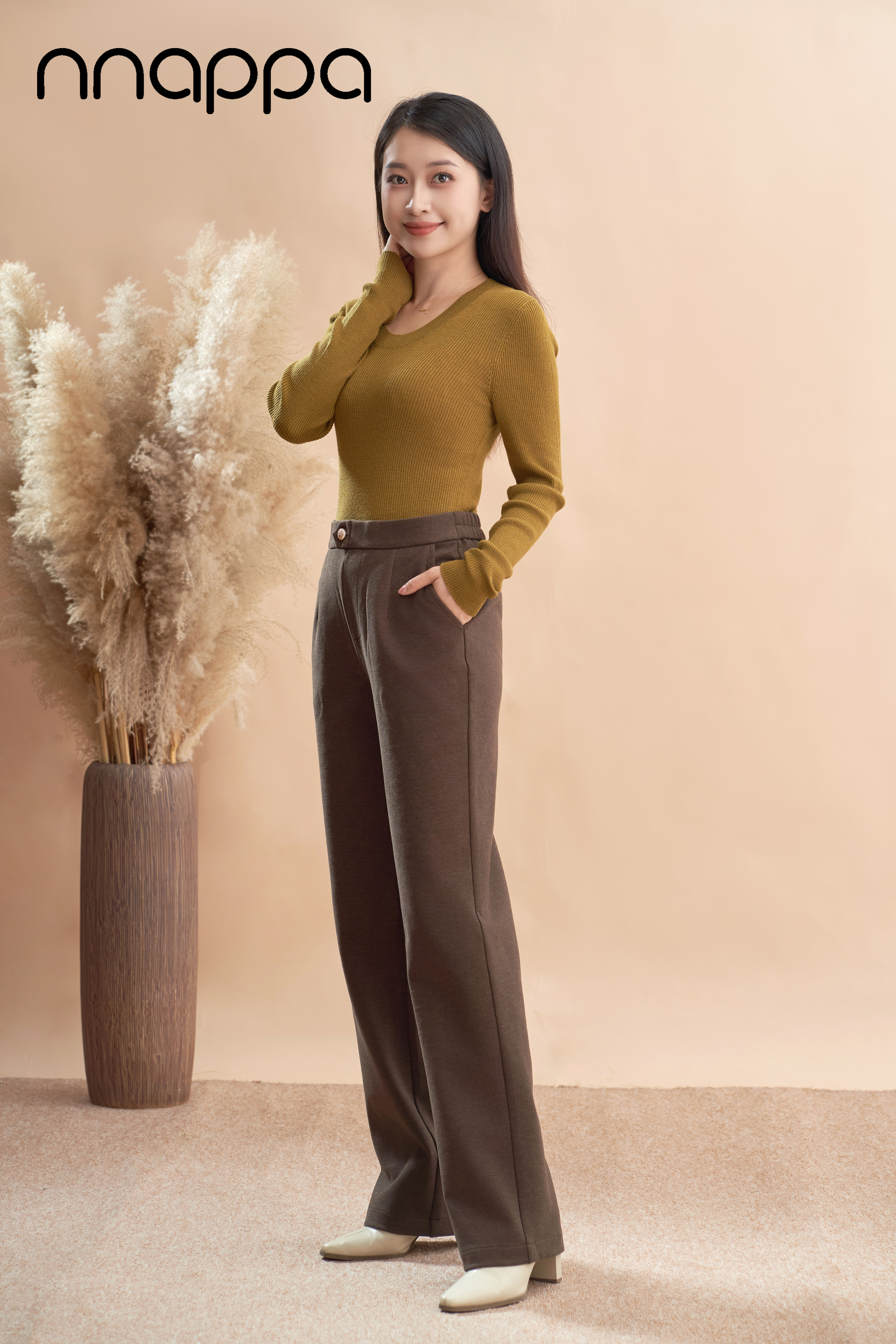 美拉德羊毛斜纹窄版阔腿裤PA29329