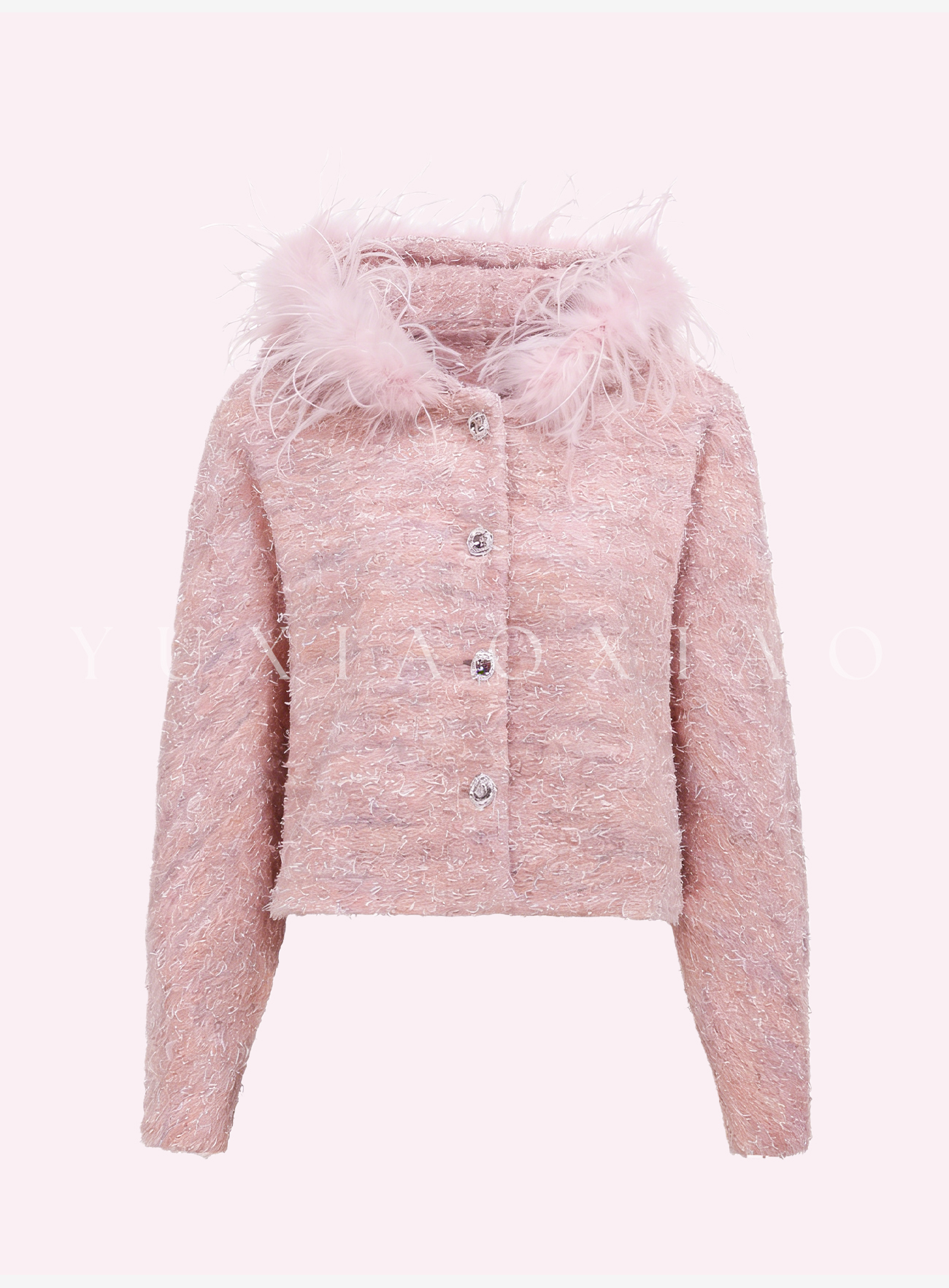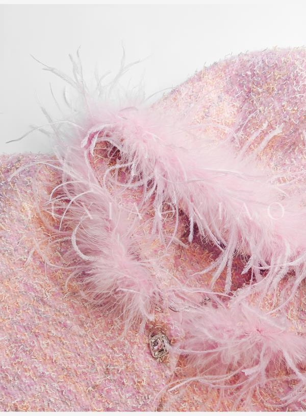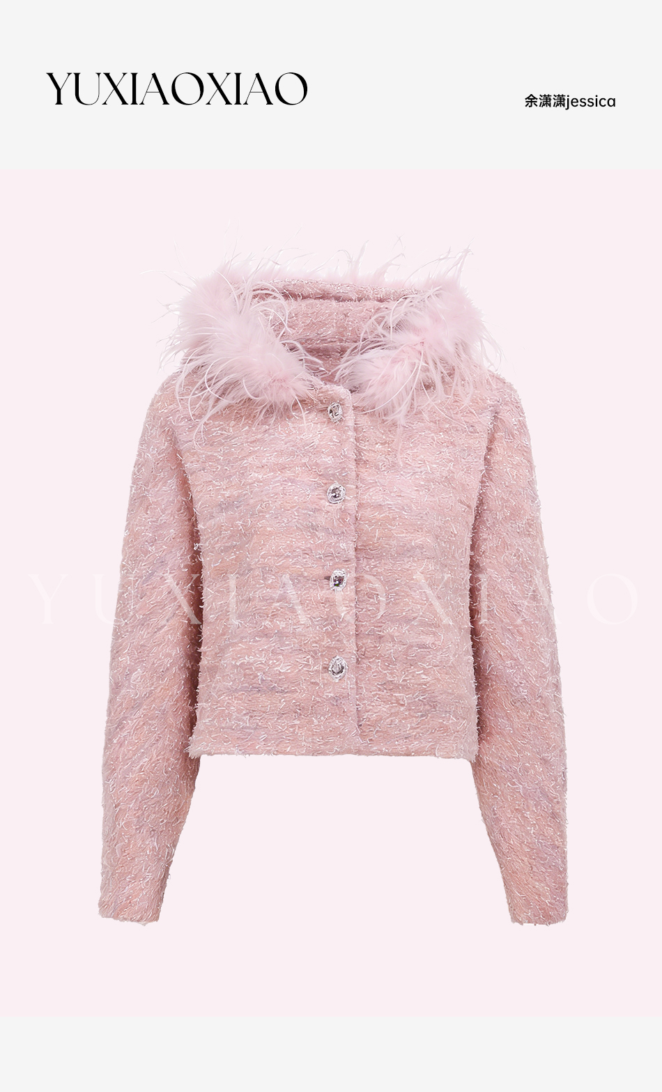 余潇潇【浪漫甜梦】绵羊毛混纺绒感可拆卸定染鸵鸟毛领连帽宽松外套