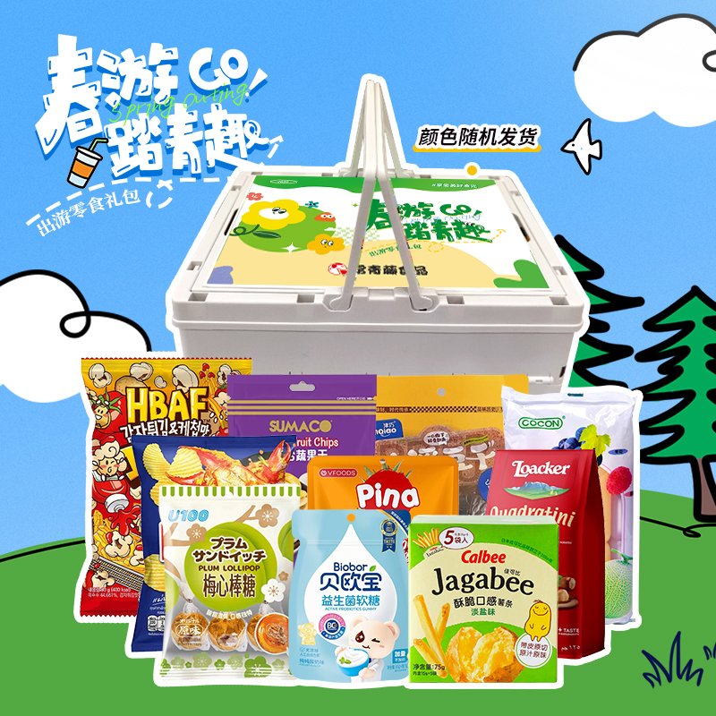 【春日限定】春暖花开踏青出游零食组合C-手提折叠收纳箱款 颜色随机