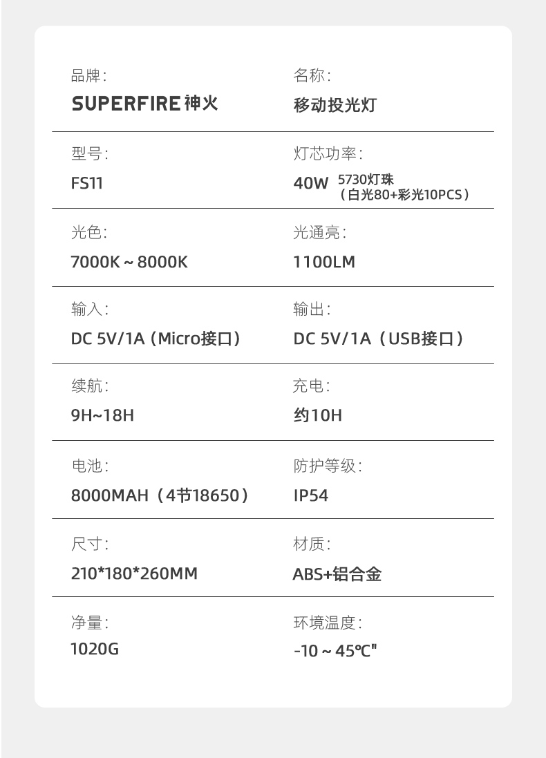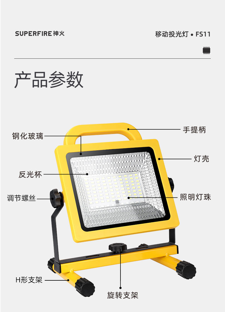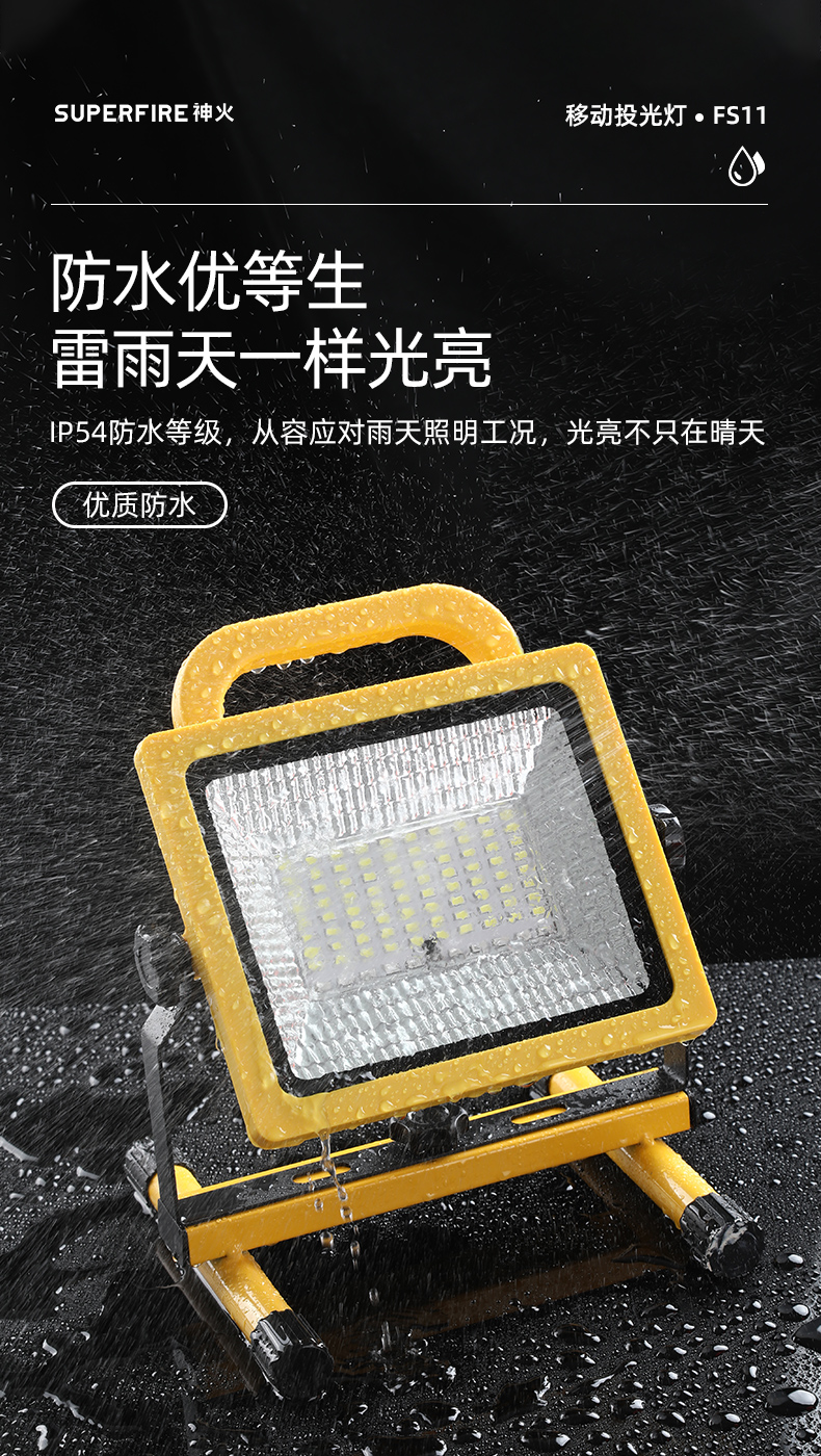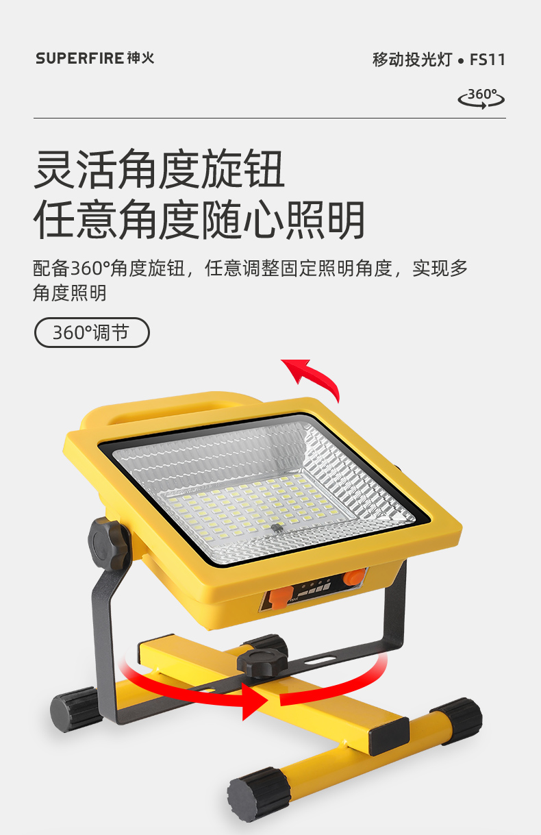 SUPERFIRE神火FS11投光灯充电照明灯强光提工地户外野外营地灯LED应急露营灯
