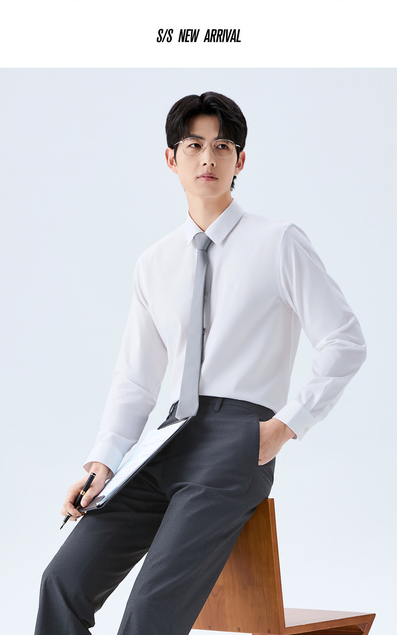 【含莱赛尔】柒牌男式商务长袖衬衫26春季新款柔软舒适衫百搭衬衣 130A70670