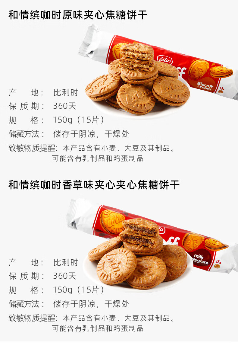 比利时和情缤咖时焦糖夹心饼干原味/香草味/牛奶巧克力味150g 外层焦香酥脆夹心顺滑浓郁 150059/150060/150061