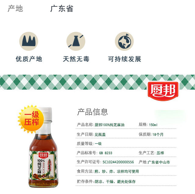 厨邦纯正丨非调和100%纯芝麻油(合作)