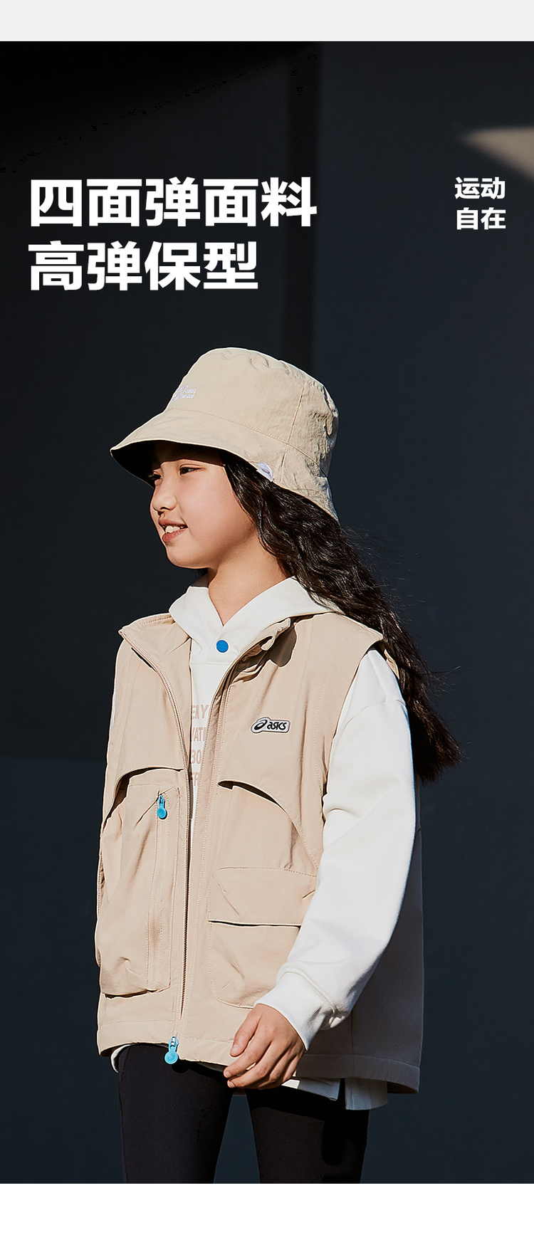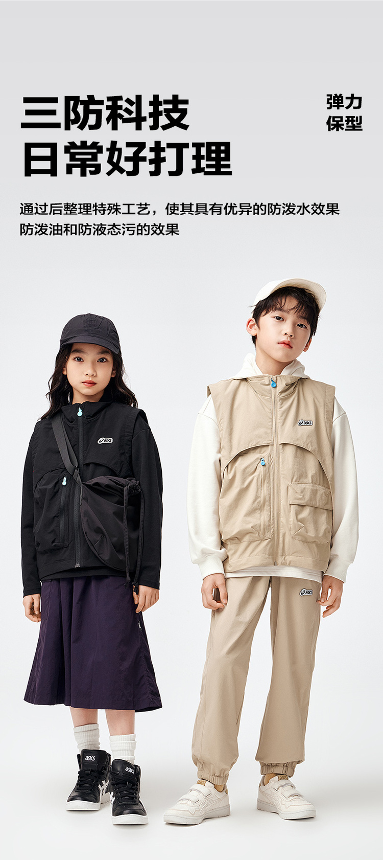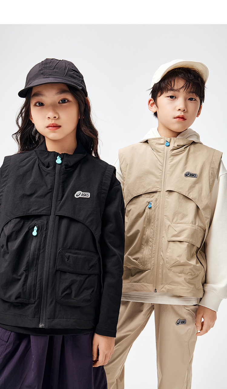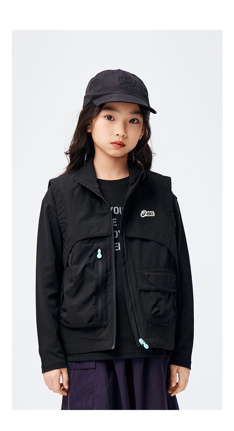 ASICS/亚瑟士童装24年春新男女童三防不对称多袋宽松舒适梭织马甲