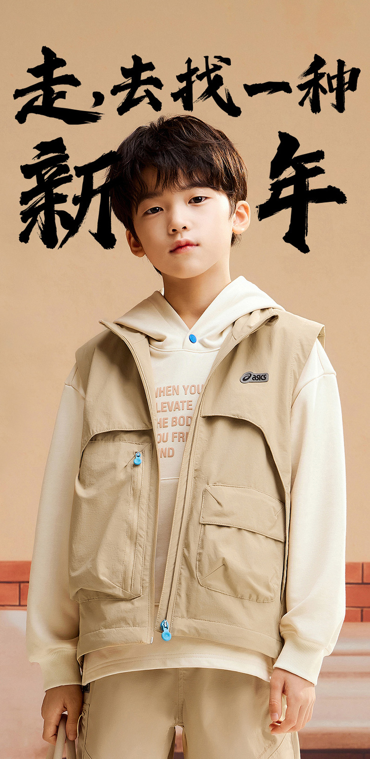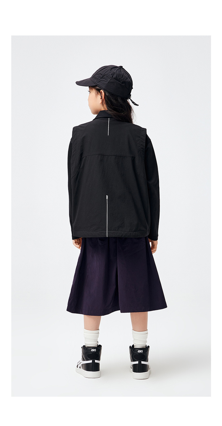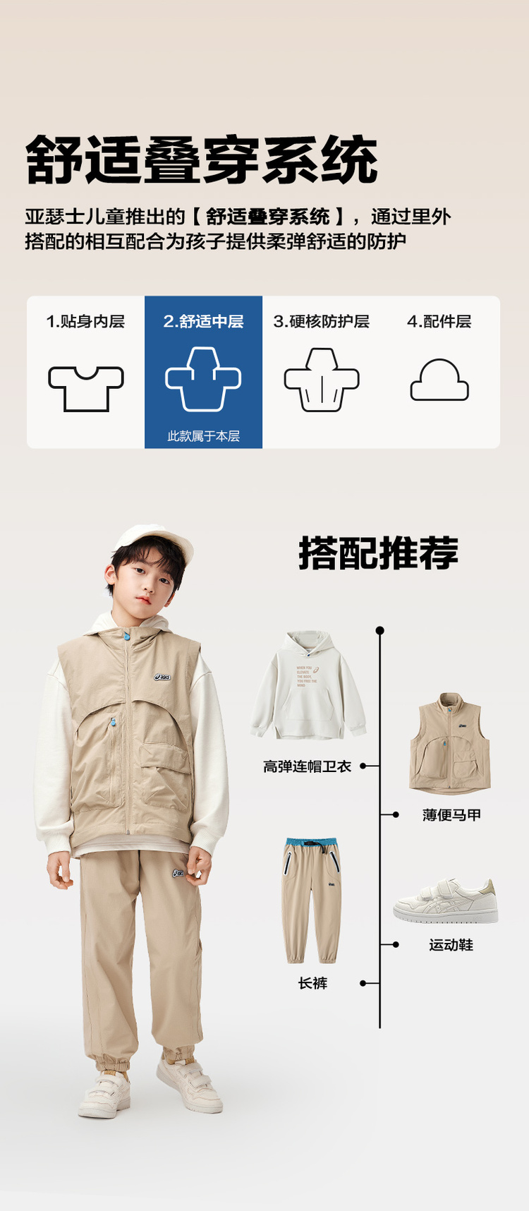ASICS/亚瑟士童装24年春新男女童三防不对称多袋宽松舒适梭织马甲