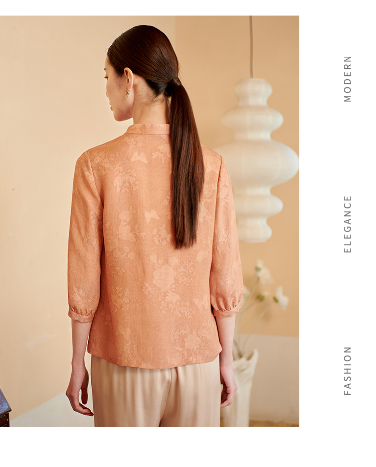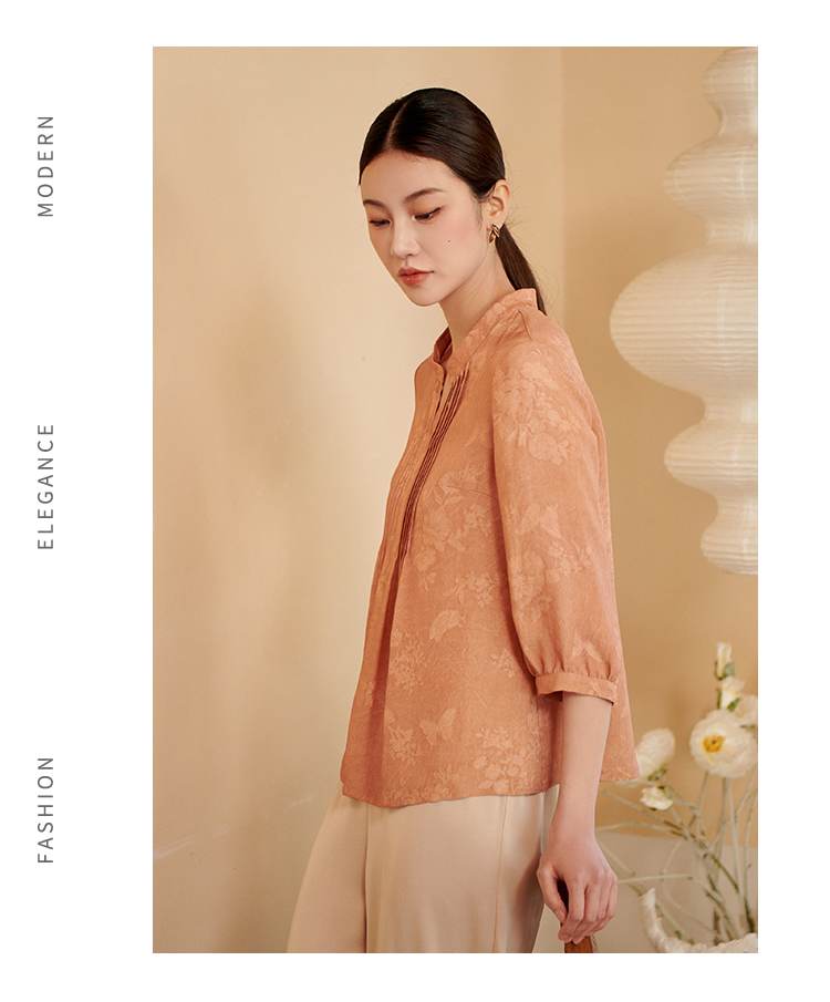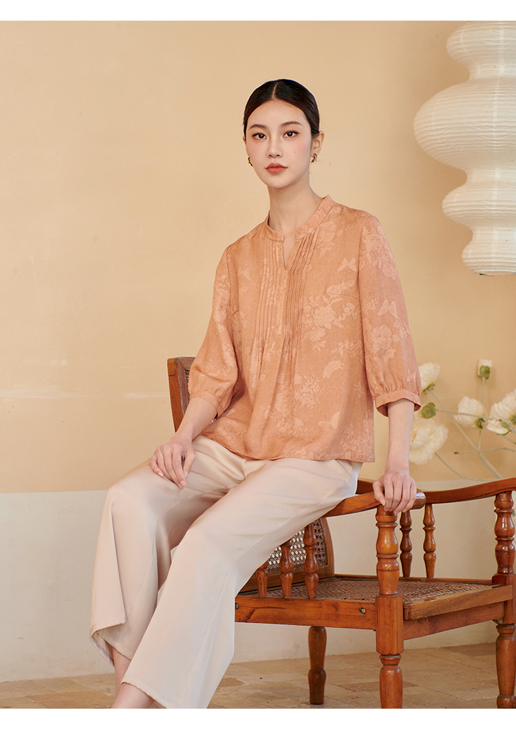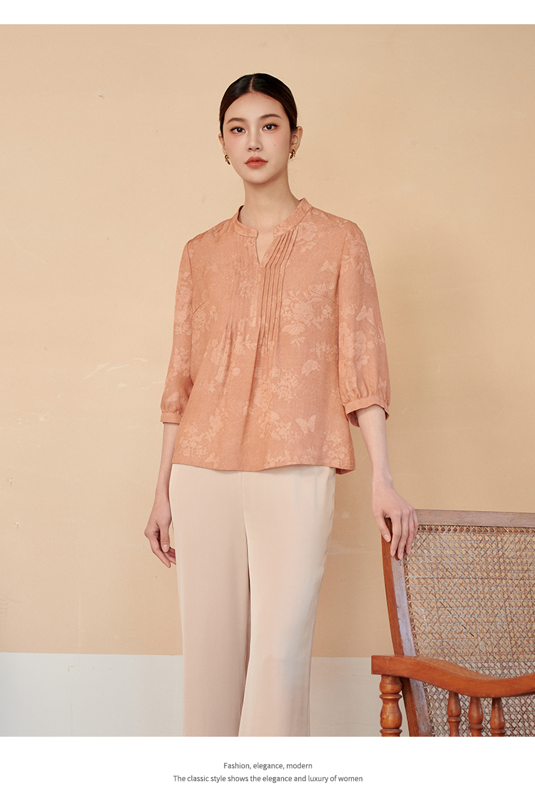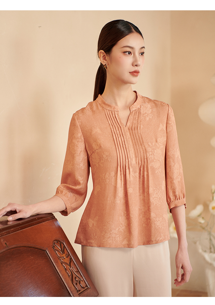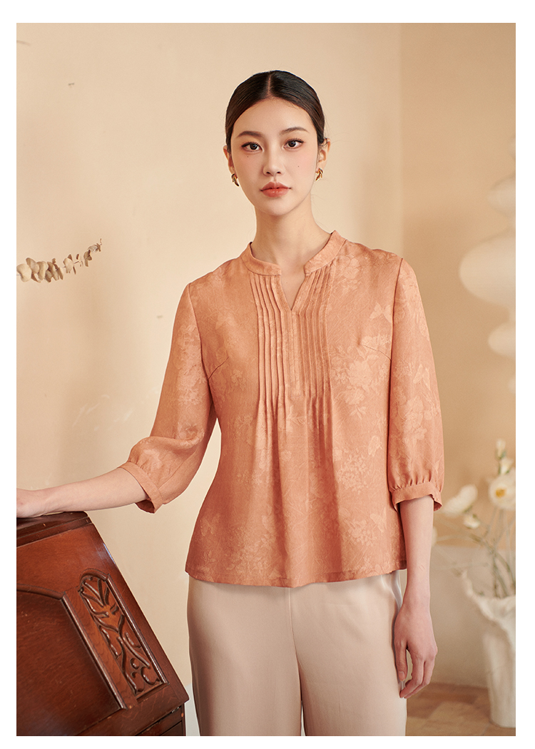 佐尔美夏季新款 时尚气质100%桑蚕丝真丝V领中袖衬衣女M42CS16