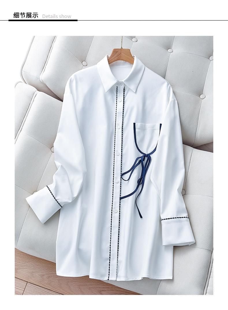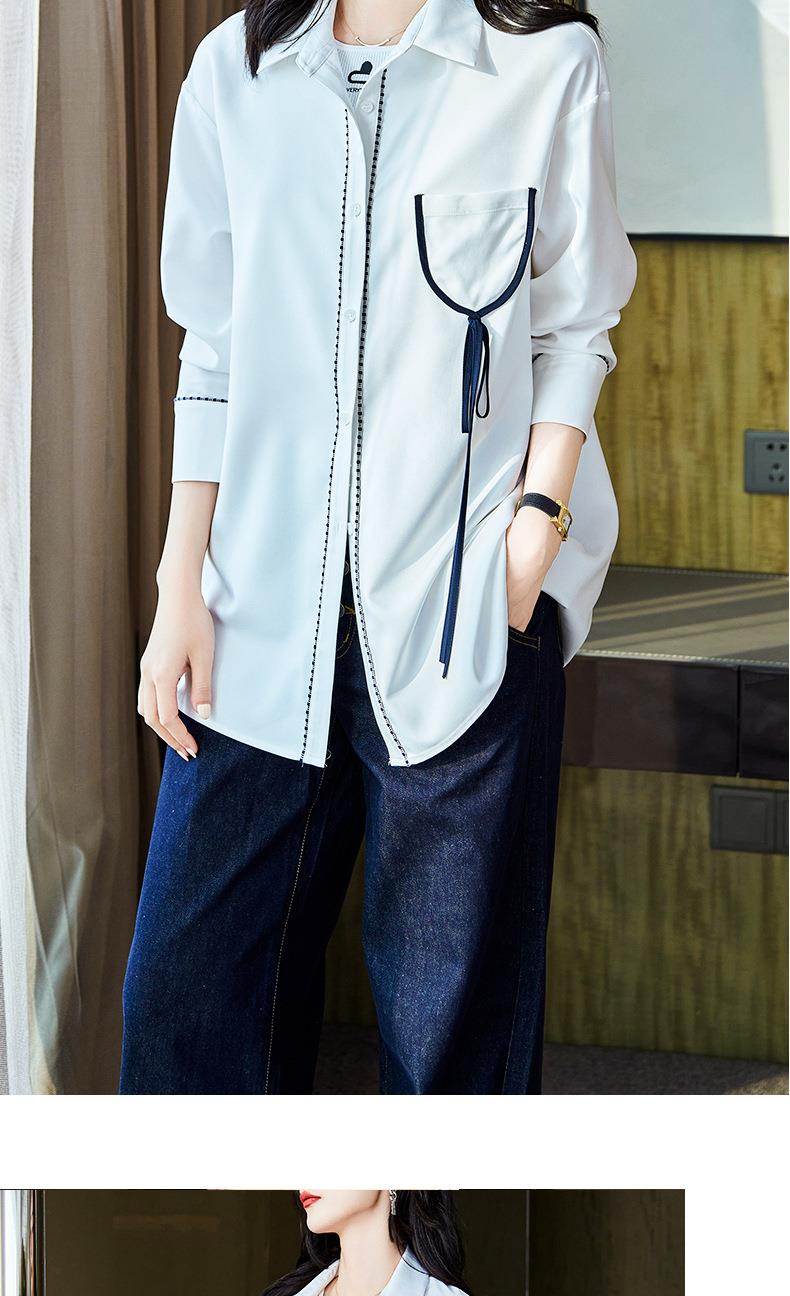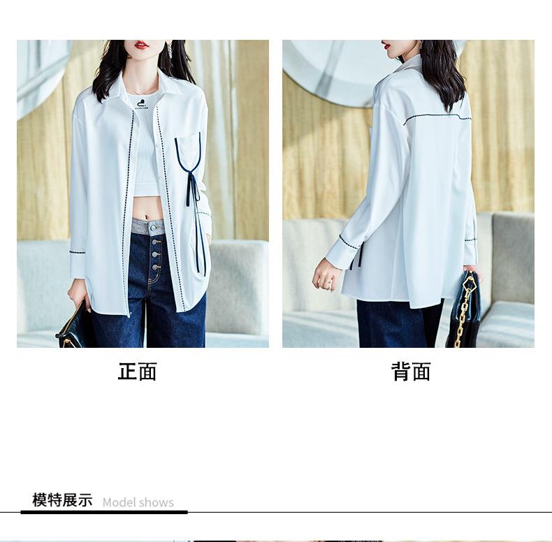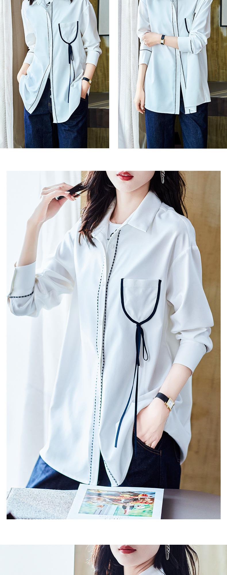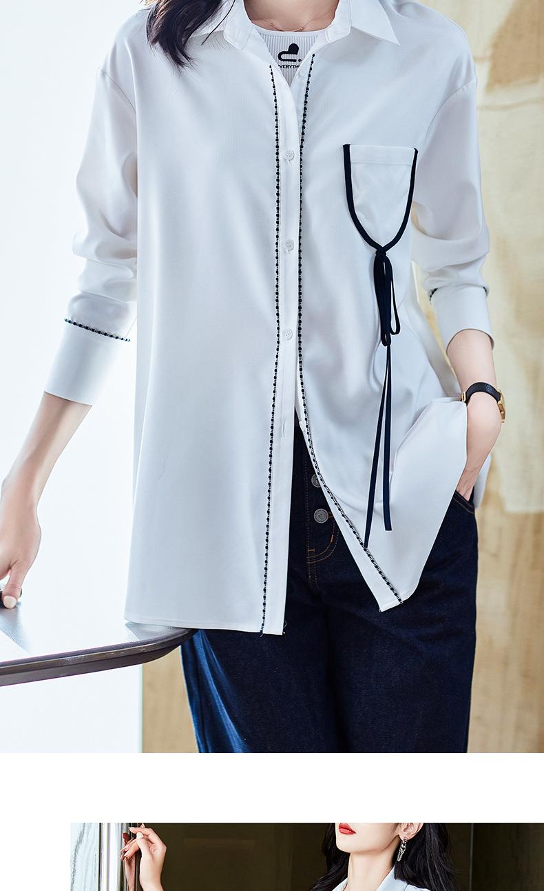 2023秋装新款白衬衫女长袖宽松雪纺中长款女士衬衣A2637