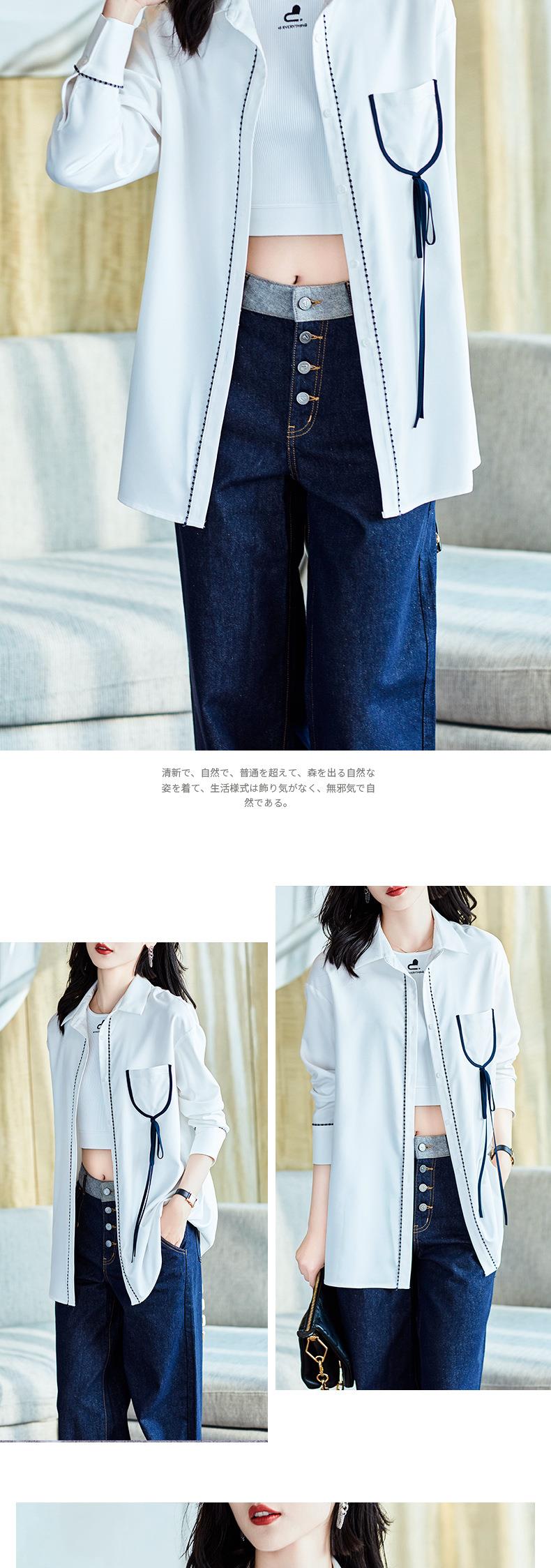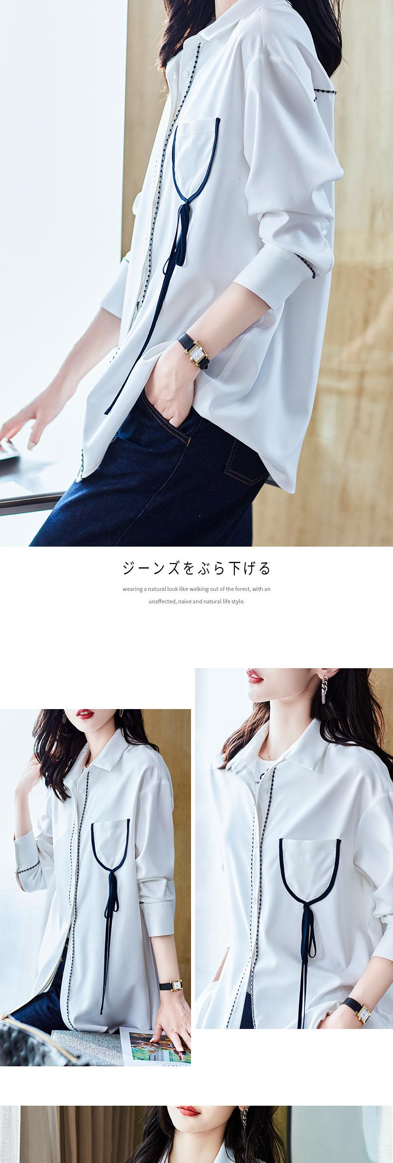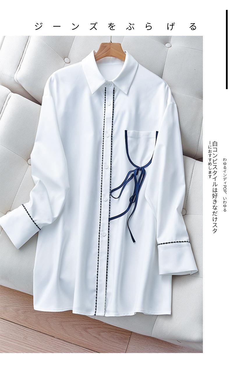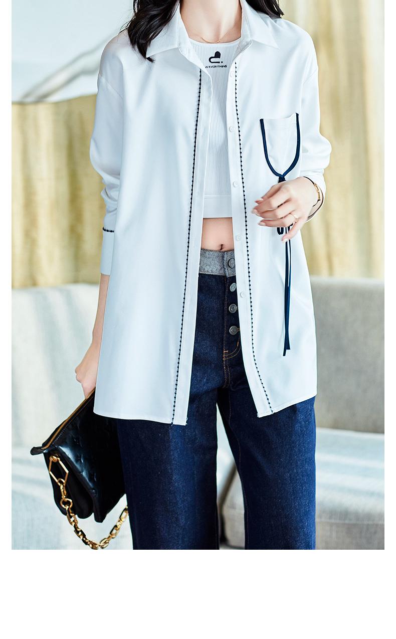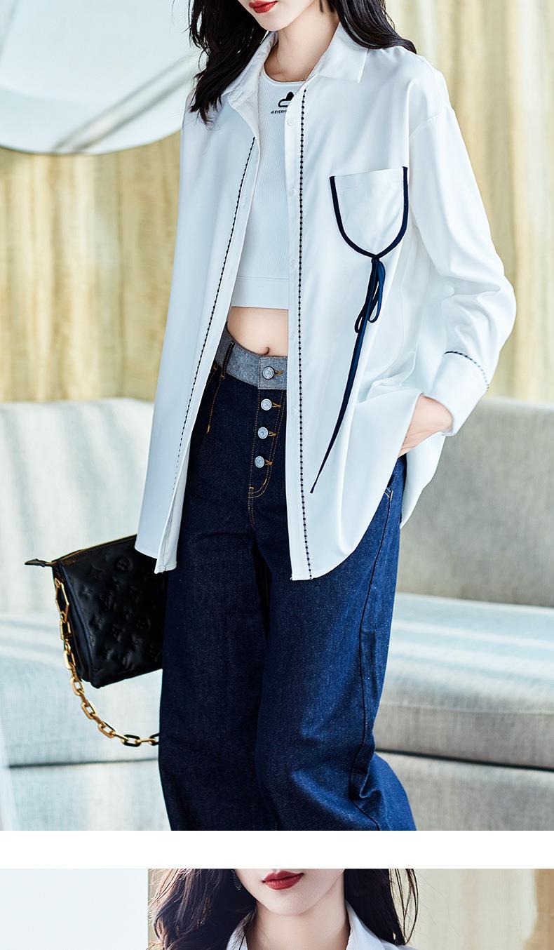 2023秋装新款白衬衫女长袖宽松雪纺中长款女士衬衣A2637