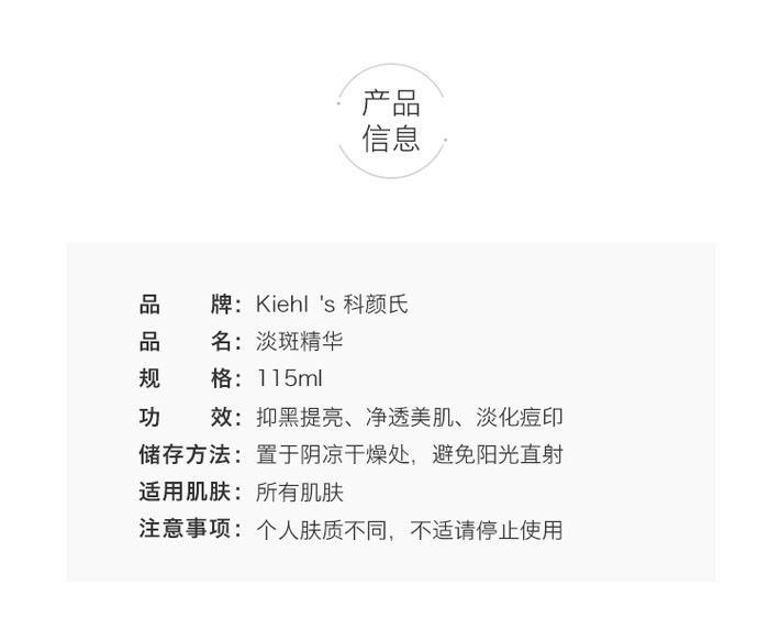 【跨境】KIEHL'S 科颜氏淡斑精华液115ml 均集焕白均衡亮肤淡斑安白瓶 (效期到27年3月)