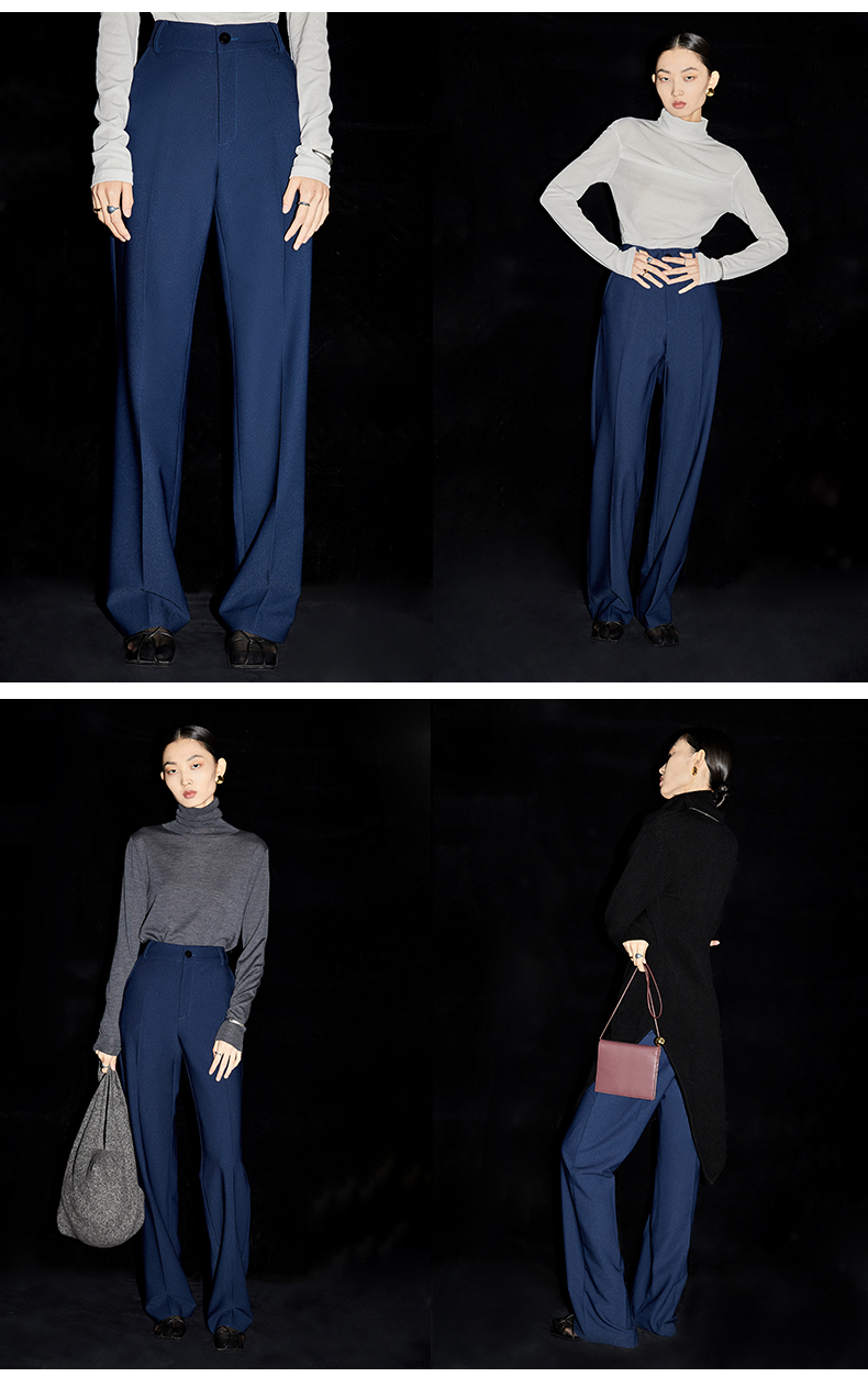 HIDEMI夜灰色简约不对称设计感一粒扣阔腿裤