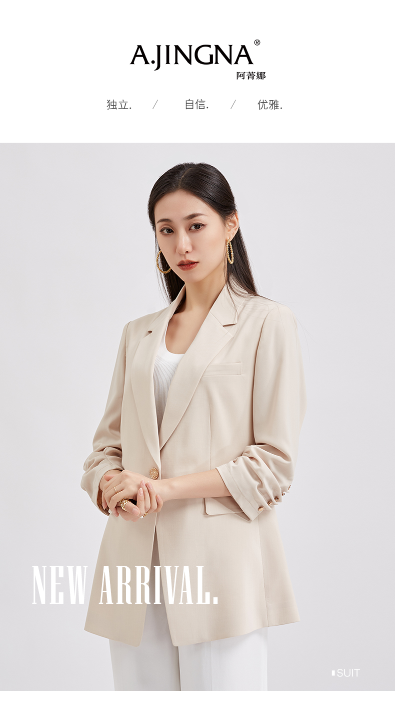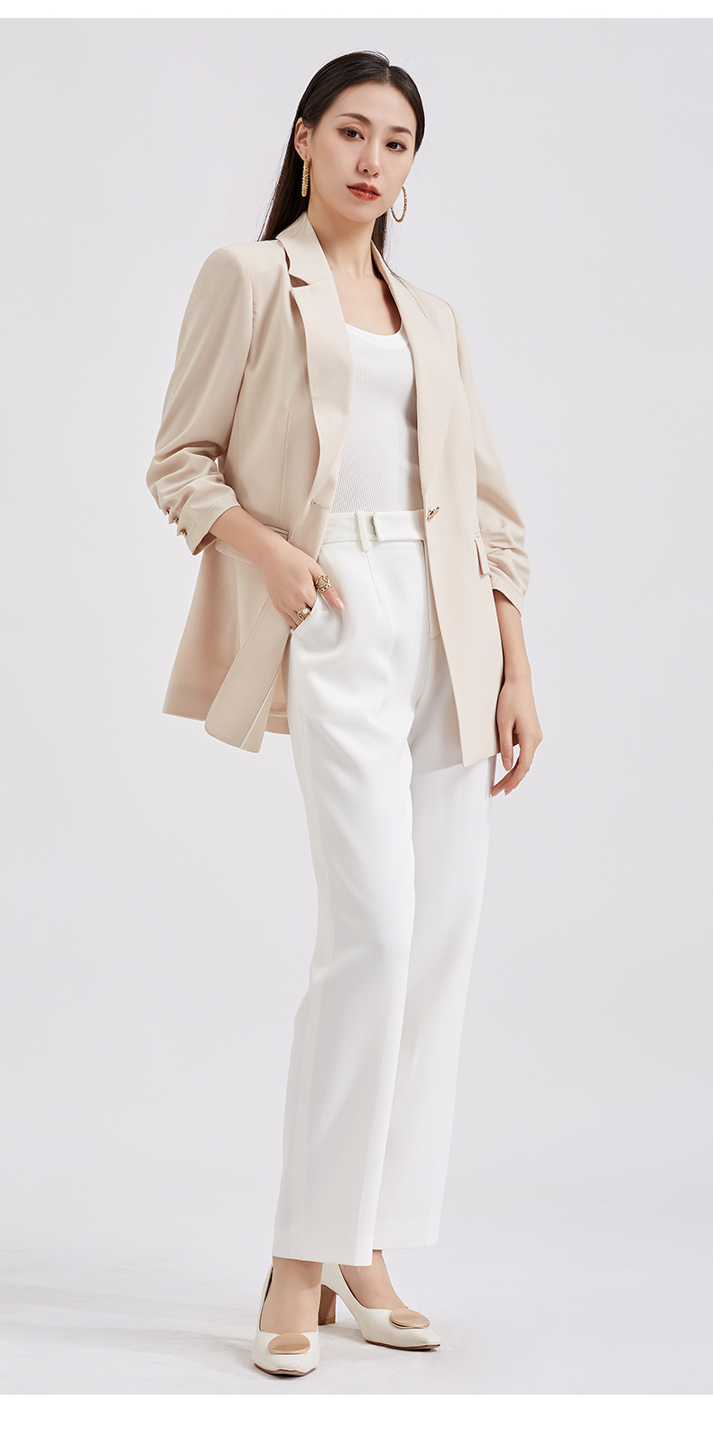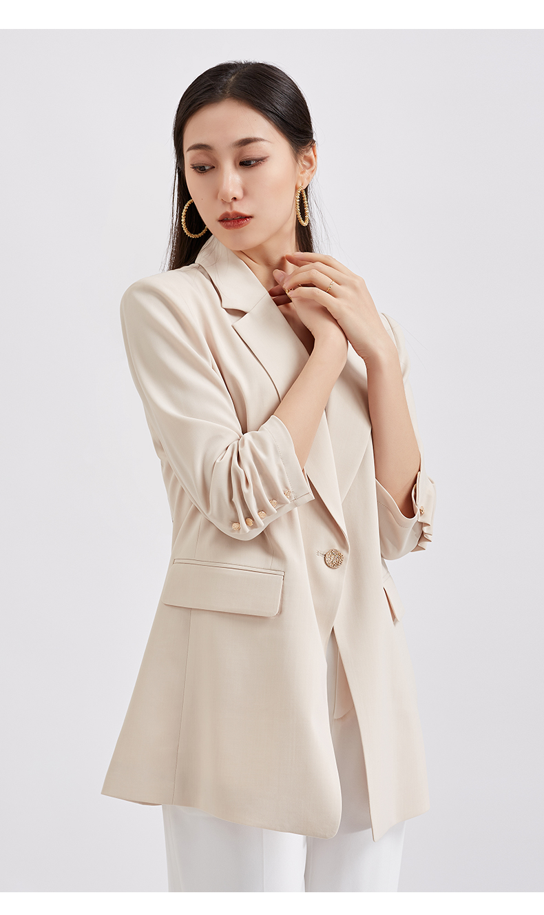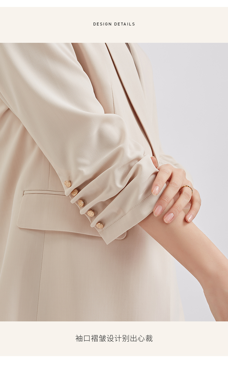 【特价款不退不换】阿菁娜经典珍珠白轻盈收褶七分袖小西服A27C108019