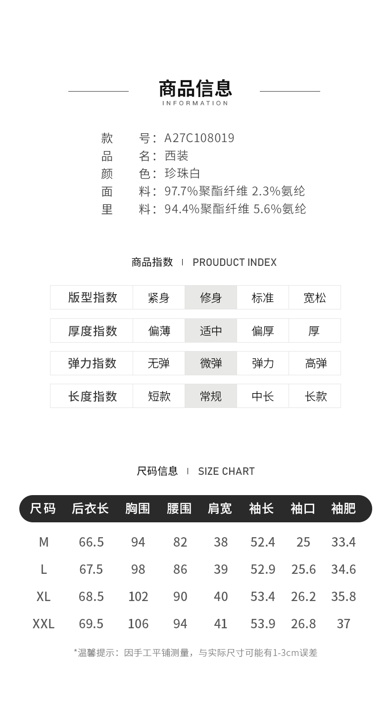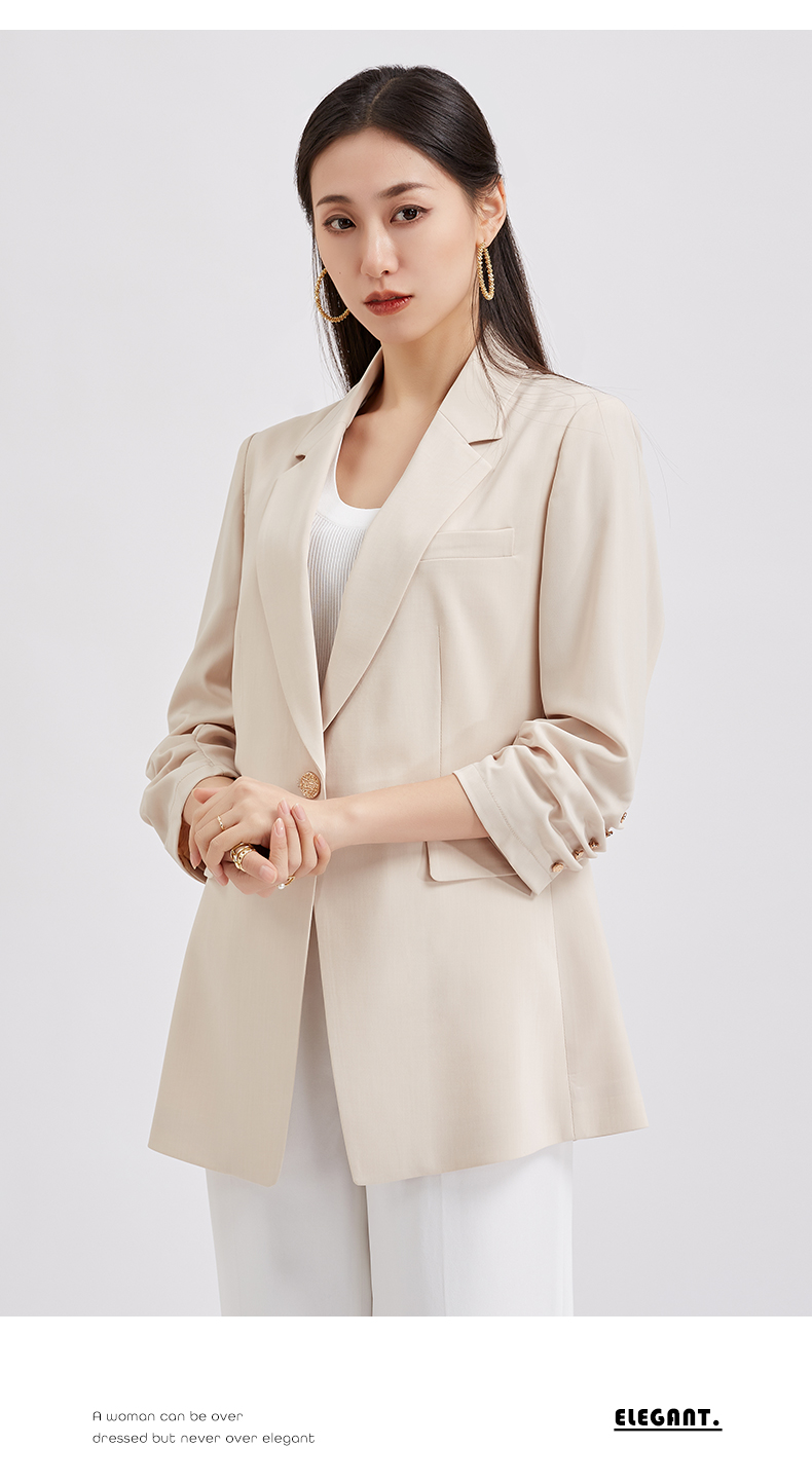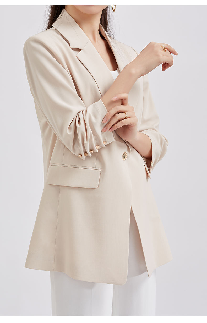 【特价款不退不换】阿菁娜经典珍珠白轻盈收褶七分袖小西服A27C108019