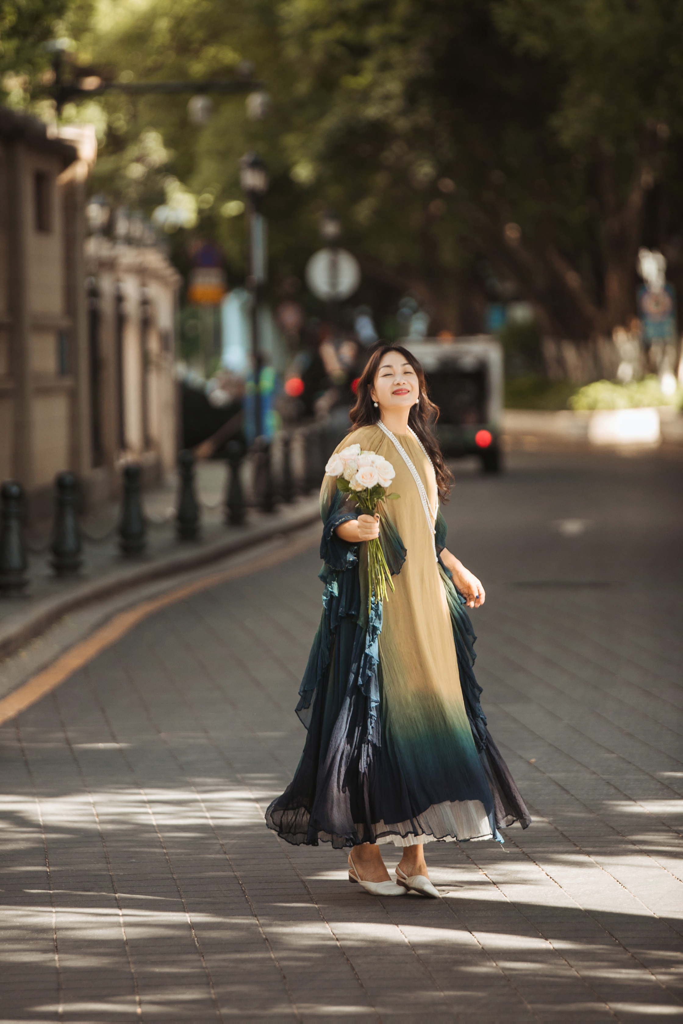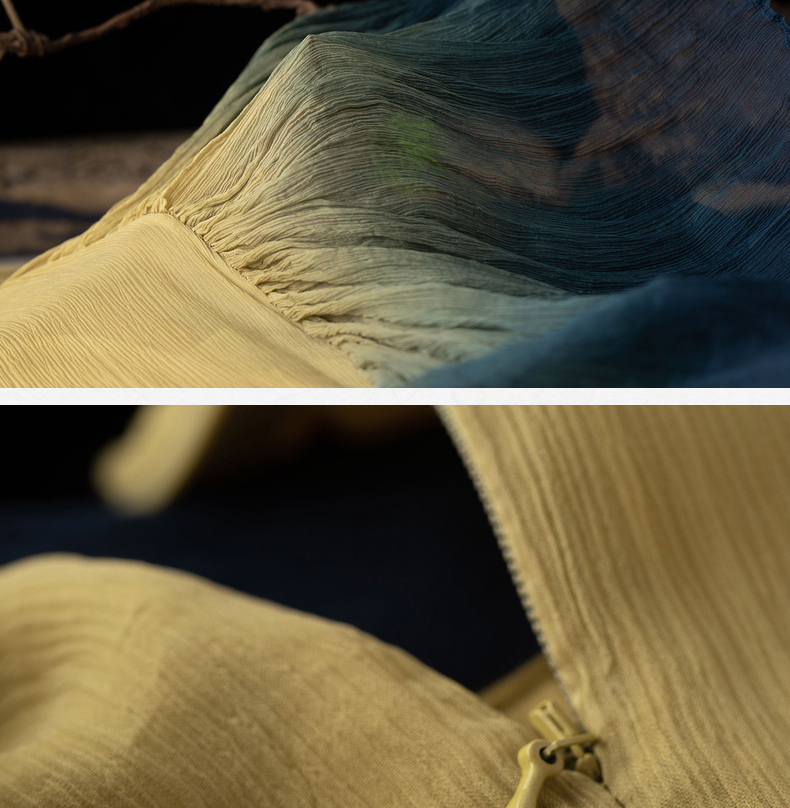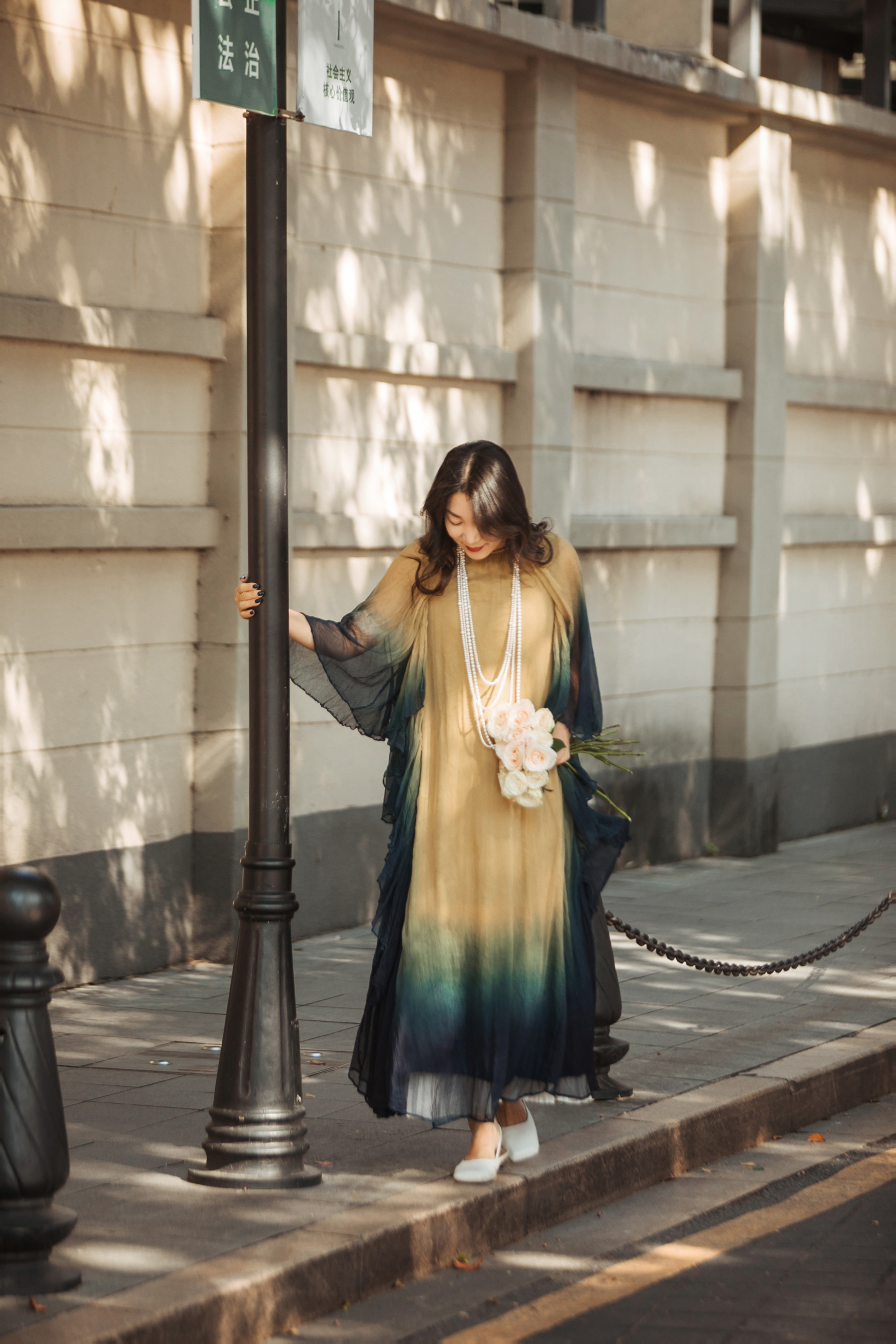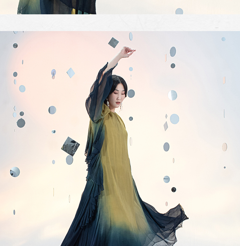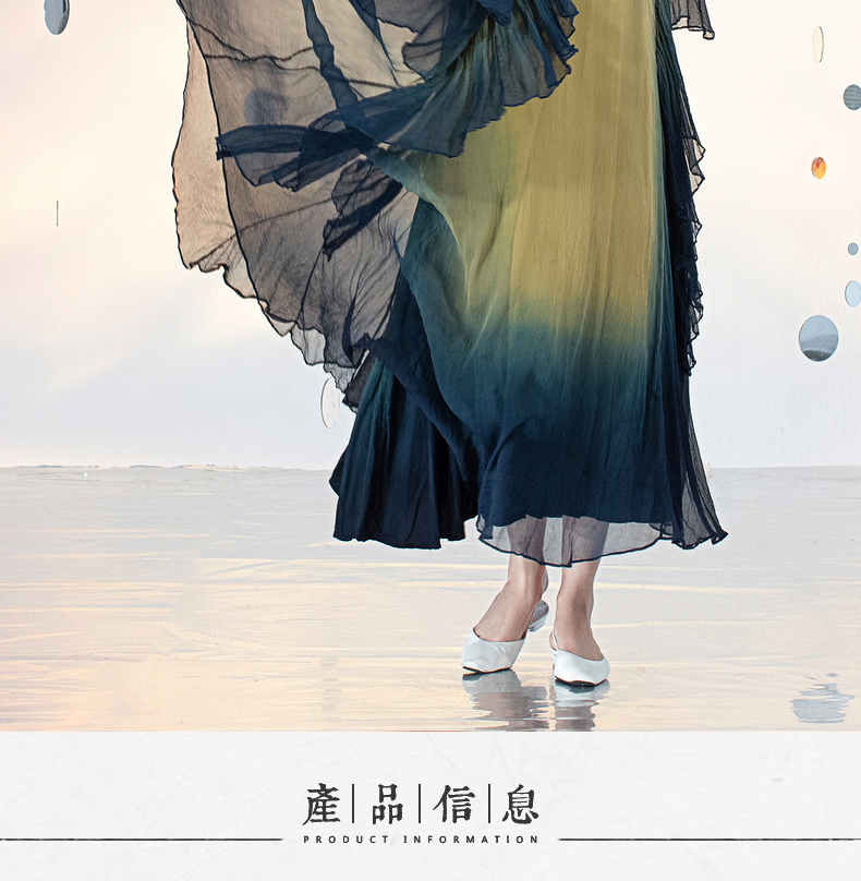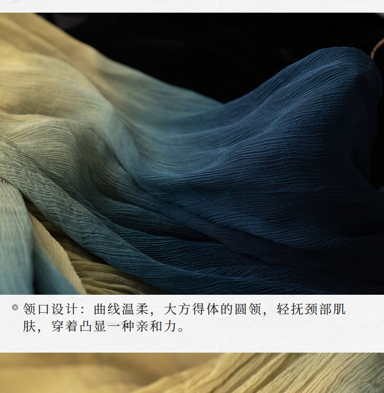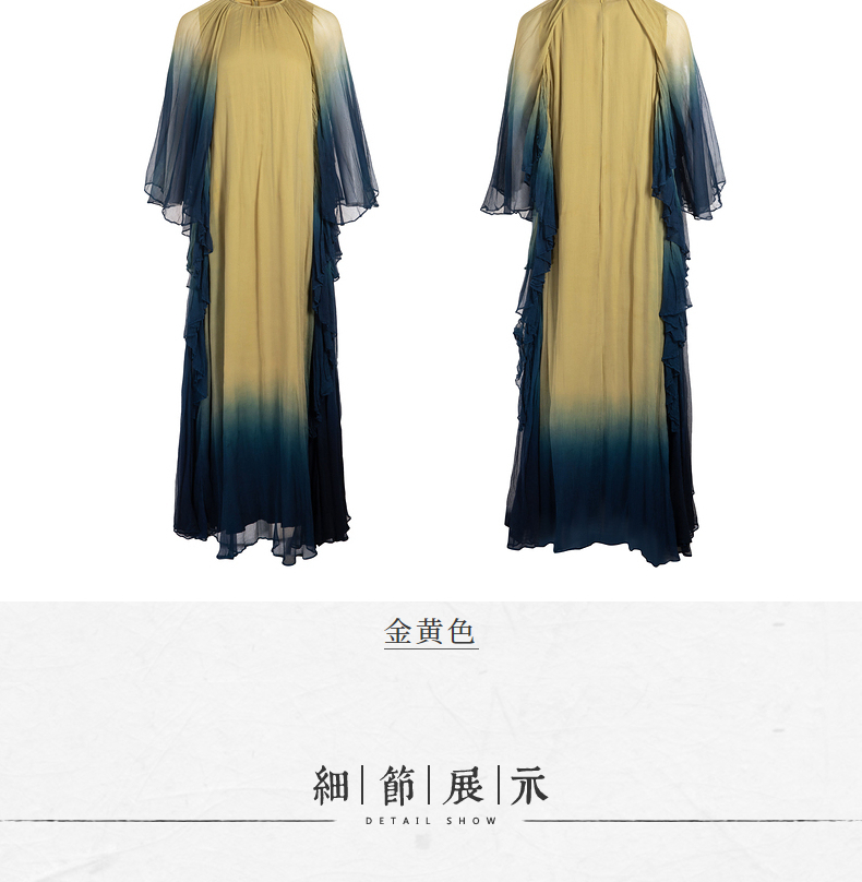 【林栖设计小店】花仙子2022秋冬新品原创100%桑蚕丝荷叶袖蓝染渐变连衣裙 1924139