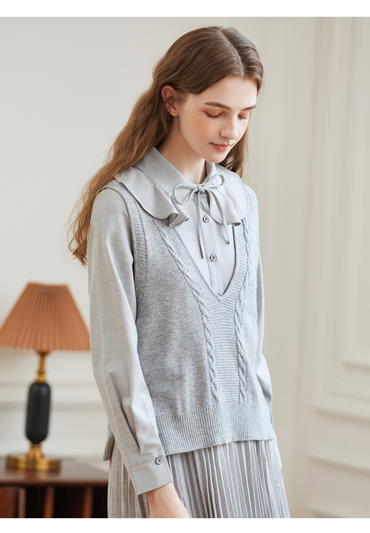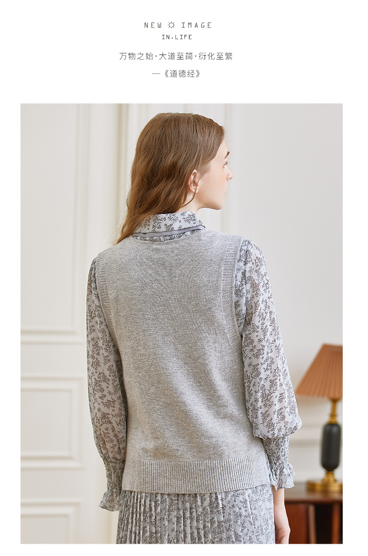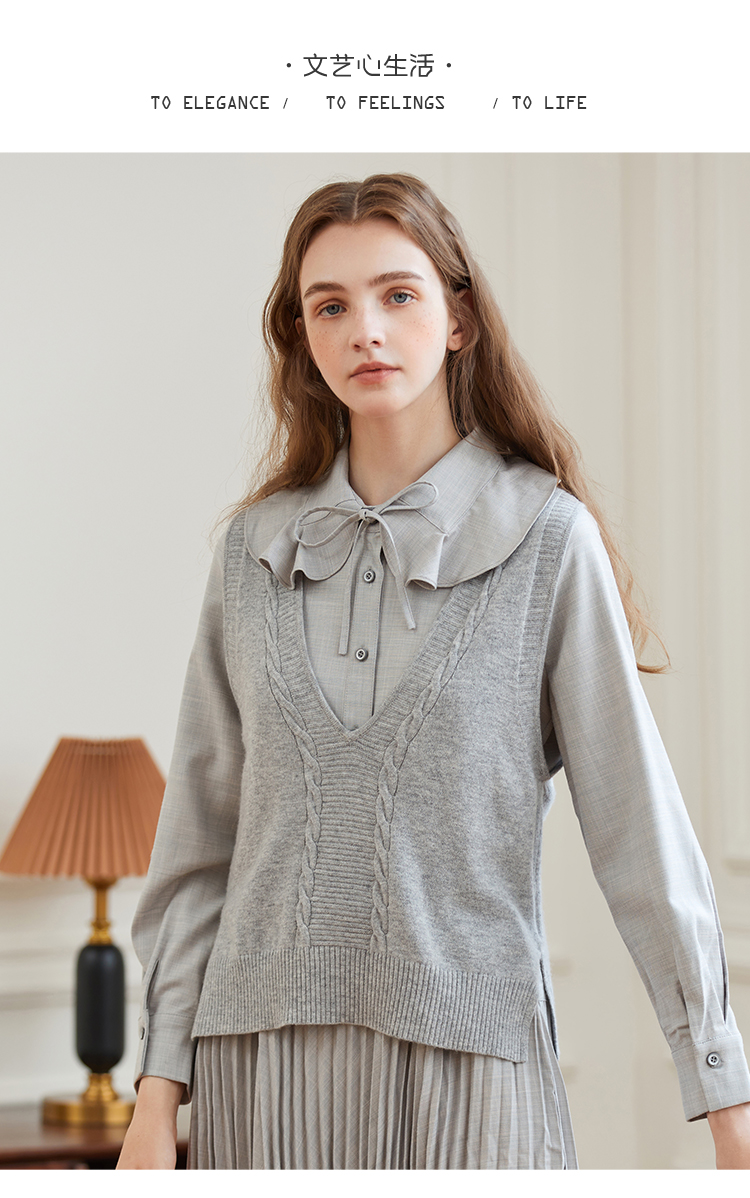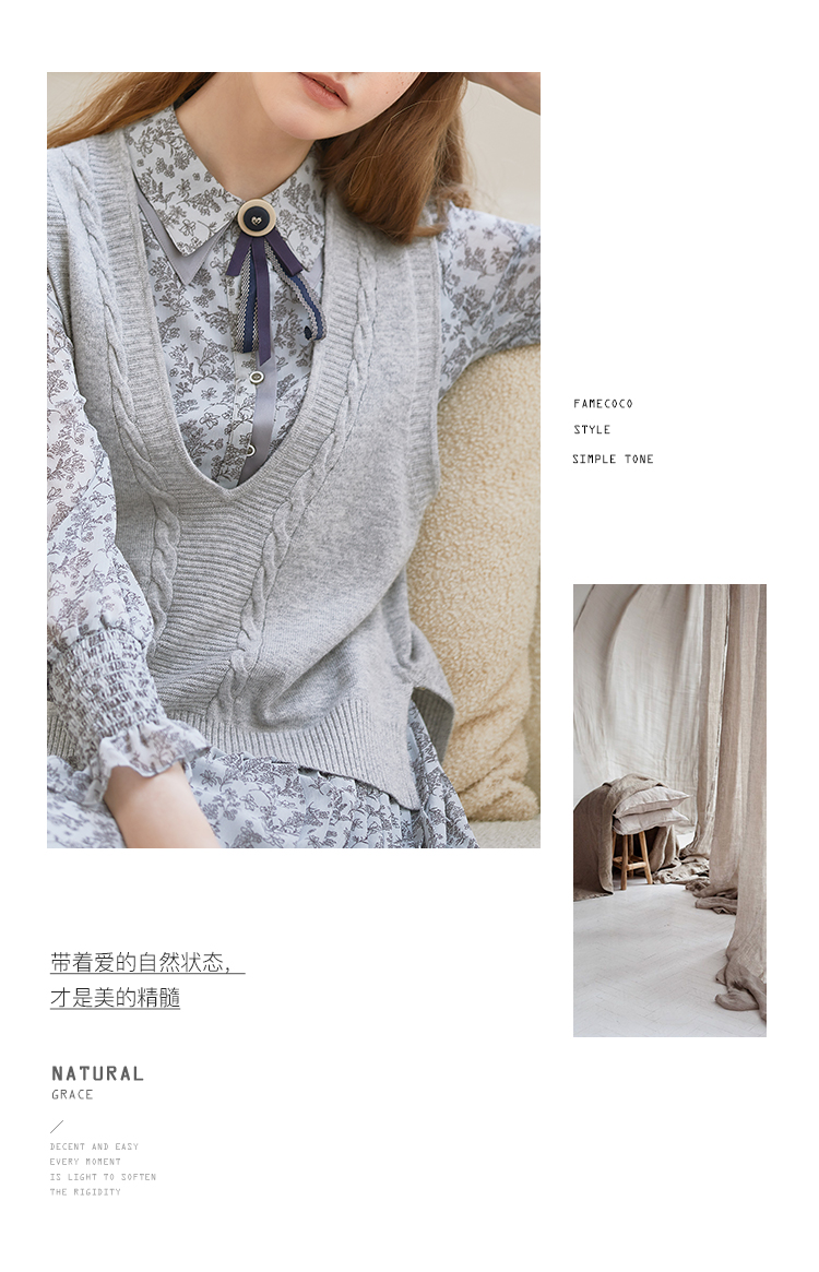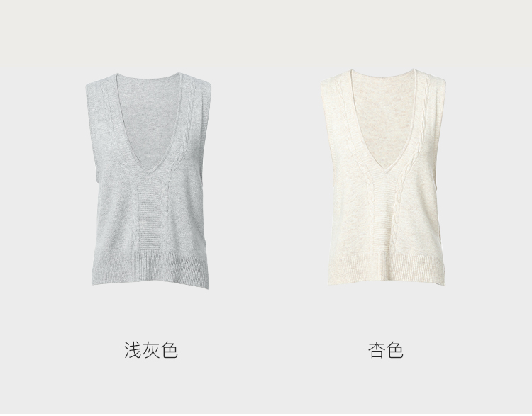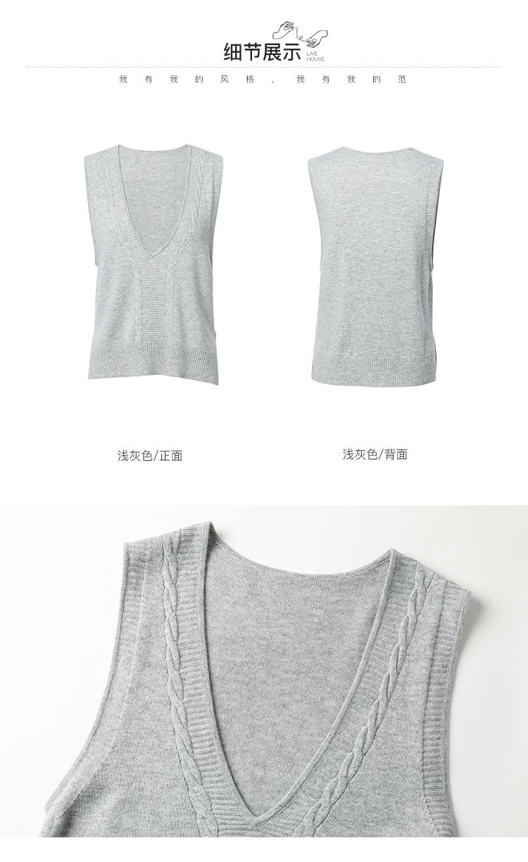 Famecoco范可儿羊毛无袖马甲背心女士秋款V领开叉叠穿套头马夹F225CA017