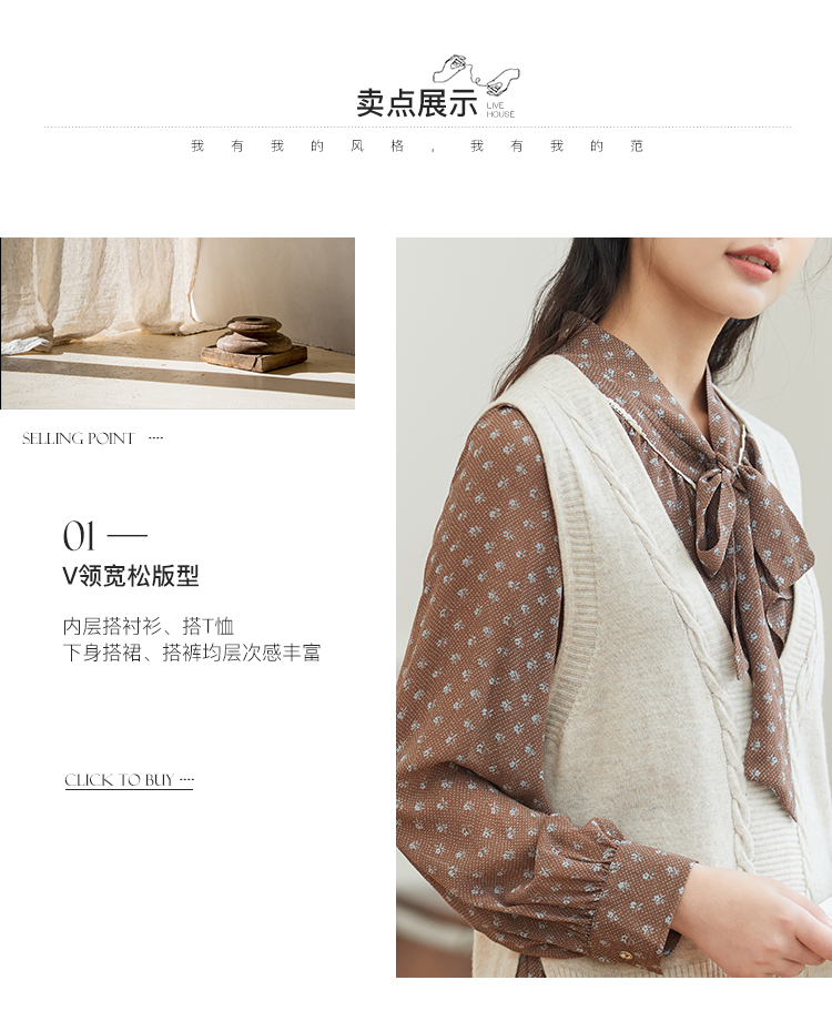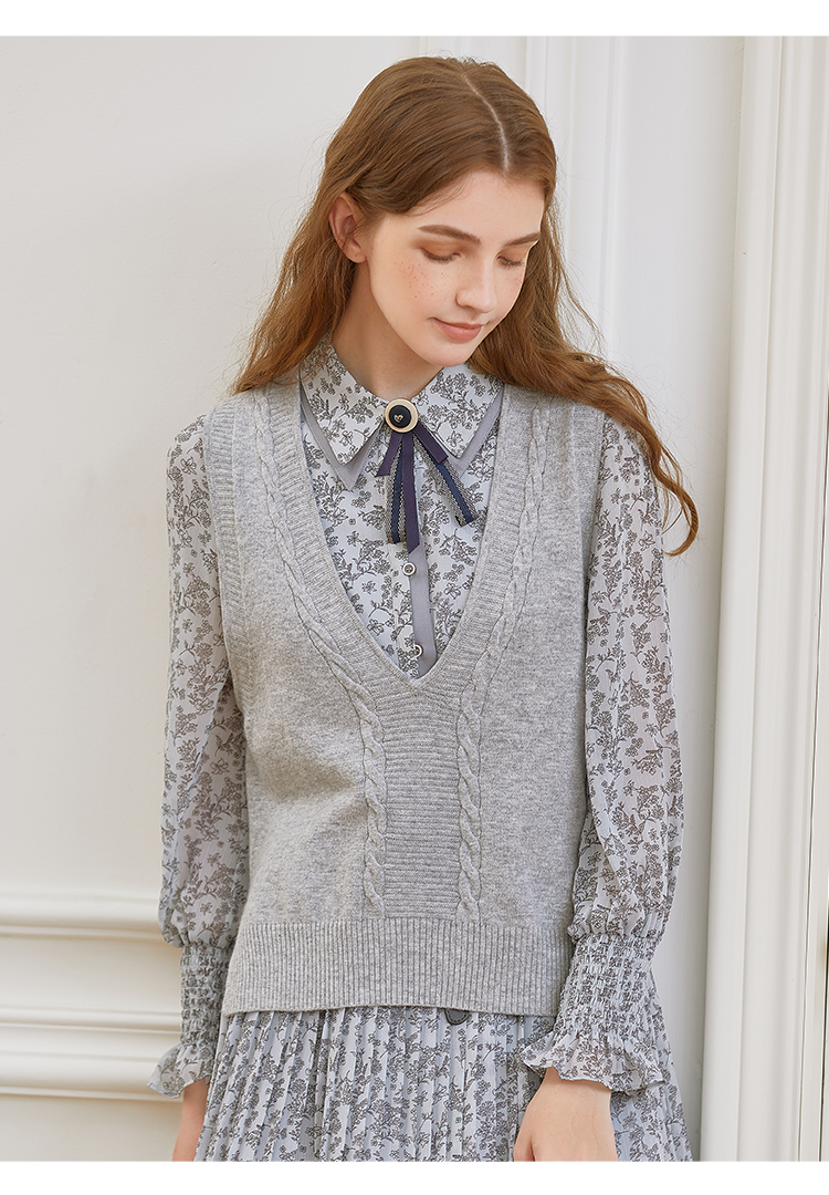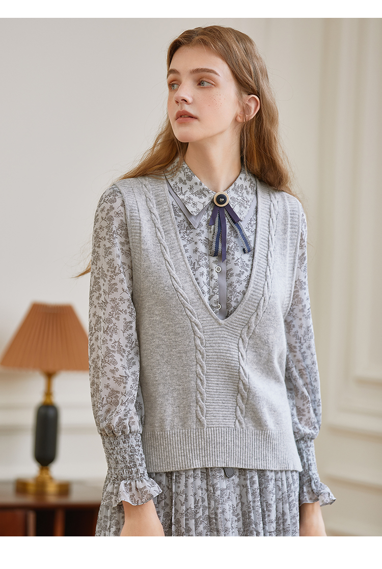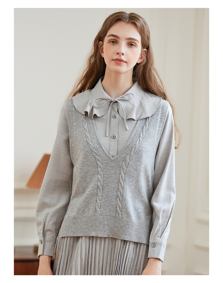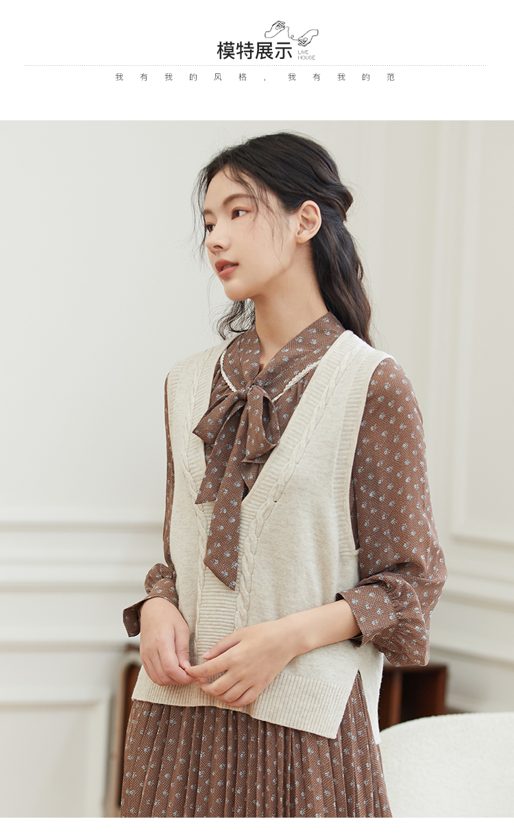Famecoco范可儿羊毛无袖马甲背心女士秋款V领开叉叠穿套头马夹F225CA017