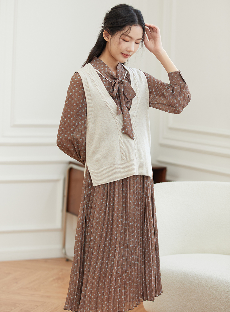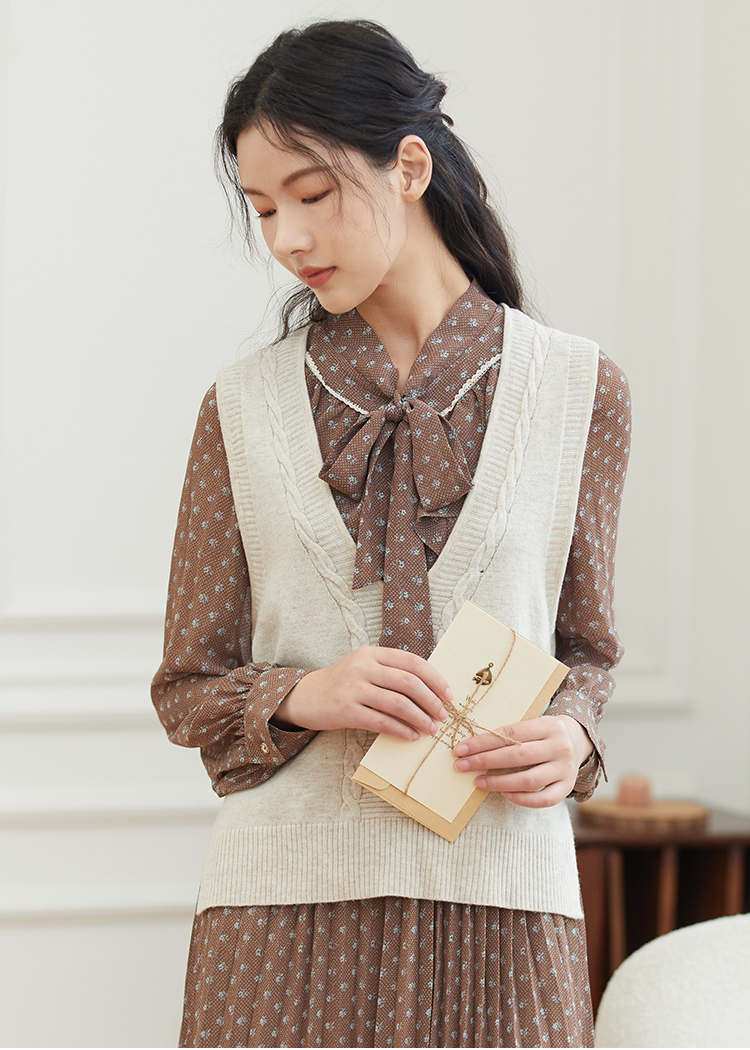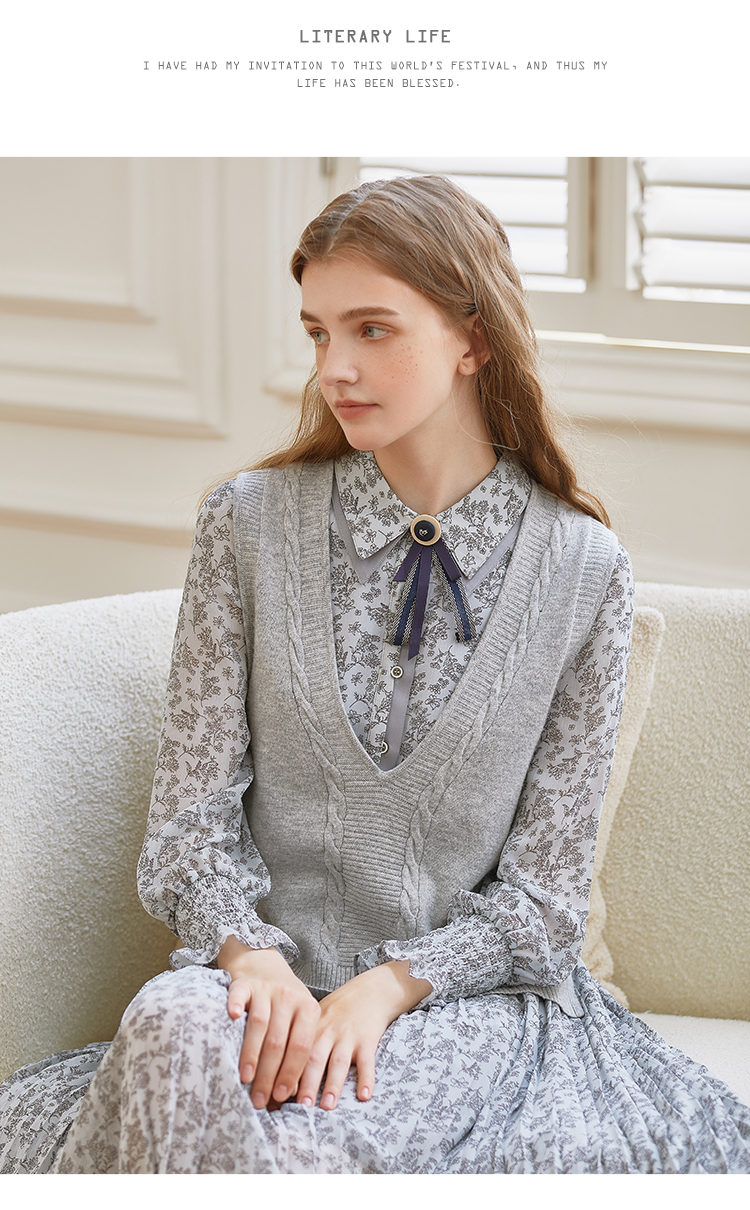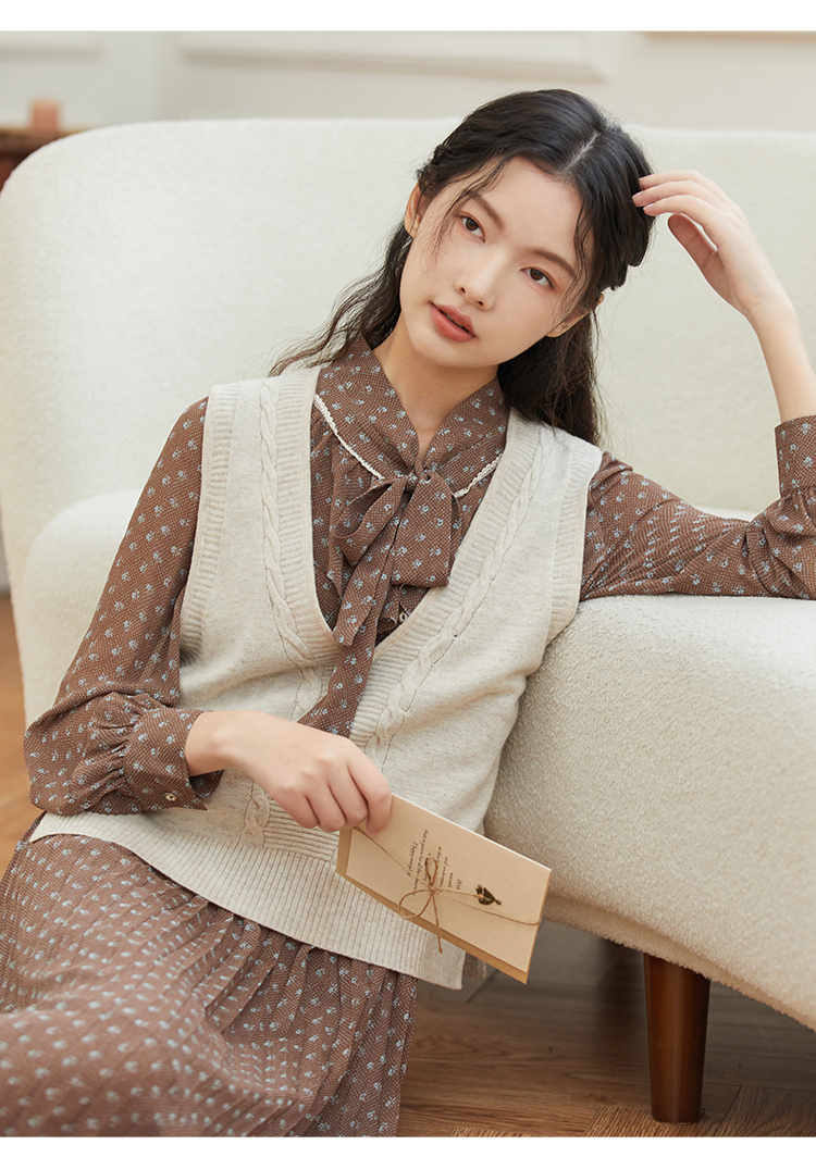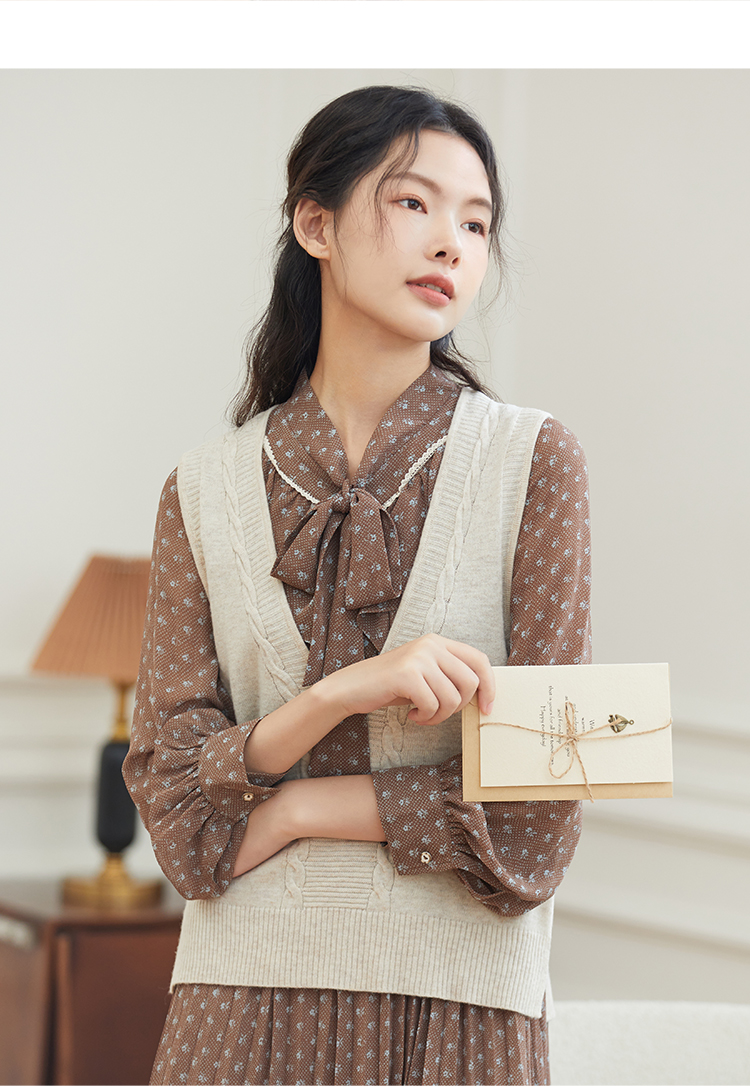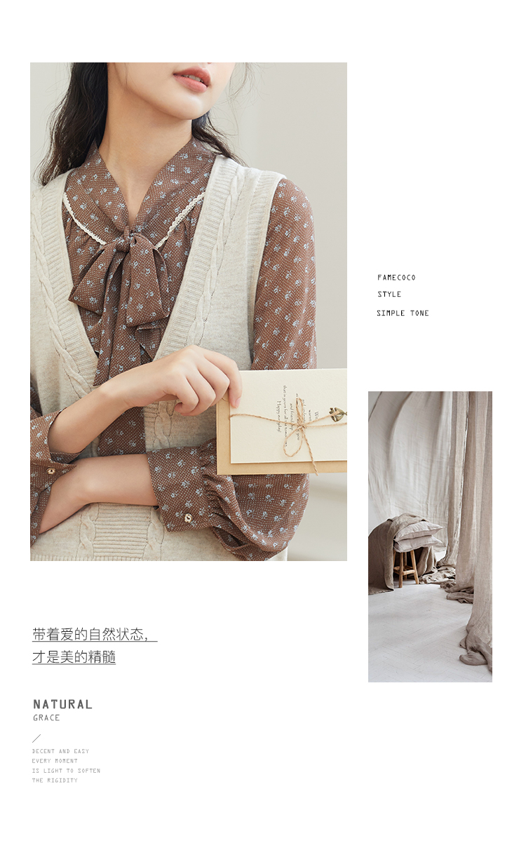 Famecoco范可儿羊毛无袖马甲背心女士秋款V领开叉叠穿套头马夹F225CA017
