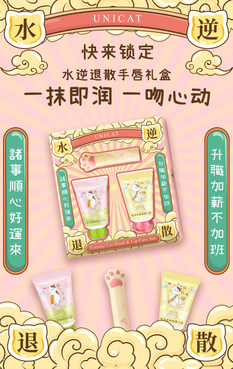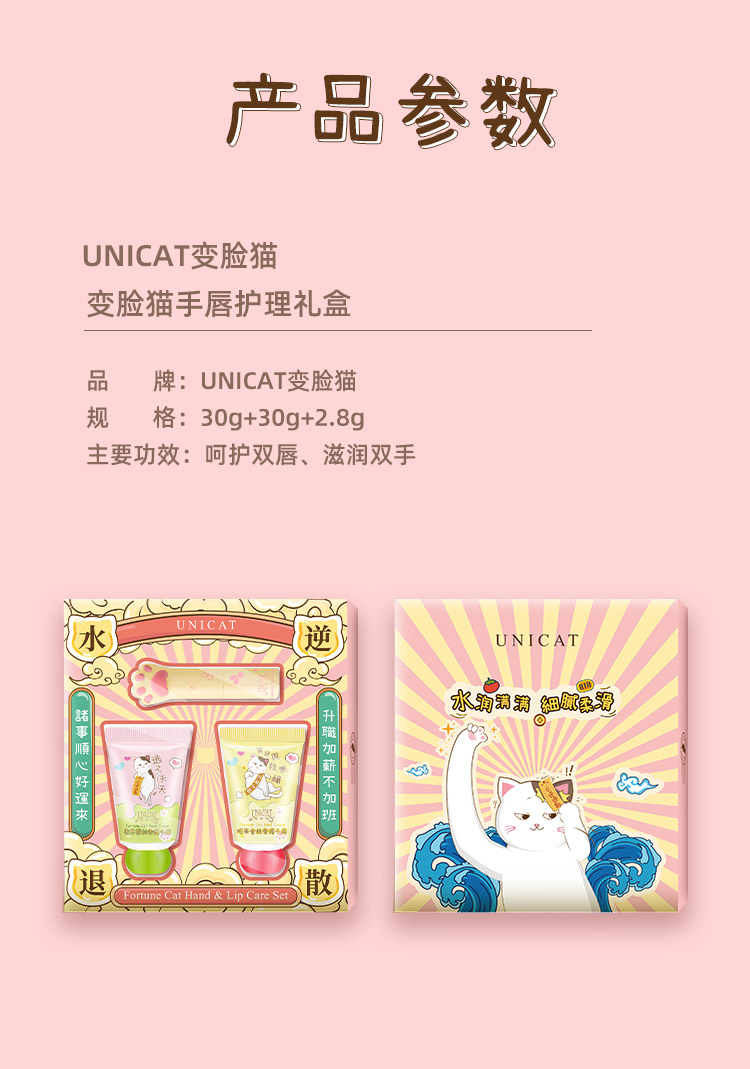 变脸猫手唇护理礼盒(香草雪松香护手霜30ml+昭华金桂香护手霜30ml+水感保湿润唇膏2.8g)