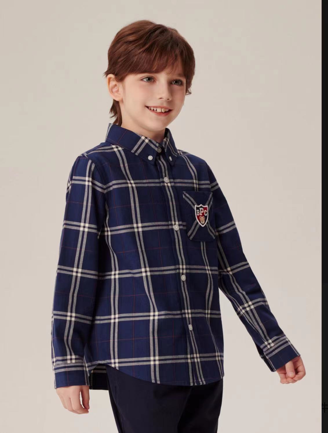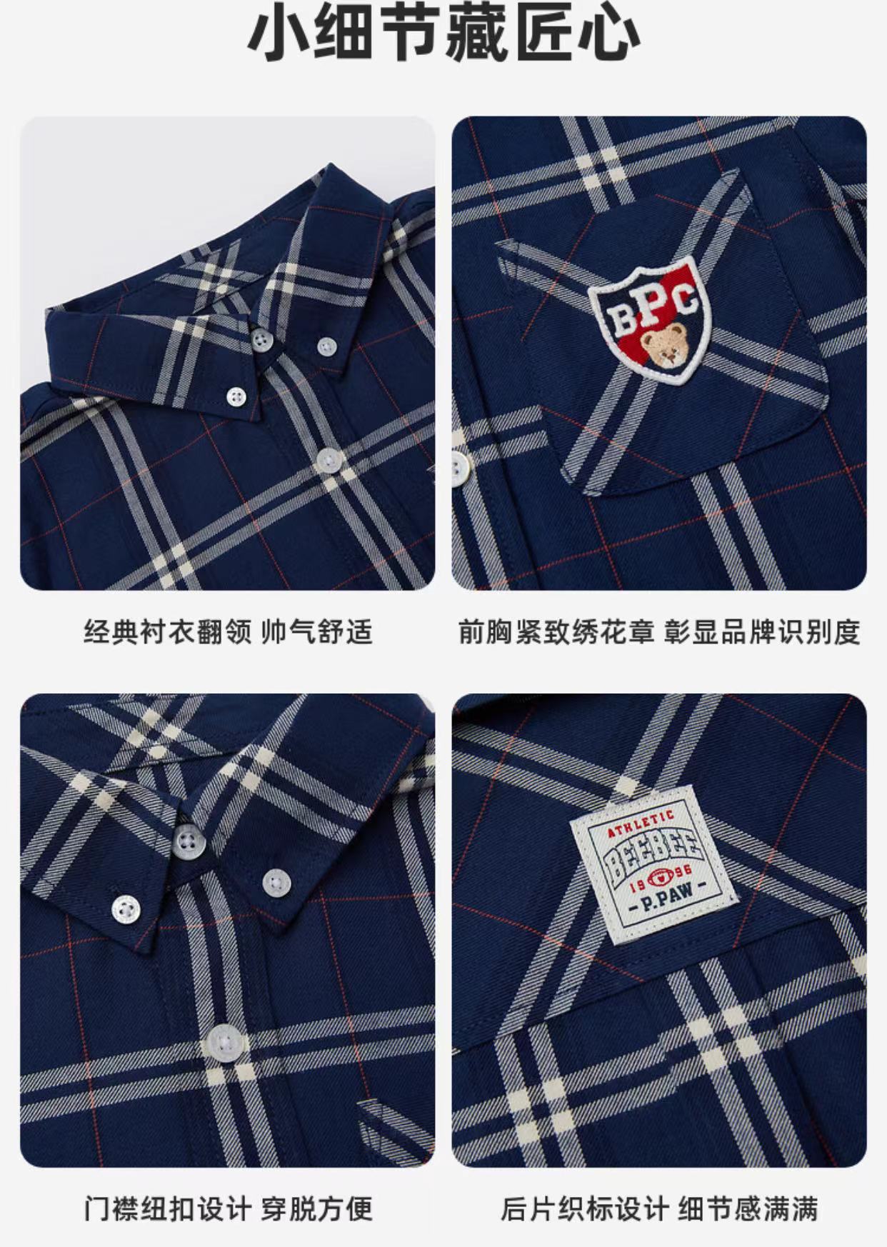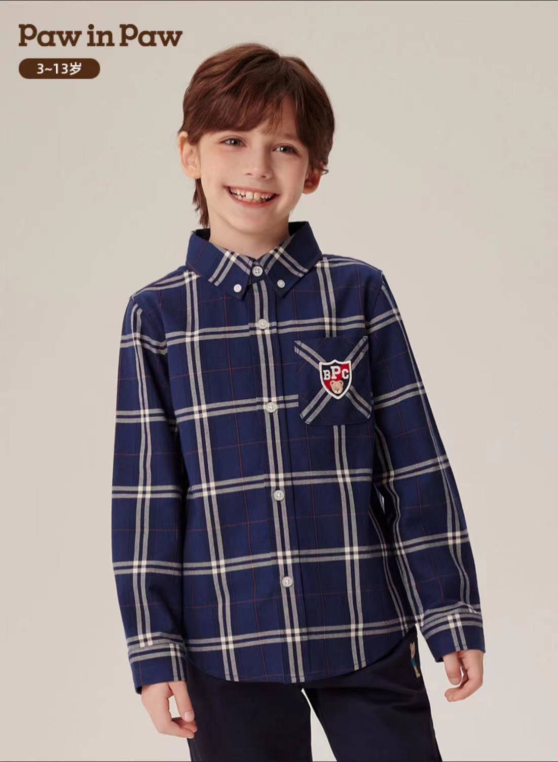 【PawinPaw】B8F小熊童装2024年早秋新款男童格子衬衫时尚舒适帅气PCYAE3812M