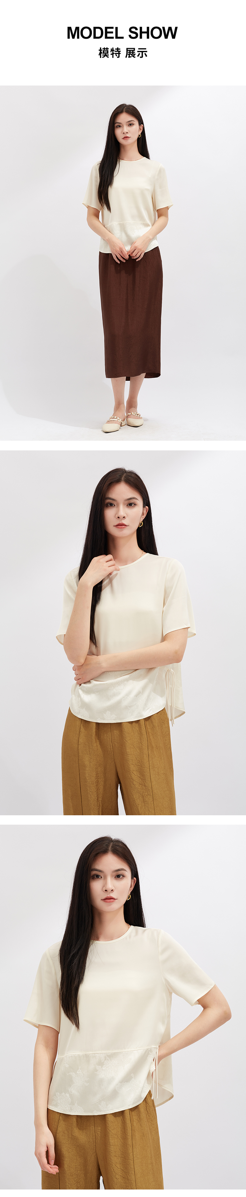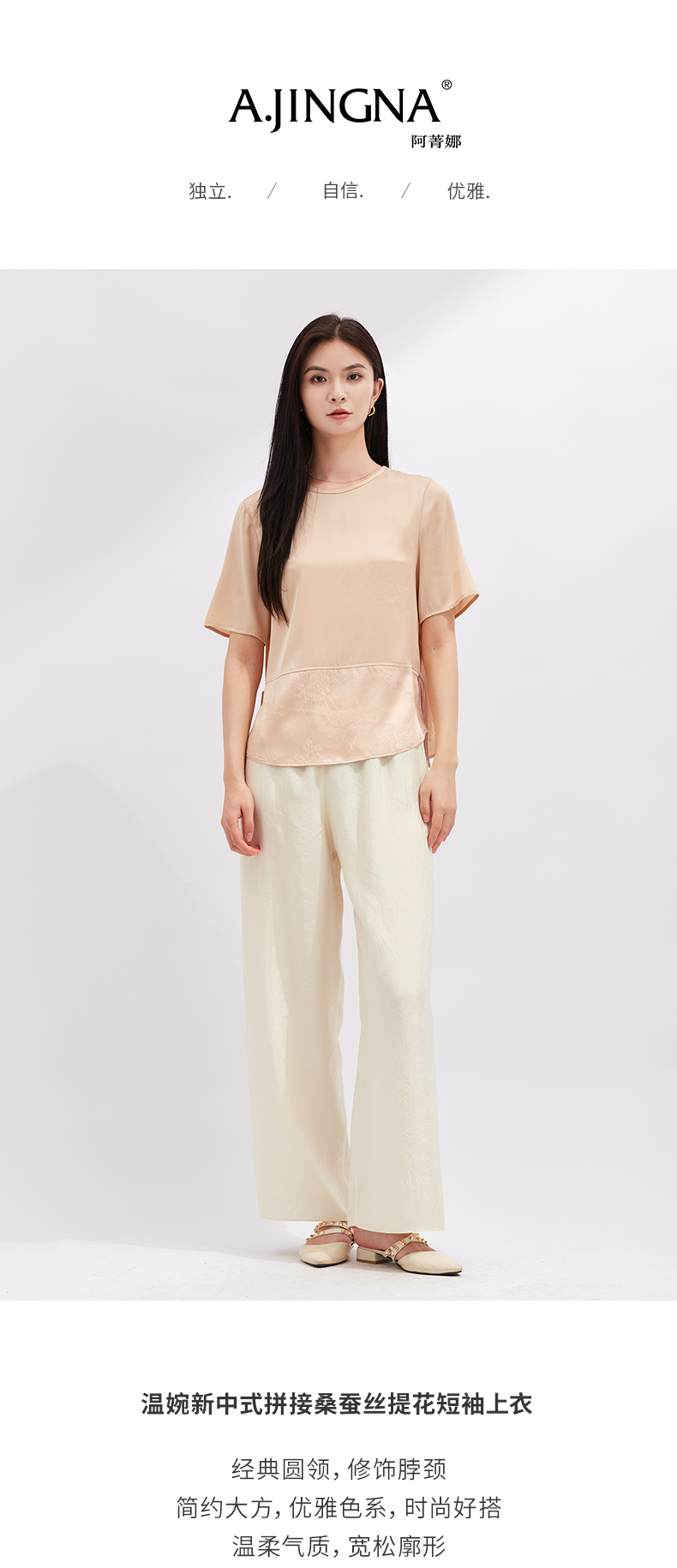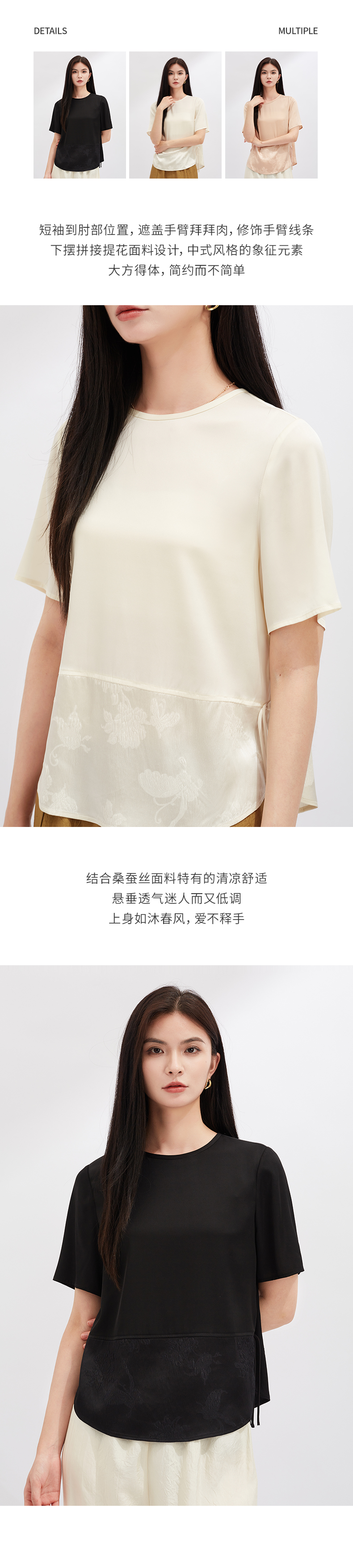 【简约大方】阿菁娜温婉新中式拼接桑蚕丝提花短袖上衣F30X202026