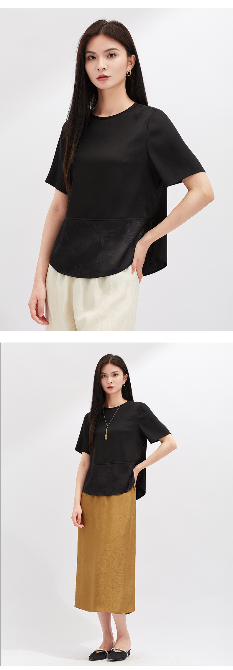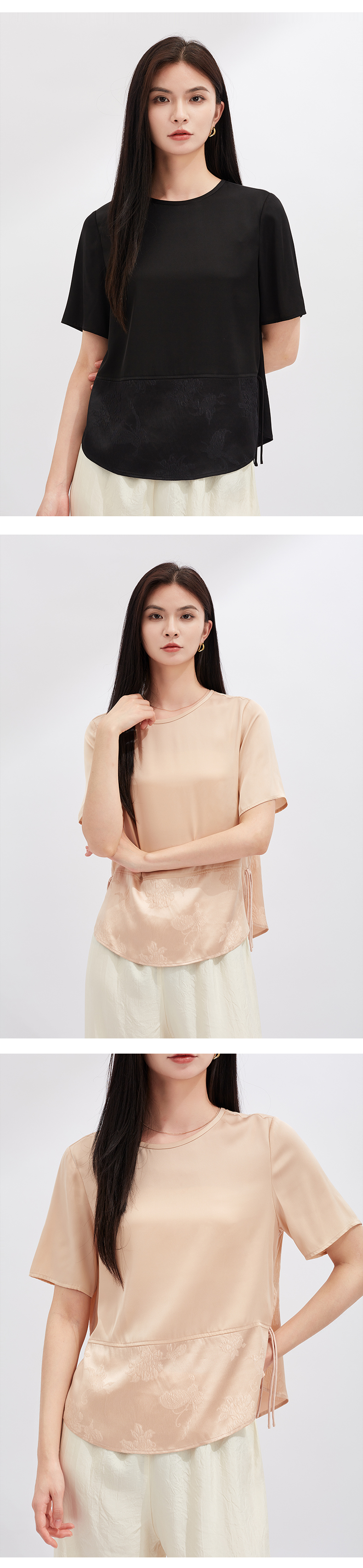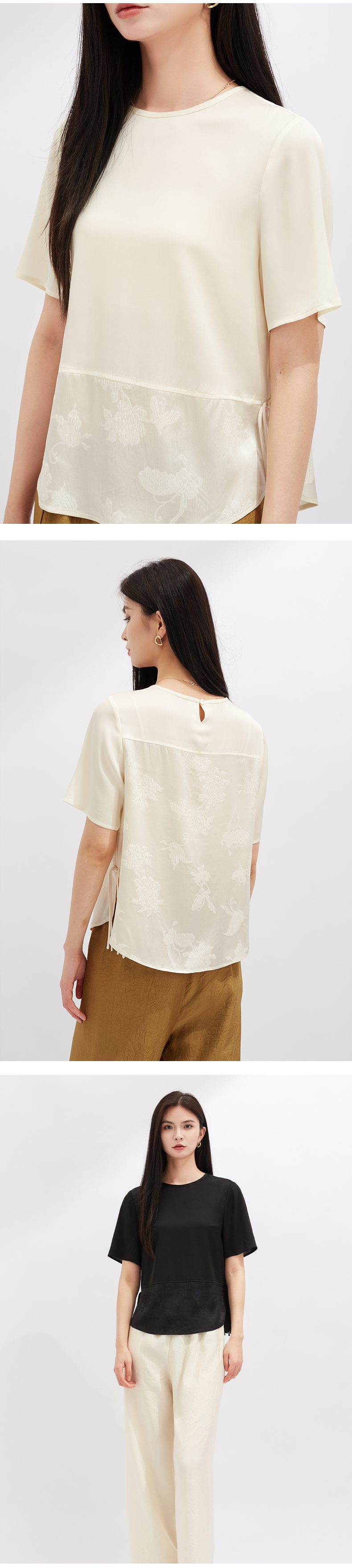 【简约大方】阿菁娜温婉新中式拼接桑蚕丝提花短袖上衣F30X202026