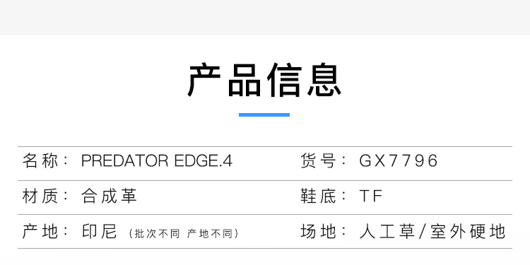ADIDAS/阿迪达斯PREDATOR EDGE.4猎鹰入门级TF碎钉成人男足球鞋GX7796