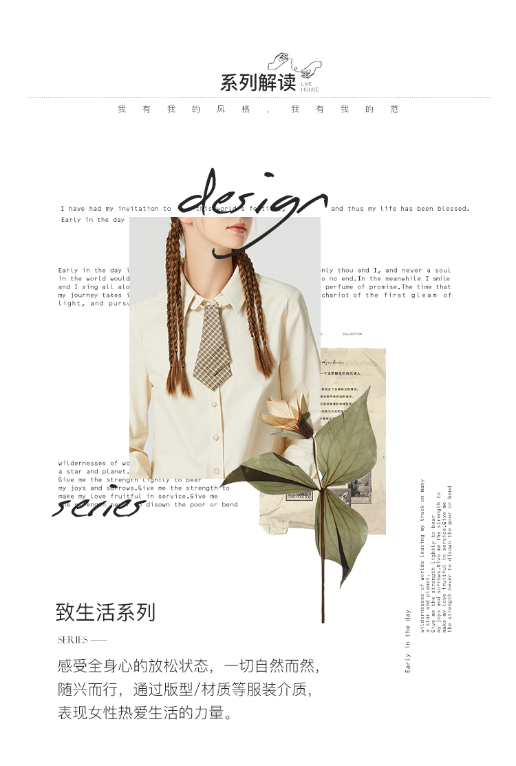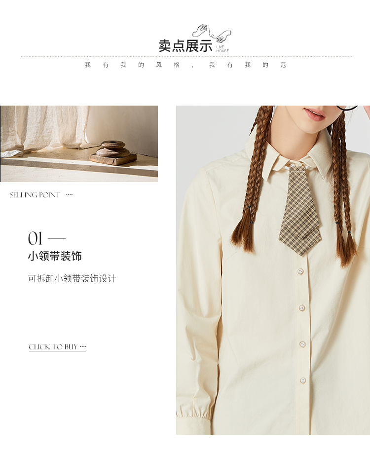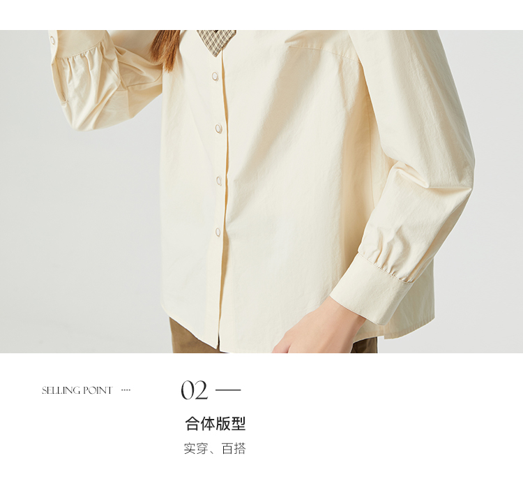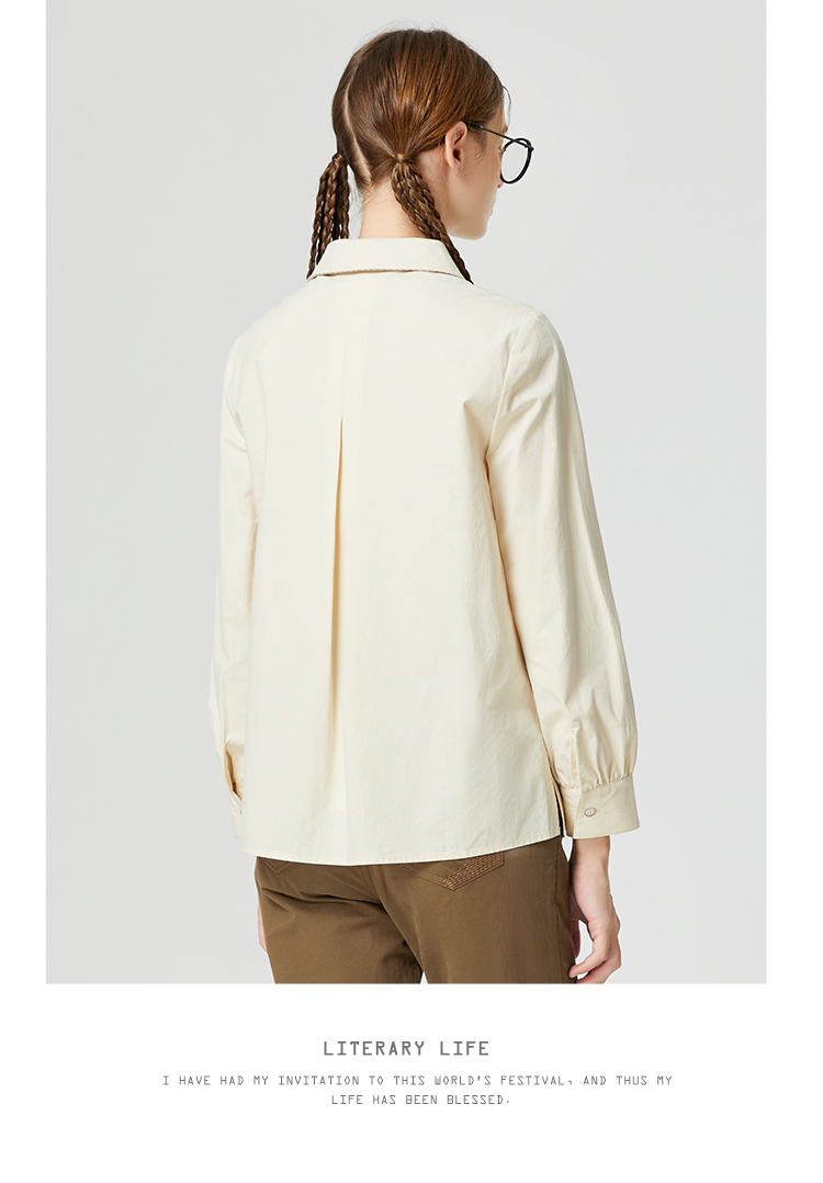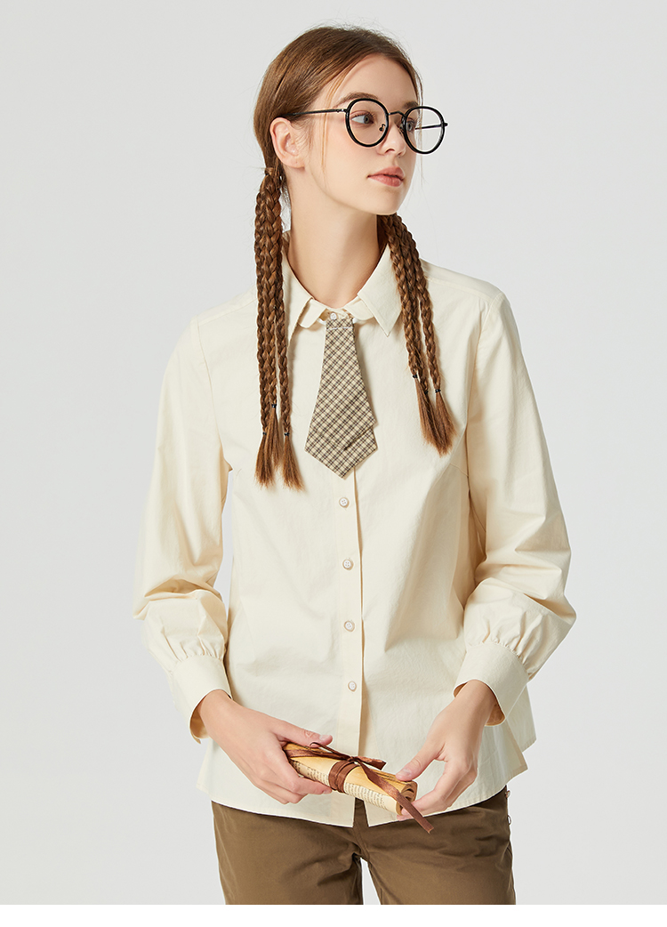 famecoco范可儿原创纯棉衬衫带领带女早秋双层领衬衣杏色百搭长袖F225BH006