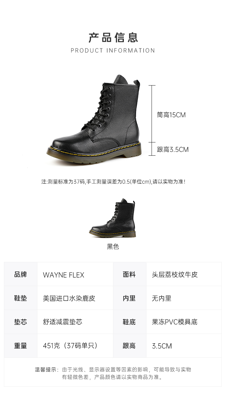 Wayne Flex韦恩平底马丁靴经典圆头短靴系带高帮甜酷百搭女靴WF6247