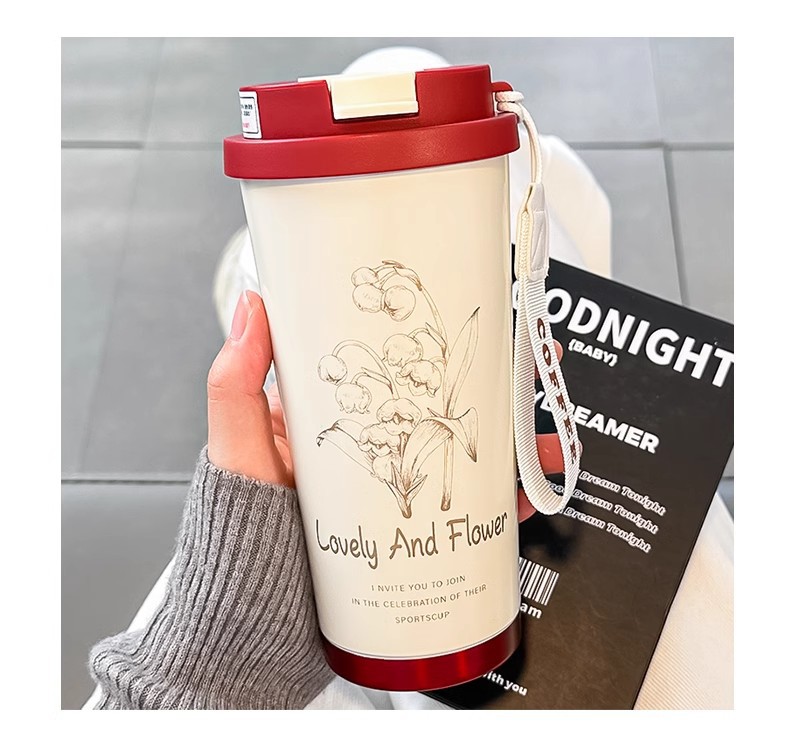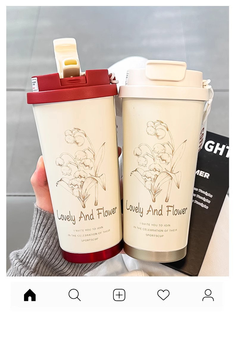【双饮设计❗️长效保温保冷】时尚铃兰花保温杯女生高颜值咖啡杯不锈钢吸管杯学生水杯办公杯子。ja