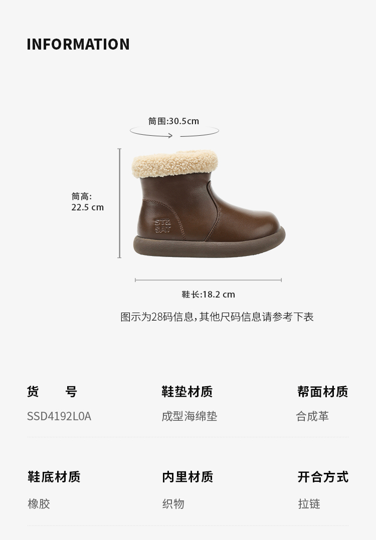 【童鞋】星期六加绒保暖简约时尚女童短靴SSD4192L0A