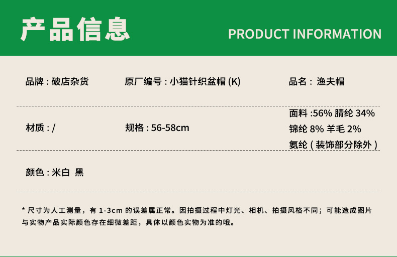 小猫针织盆软糯百搭渔夫帽-纪念日百货门店同款165200713