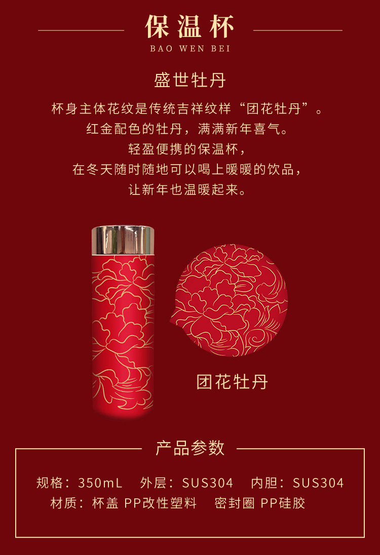 WENSLI/万事利 《颂福满杯》-颂福彩保温杯礼盒(真丝款)