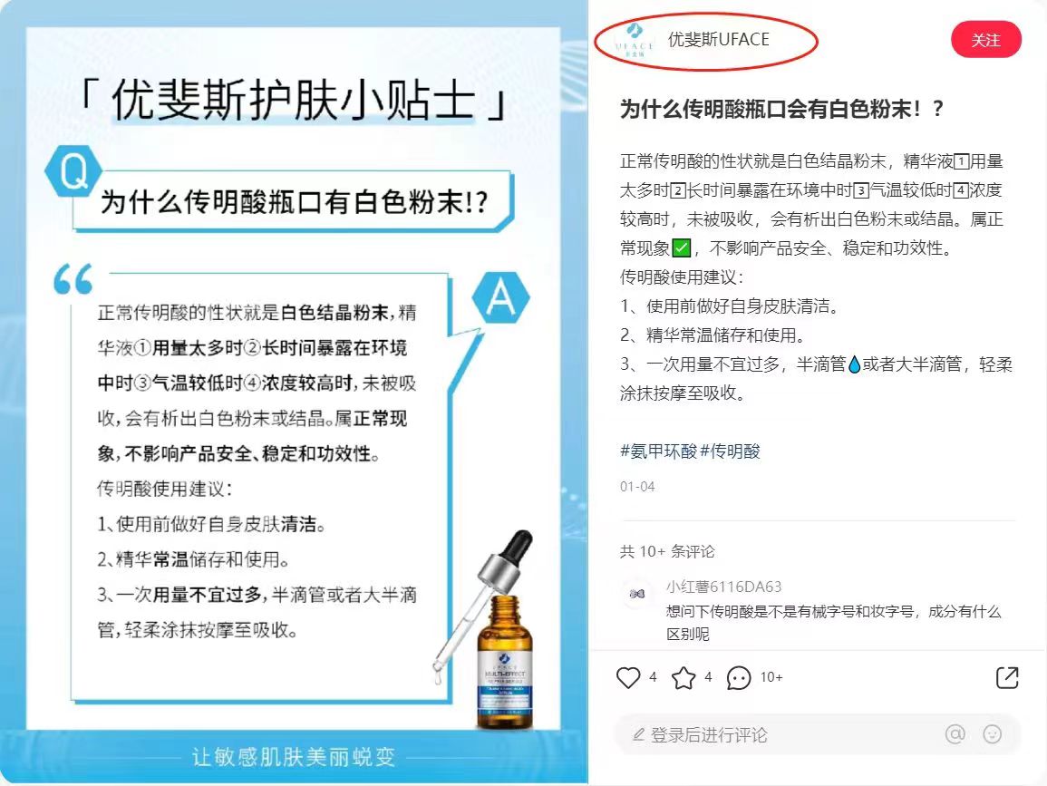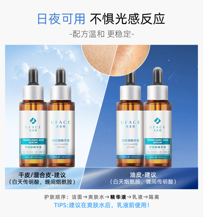 传明酸因为成分原因平时使用有滴漏瓶口会变成结晶,在生产过程重机器灌装时瓶口也有几率会有少量残留形成白色粉末结晶状,均不影响产品使用,不属于售后范围,介意勿拍