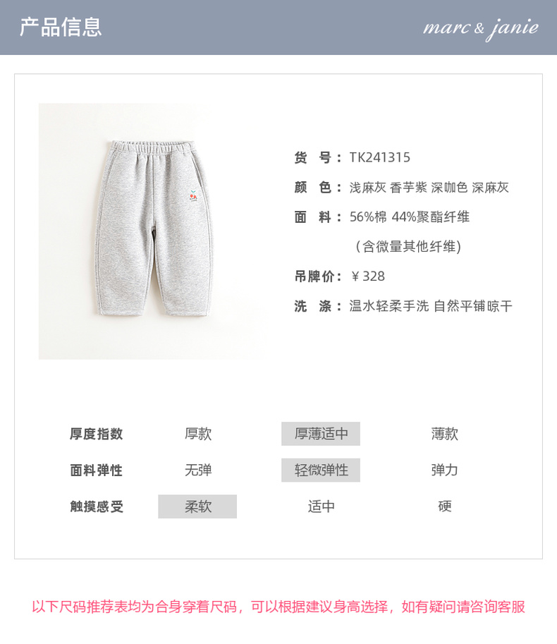 【加绒】马克珍妮女童小樱桃百搭运动裤儿童萝卜裤秋冬新款241315