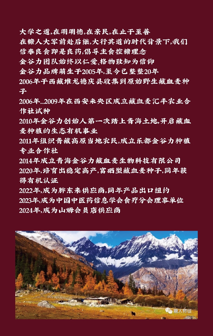 一、青海金谷力藏血麦公司在建立藏血麦育种与繁育有机种植基地;建立有机食品加工基地等工作完成后,于2019年10月年在萧长江教授的组织下,开启了糖宝食材的临床研究。