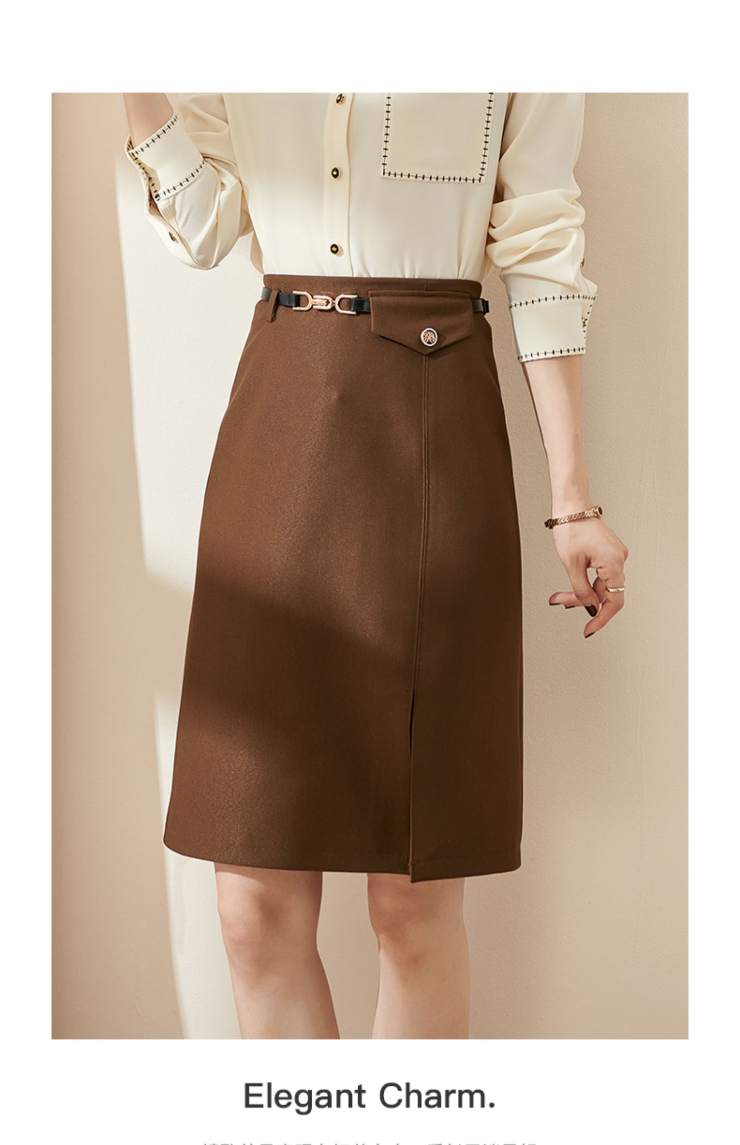 剩L/XL 米思阳2025夏季新款时尚通勤半身裙简约修身侧开叉微弹直筒裙0063